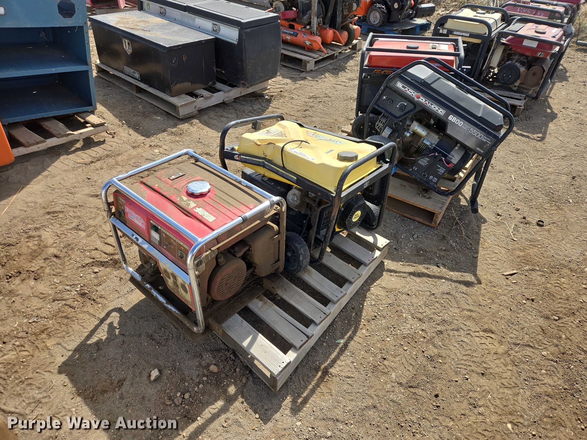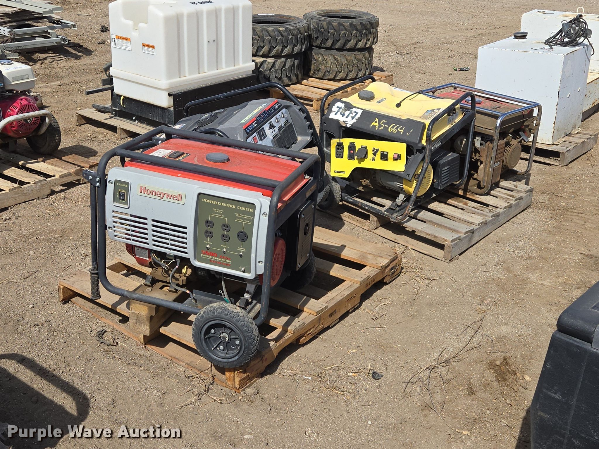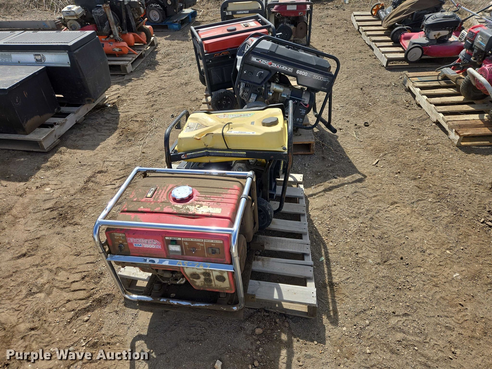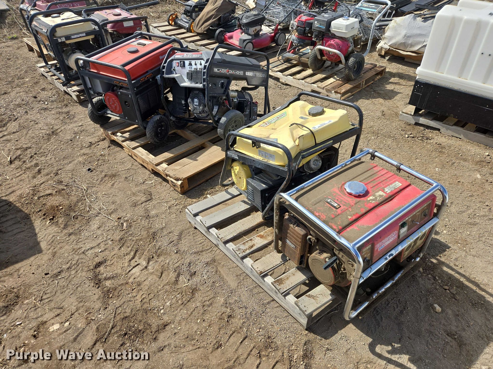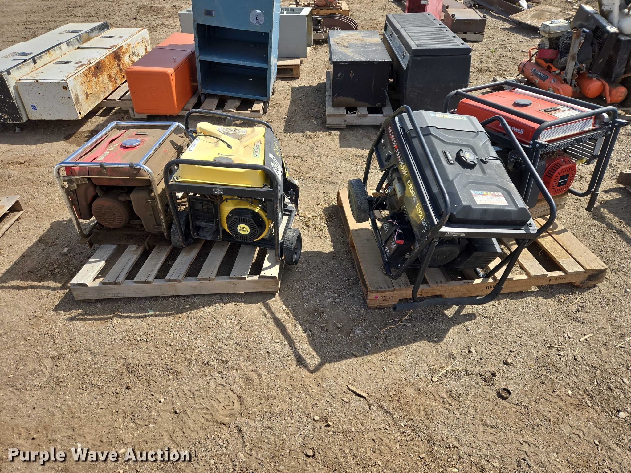 Purple Wave is selling a used Generator Set in South Dakota. This item is a (4) generators with the following: Honeywell, Honda EM3500, Black Diamond, Champion, Unknown operating condition
