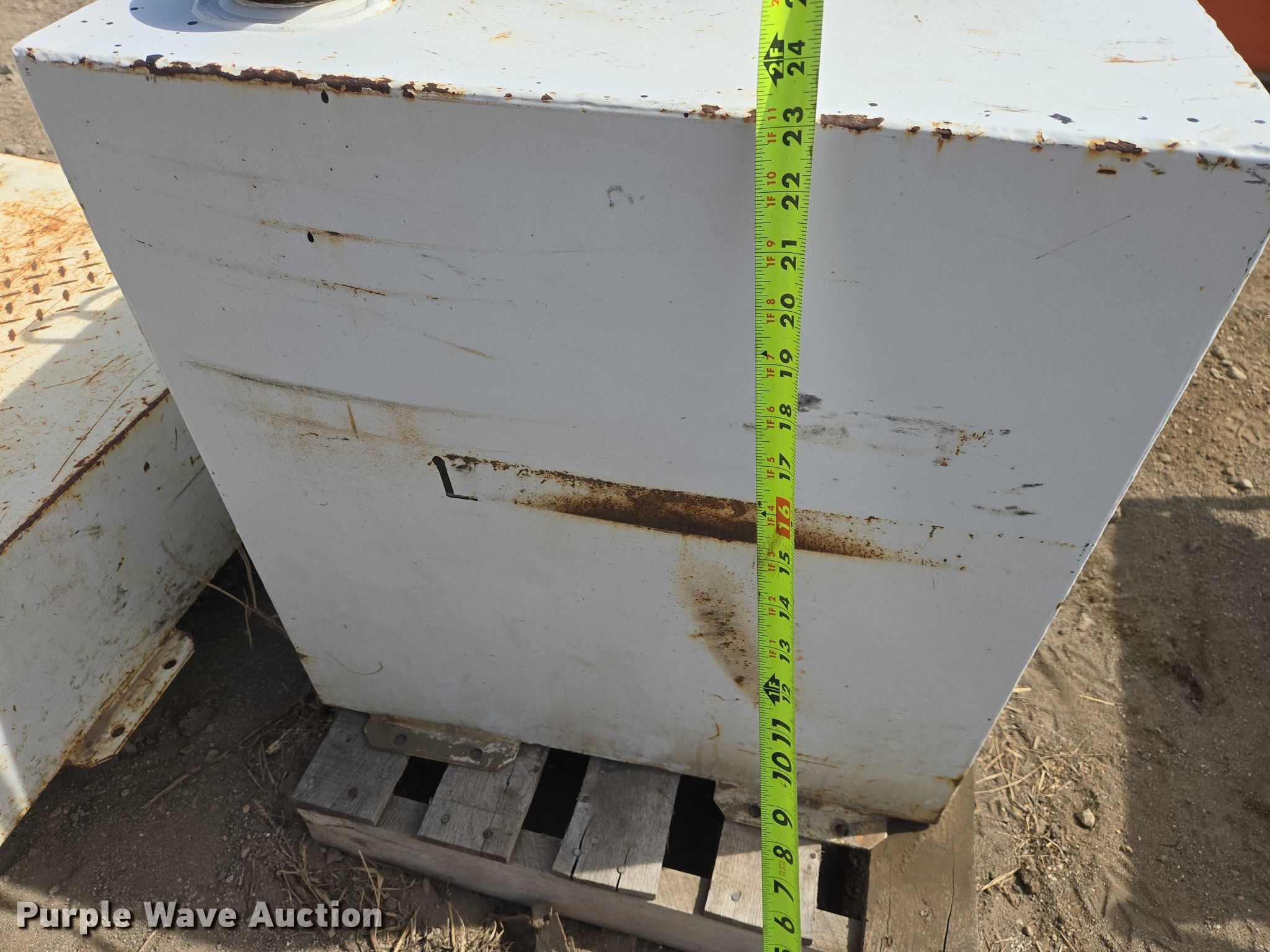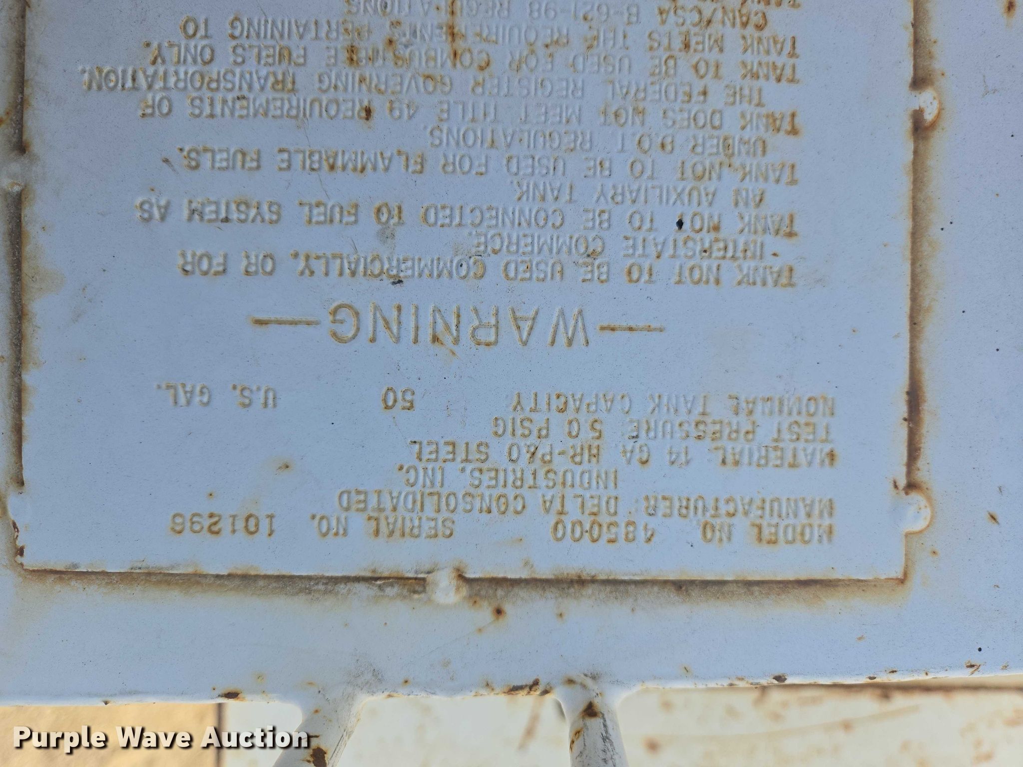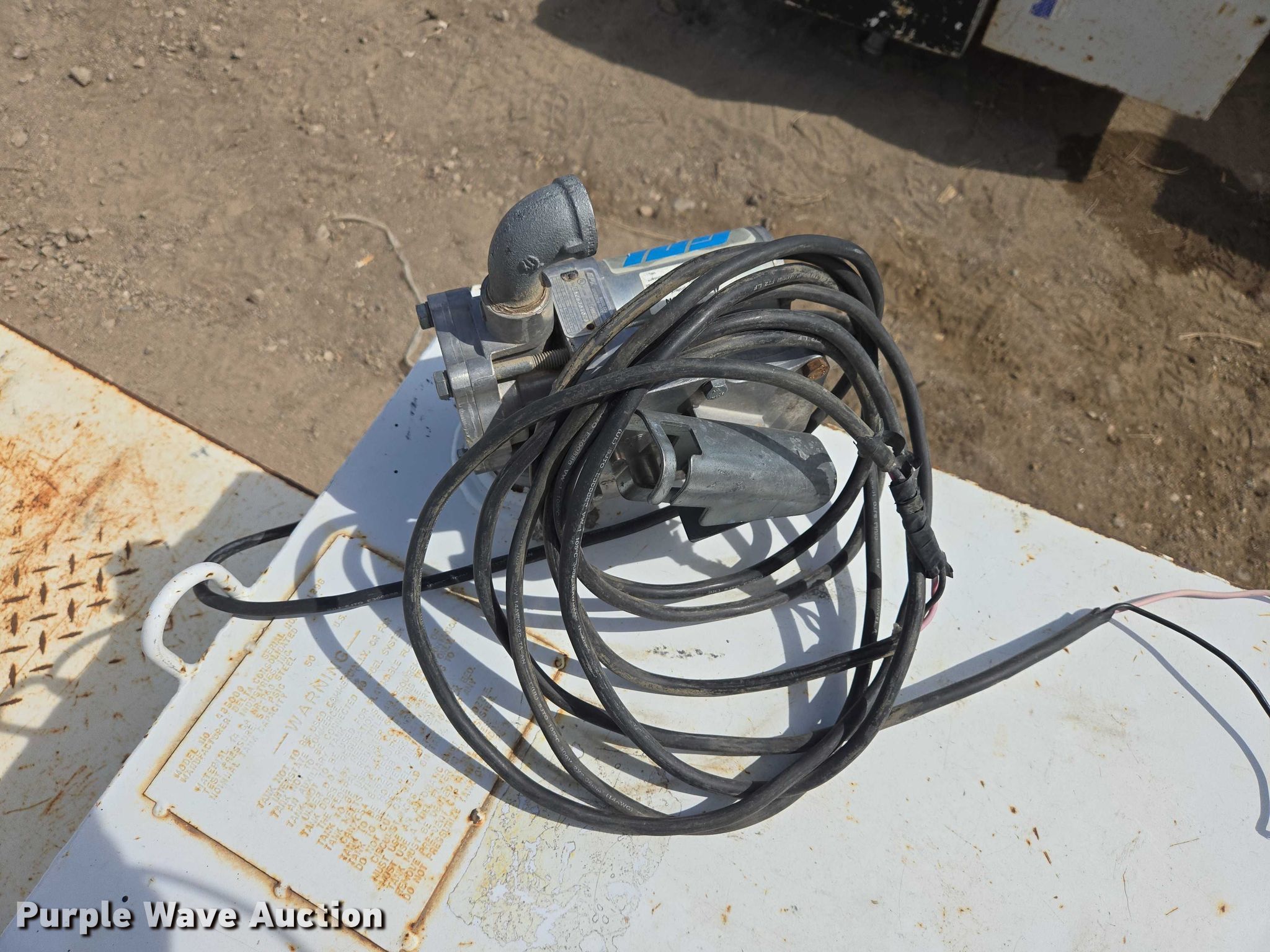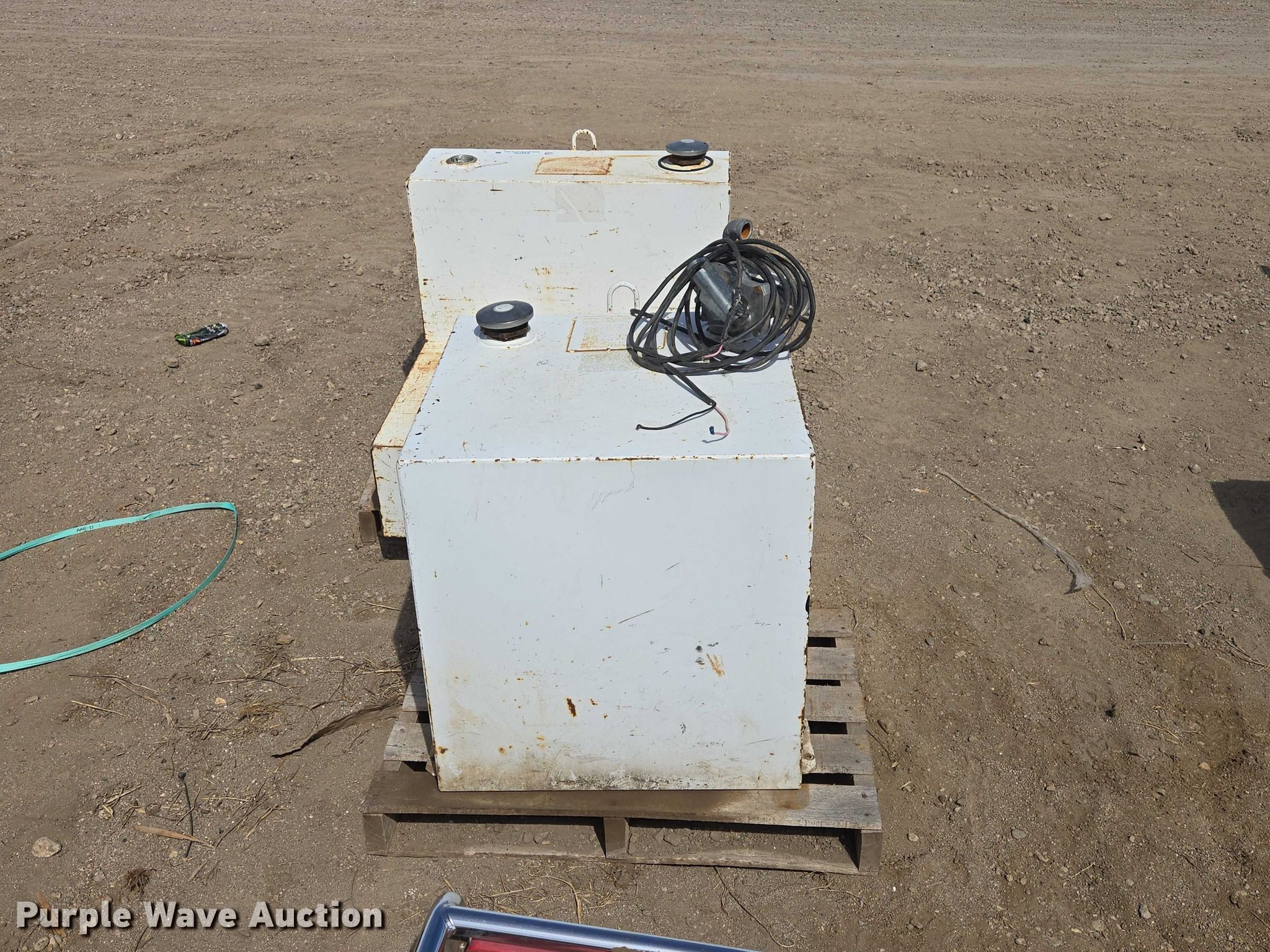Purple Wave is selling a used Fuel and Lube in South Dakota. This item is a (2) fuel transfer tanks with the following: Square tank, Capacity: 50 gallon, GPI transfer pump, L-Shaped tank, Capacity: 52 gallon