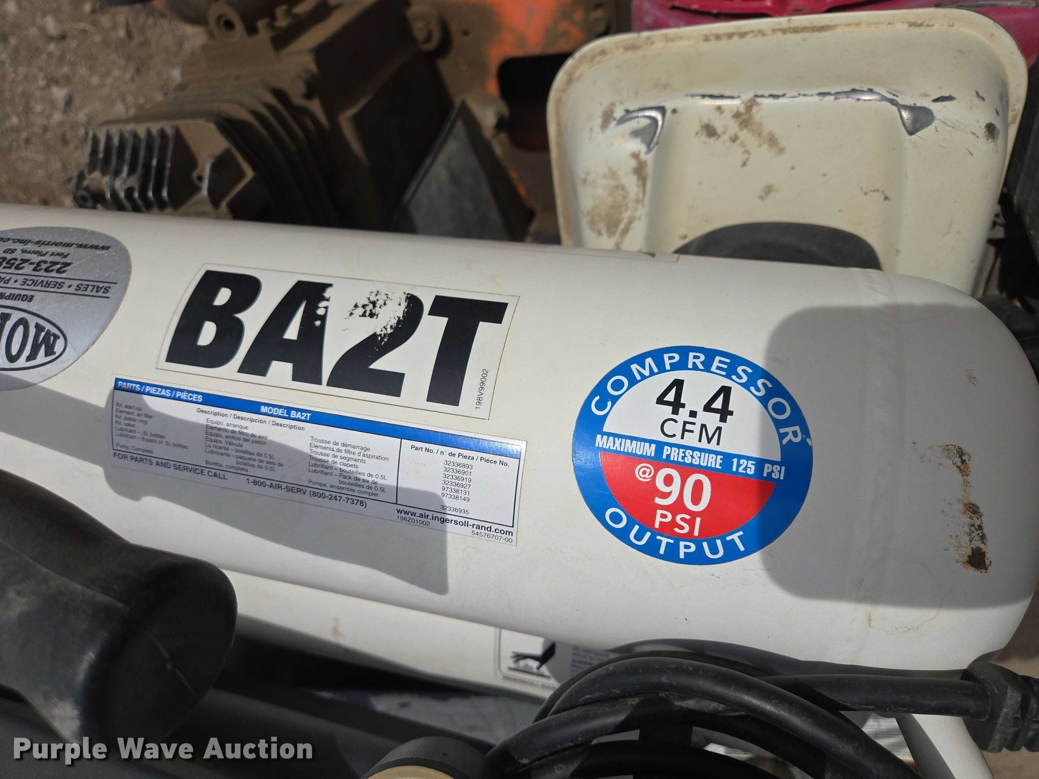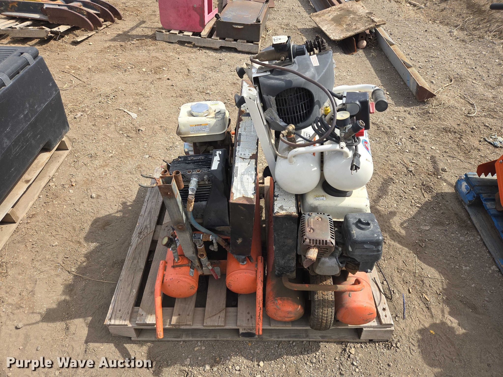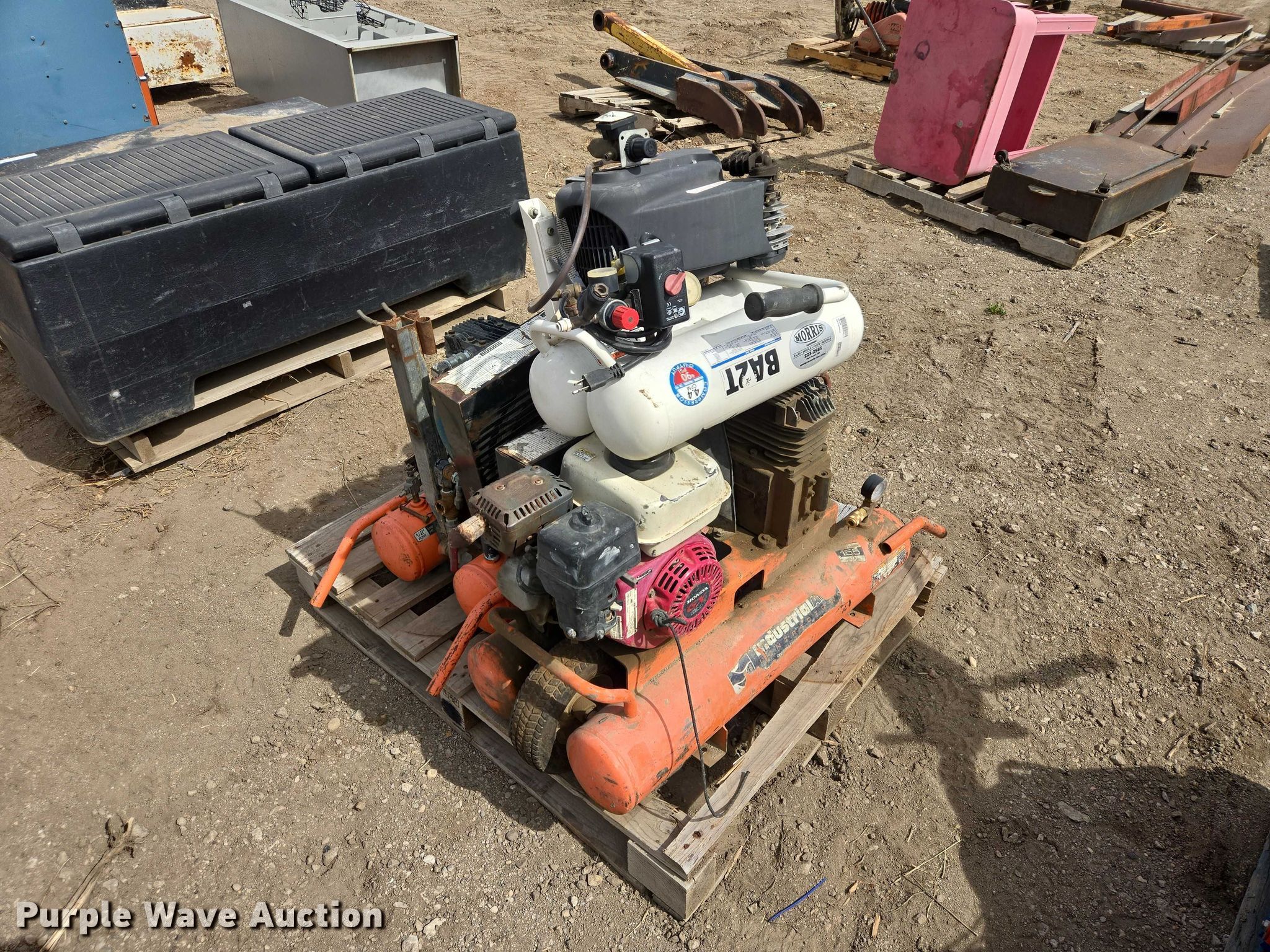 Purple Wave is selling a used Air Compressor in South Dakota. This item is a (3) air compressors with the following: (2) Industrial Air air compressors, Honda GX120 gas engines, BA2T air compressor, 115V