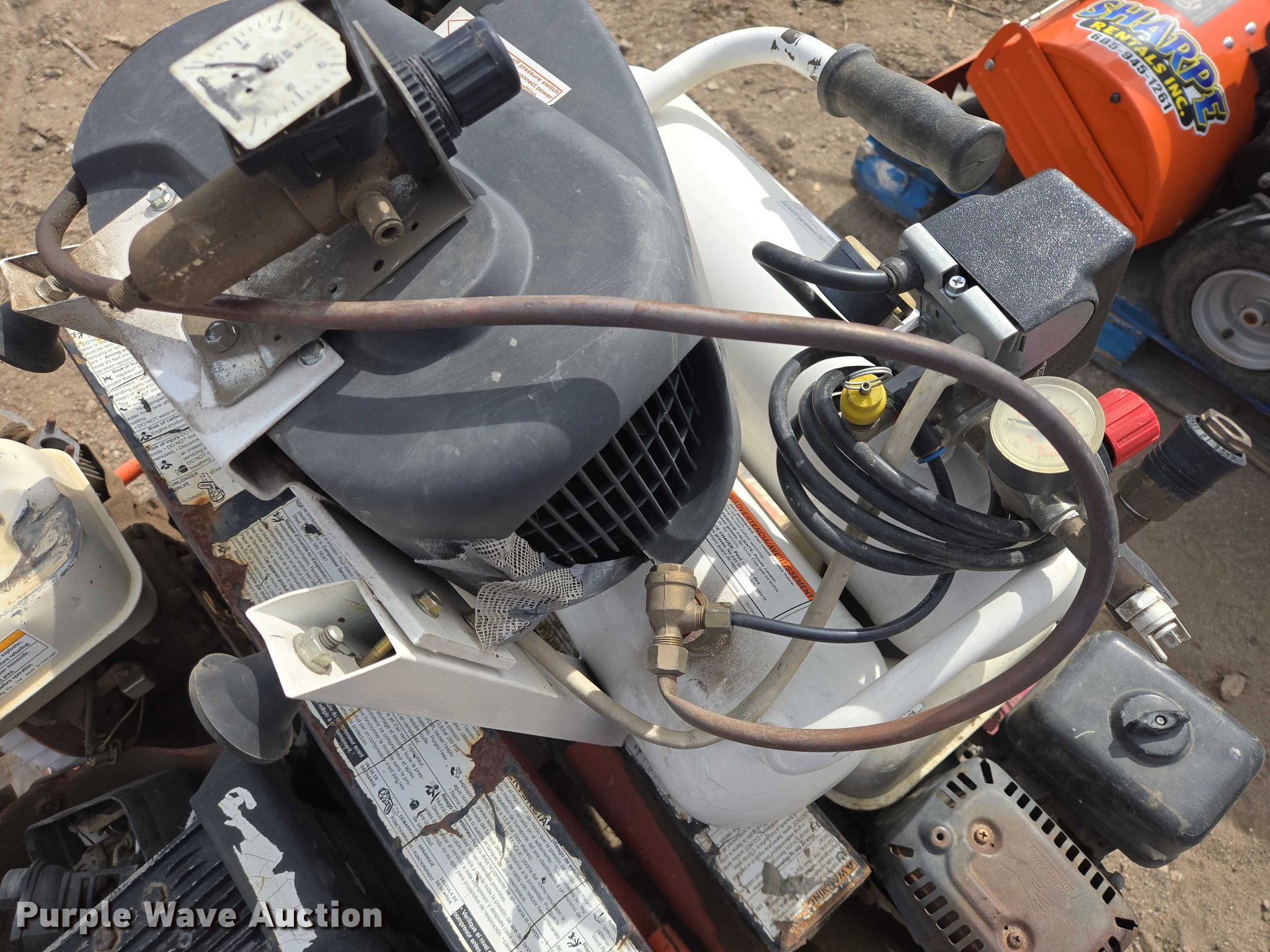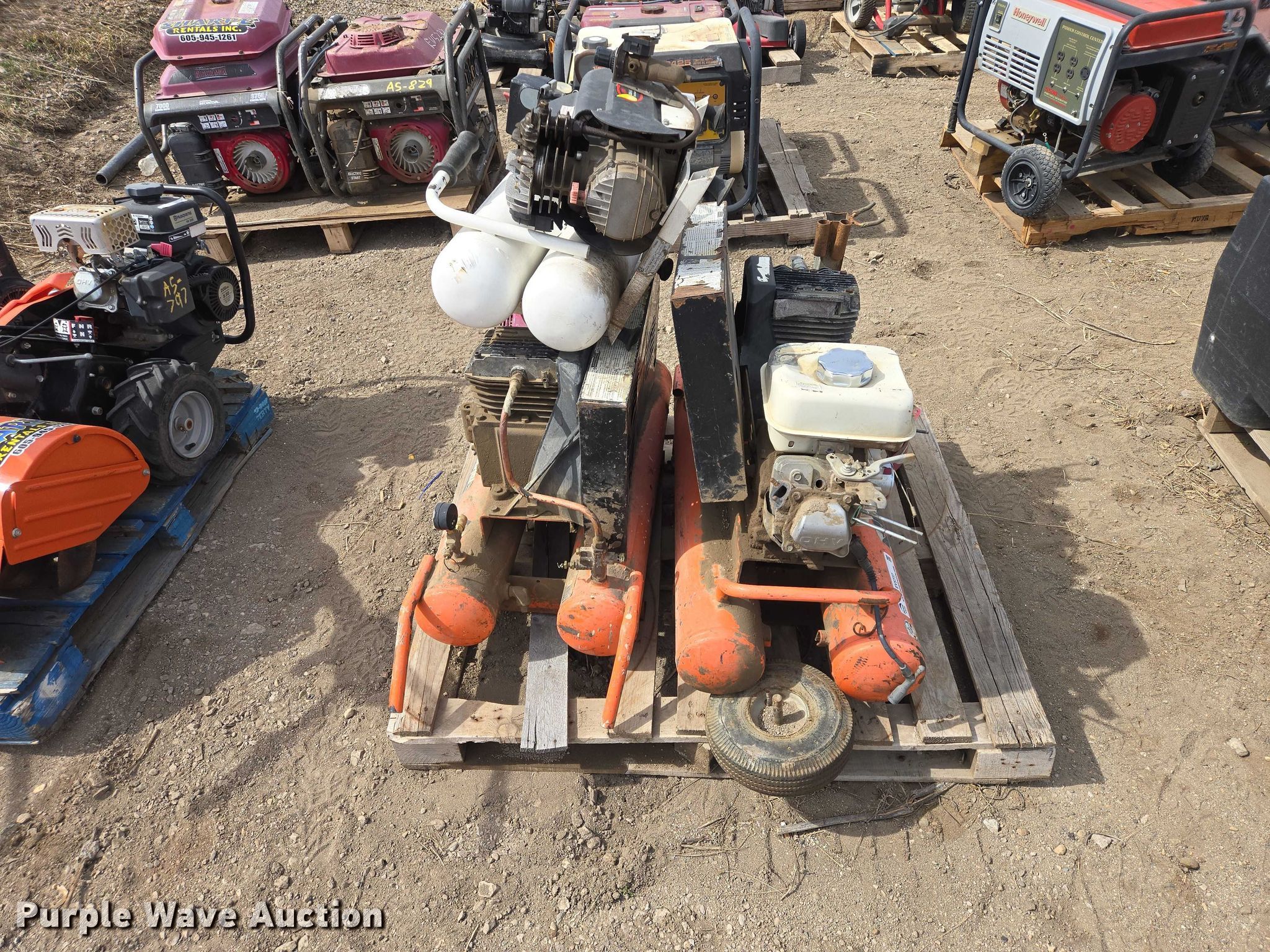 (3) air compressors. (2) Industrial Air air compressors Honda GX120 gas engines, BA2T air compressor 115V. Notes Unknown operating condition. Sharpe Rentals, Inc.. Pierre, SD 57501