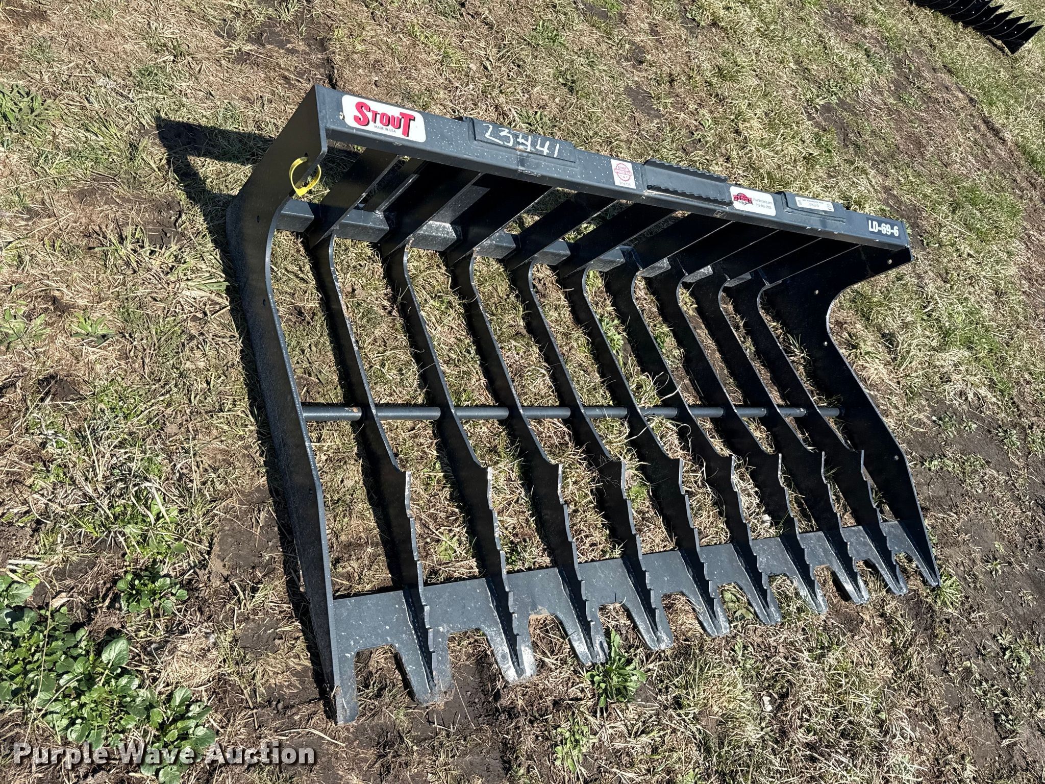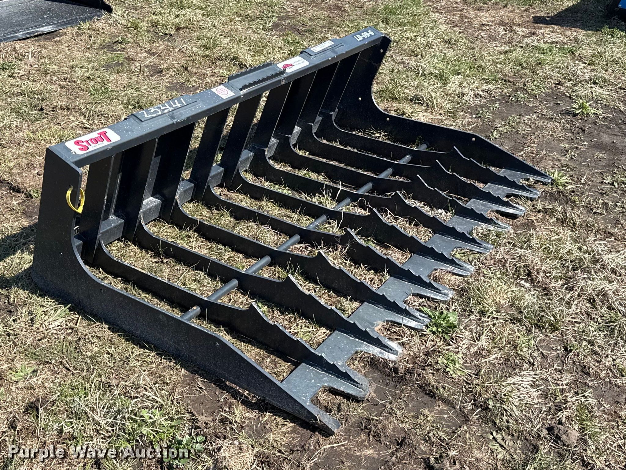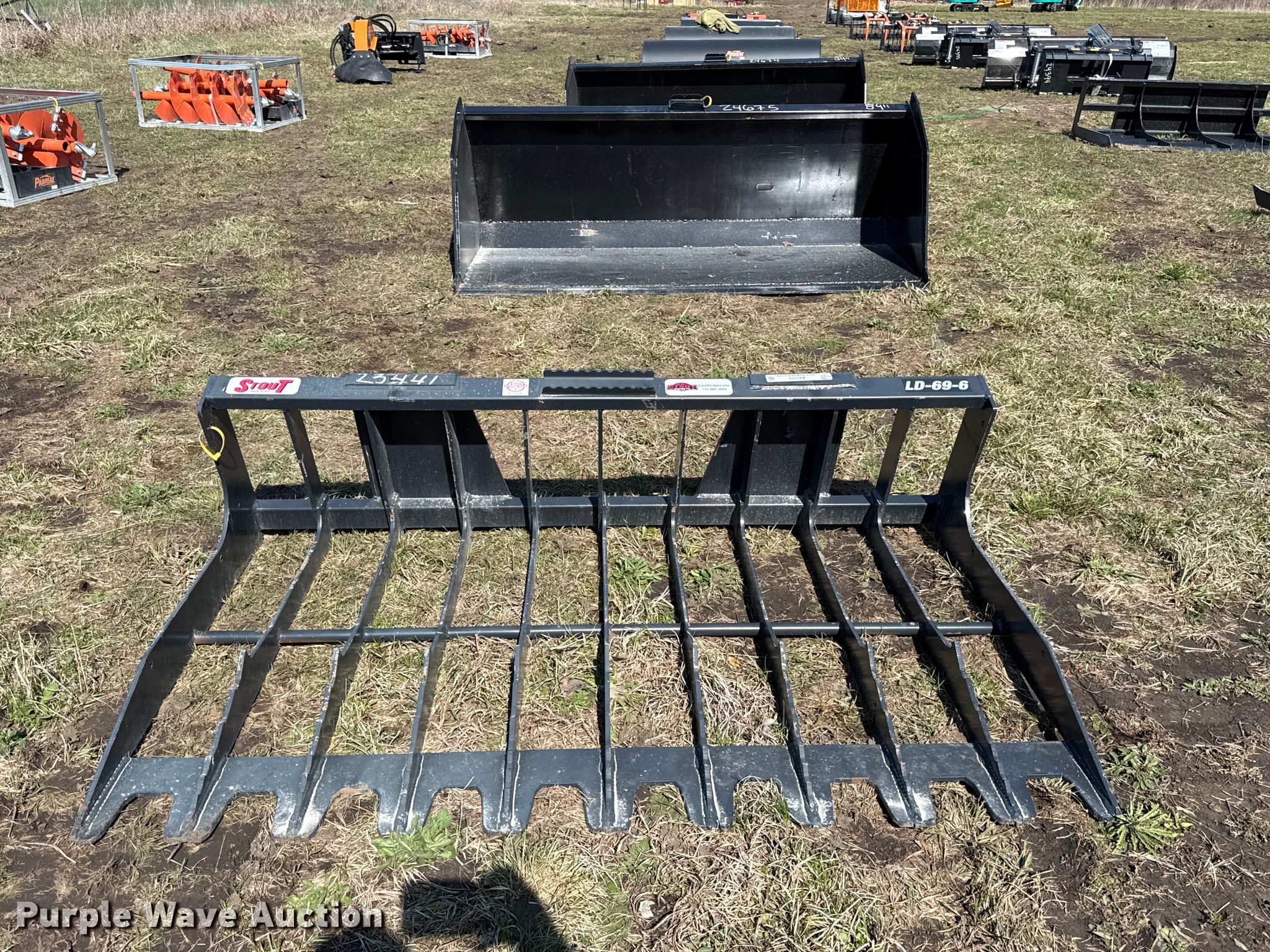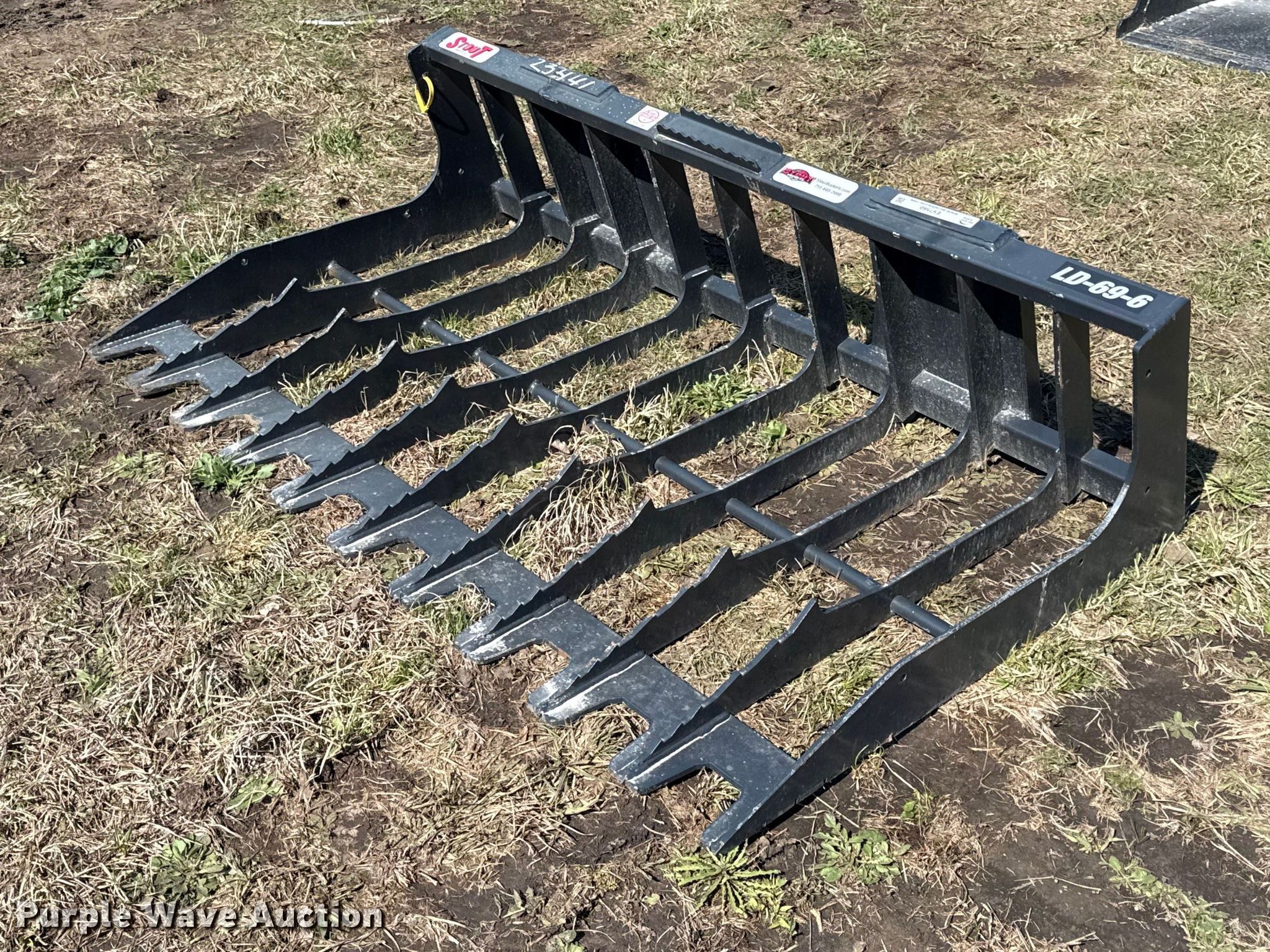 Purple Wave is selling a used Skid Steer Attach. in Kansas. This item is a Stout LD-69-6 skid steer rock bucket with the following: Width: 69", Unused
