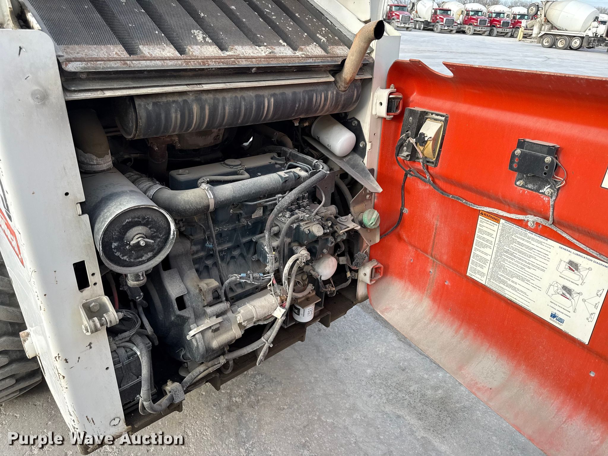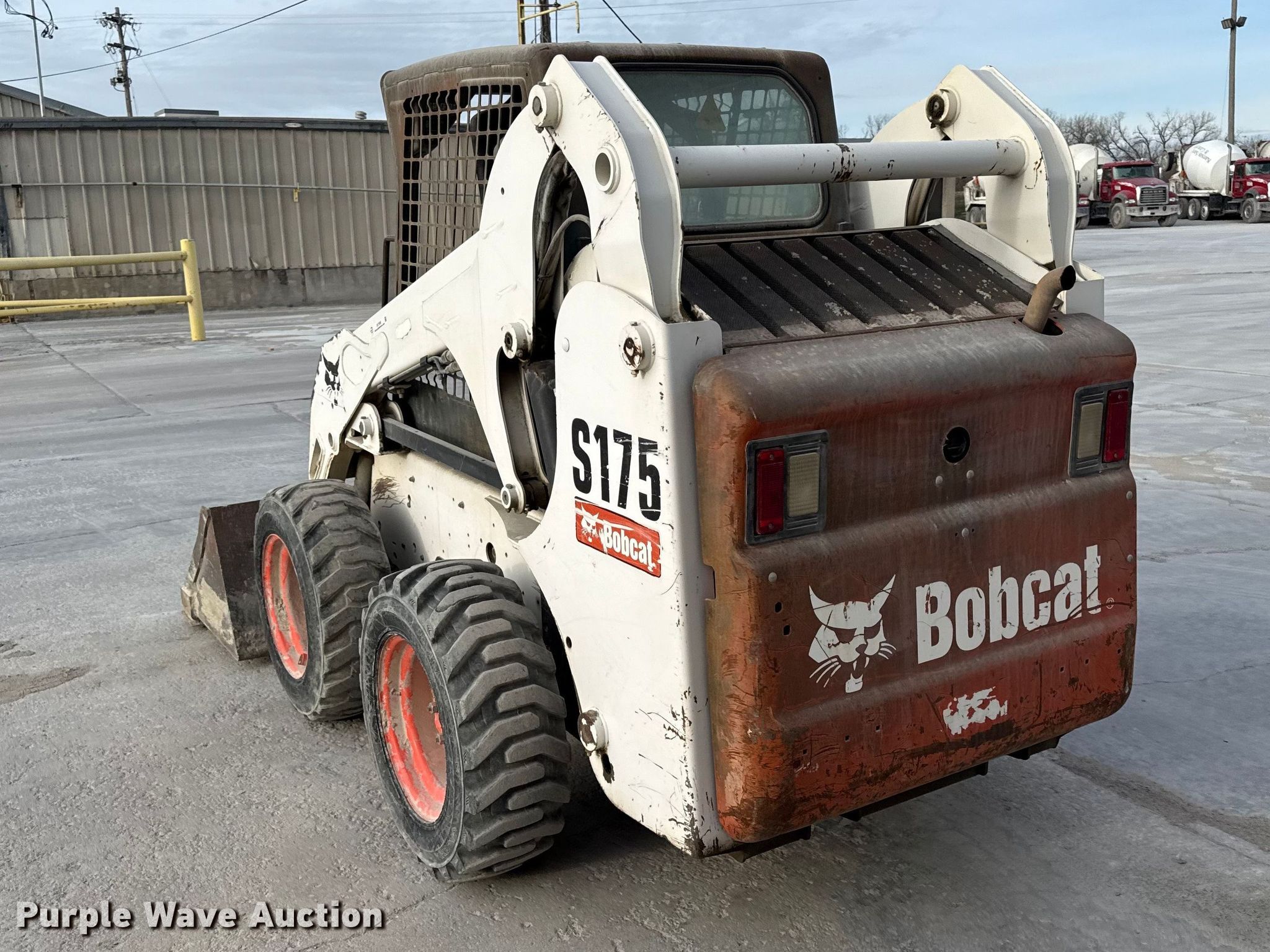 2008 Bobcat S175 skid steer loader. Hours: 1,731 on meter, Serial: A3L511182. Engine Cylinders: 4, Fuel type: Diesel. Transmission Hydrostatic. Operators station OROPS, Bucket control: Foot. Features Auxiliary hydraulics, Auxiliary electrical outlet, Quick coupler: Manual, Bucket Width: 68". Tires Size: 10x16.5. Notes Over tire tracks included. The Monarch Cement Company (Kansas Sand & Concrete Inc). Topeka, KS 66608