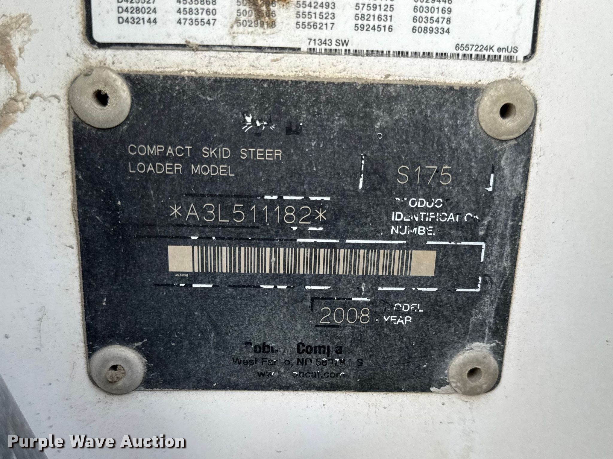 Purple Wave is selling a used Skid Steer Loader in Kansas. This item is a 2008 Bobcat S175 skid steer loader with the following: Hours: 1,731 on meter, Serial: A3L511182