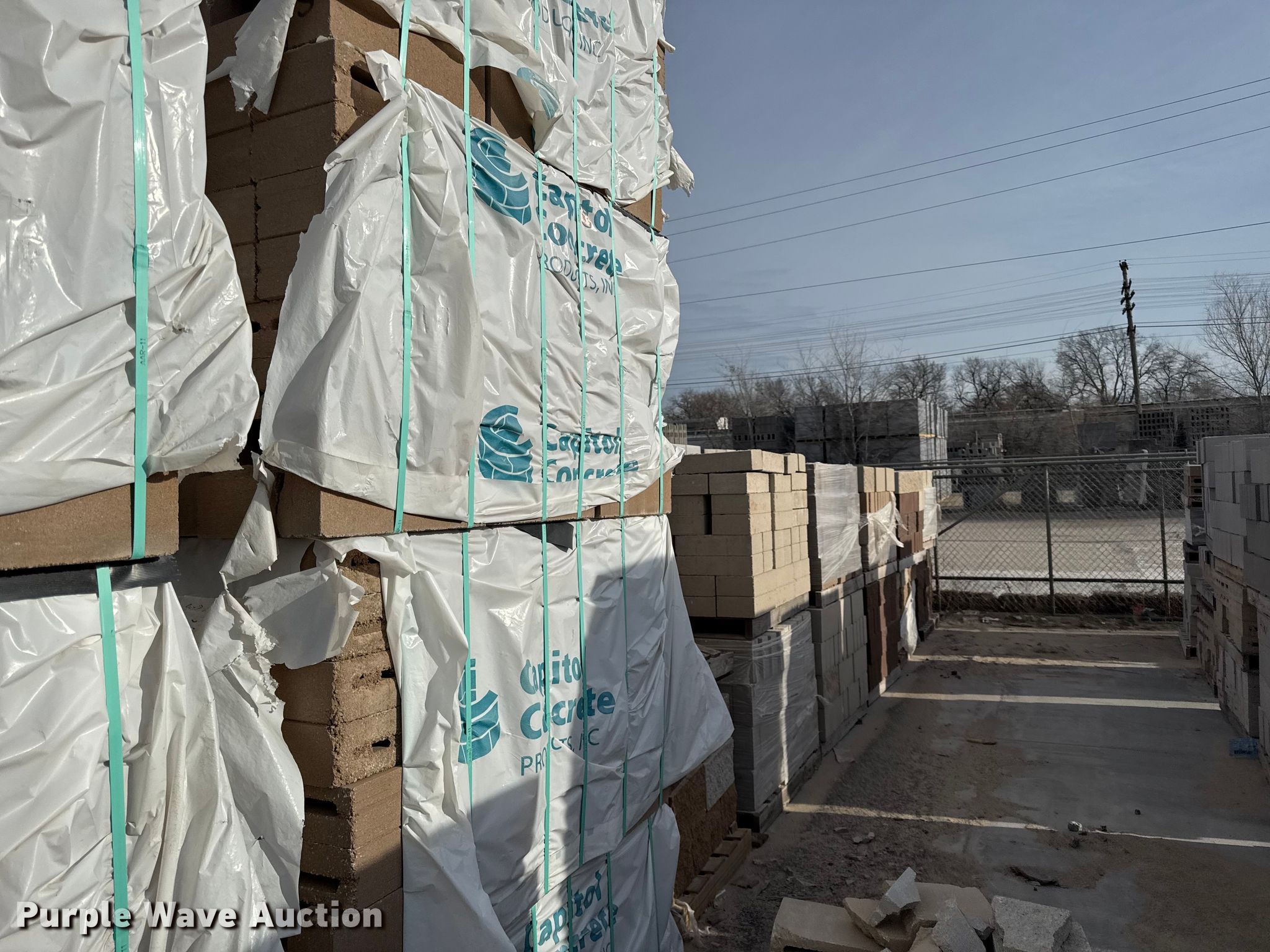 Purple Wave is selling a used Building Materials in Kansas. This item is a Concrete blocks with the following: 4 x 8 x 16, Various colors, Approx. (15) pallets