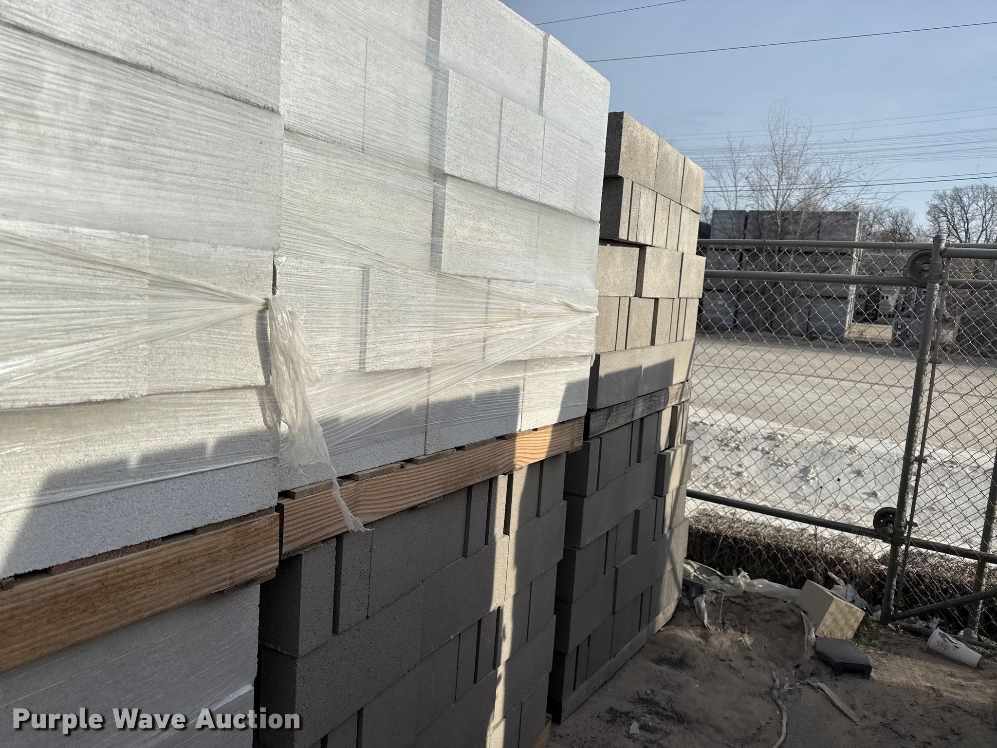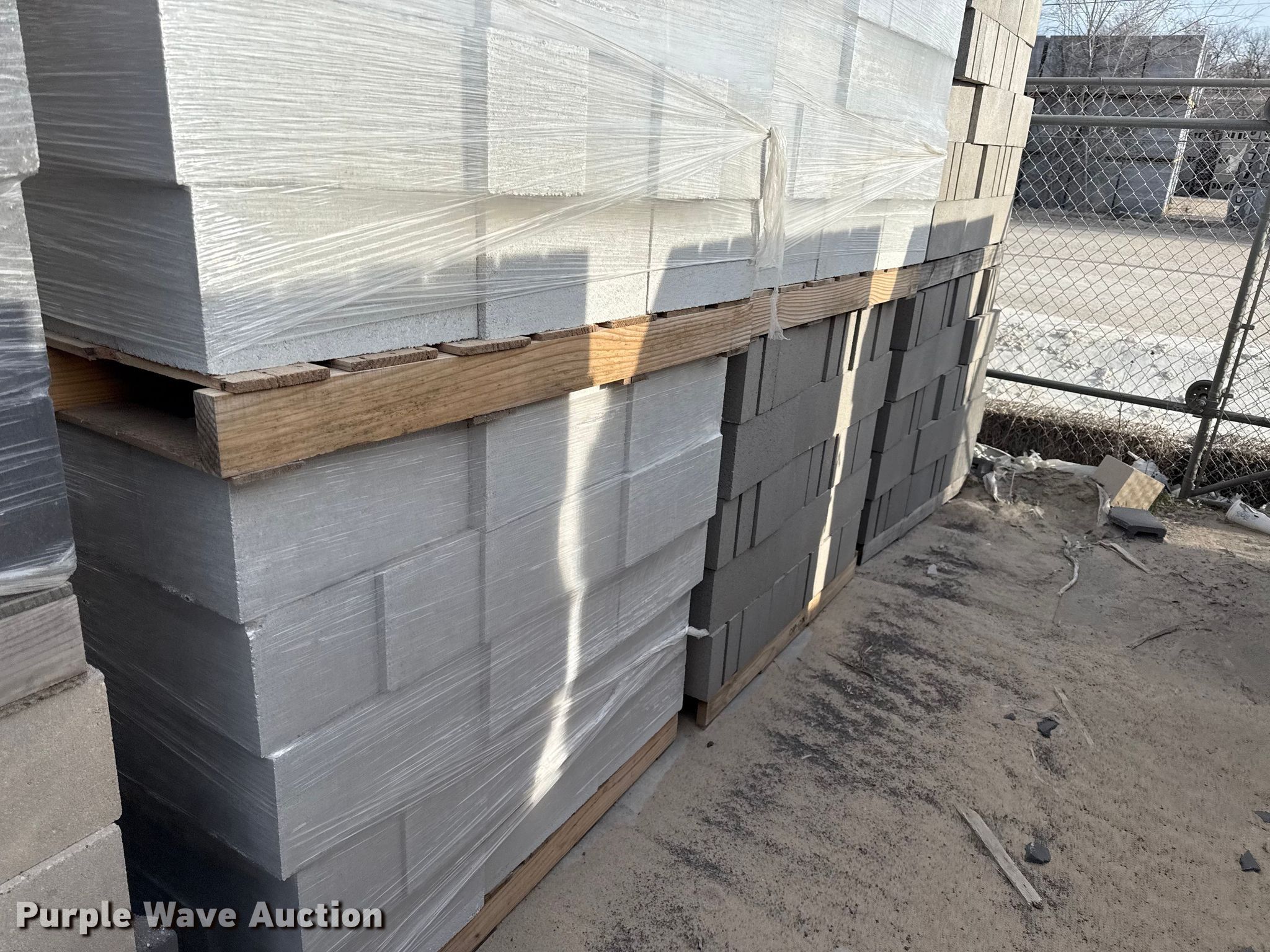Purple Wave is selling a used Building Materials in Kansas. This item is a Concrete blocks with the following: 8 x 8 x 16, Various colors, Approx. 20 pallets