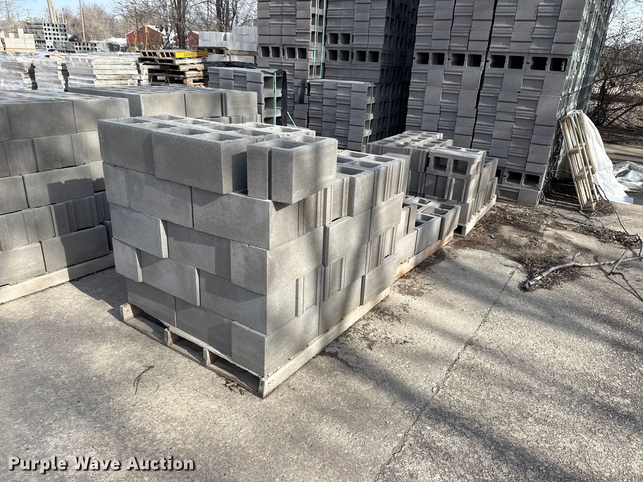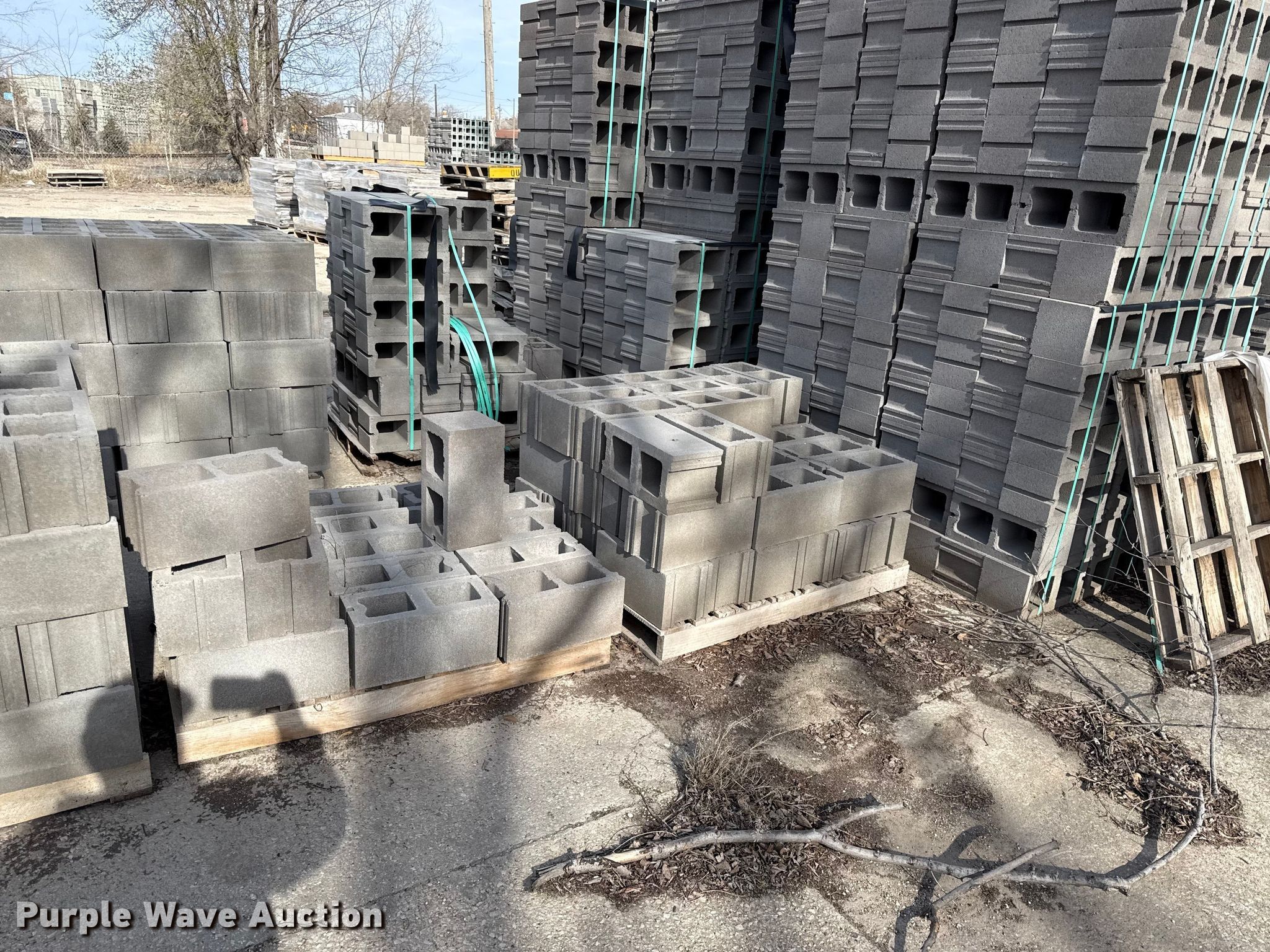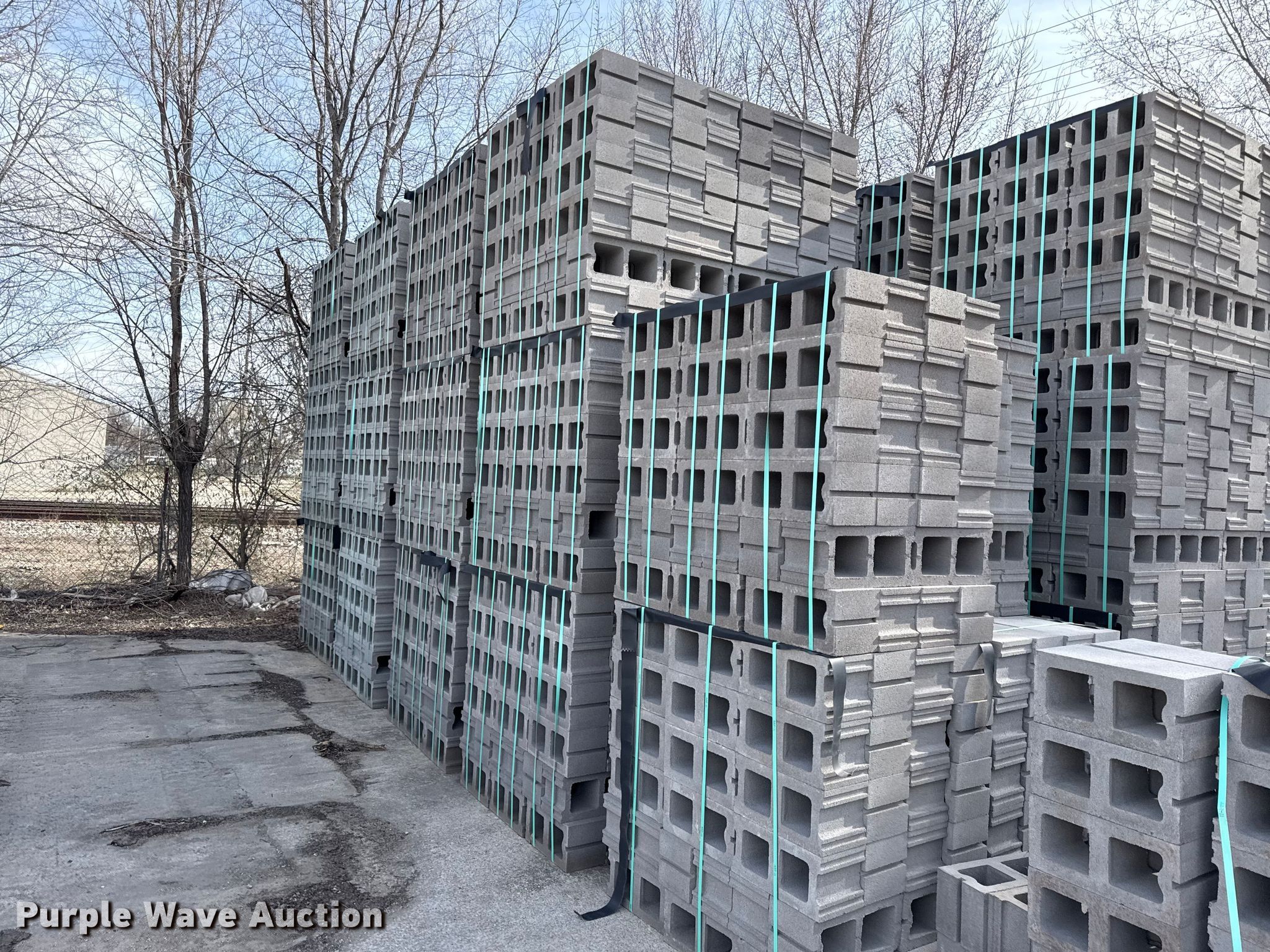 Purple Wave is selling a used Building Materials in Kansas. This item is a Concrete blocks with the following: 8 x 8 x 16, Approx. 58 cubes, Approx. 5 pallets