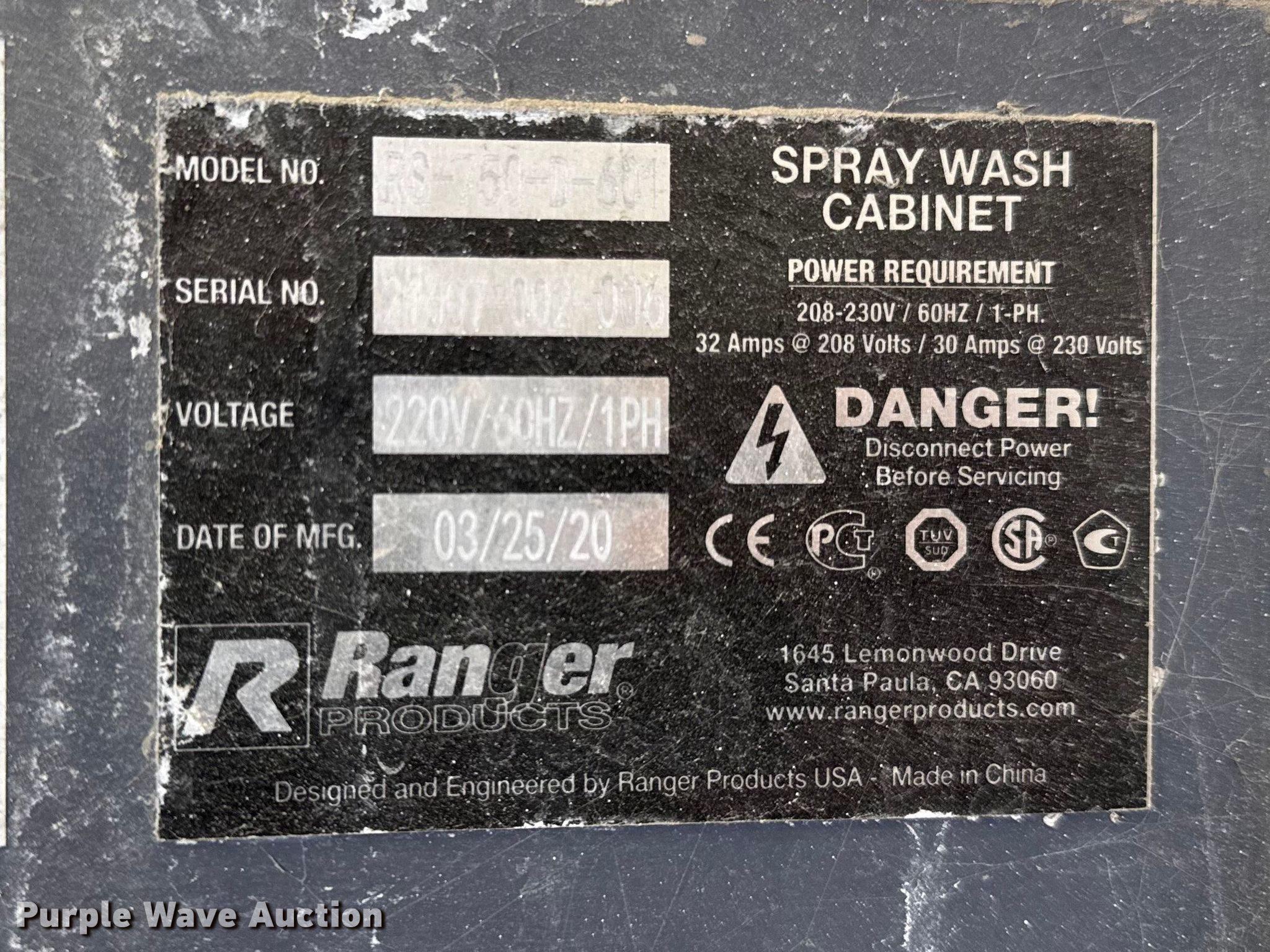 Purple Wave is selling a used Parts Washer in Kansas. This item is a 2020 Ranger RS-50-1-60 parts washer with the following: Volts: 220, Hertz: 60, Phase: Single, Non-operational pump, Unknown operating condition