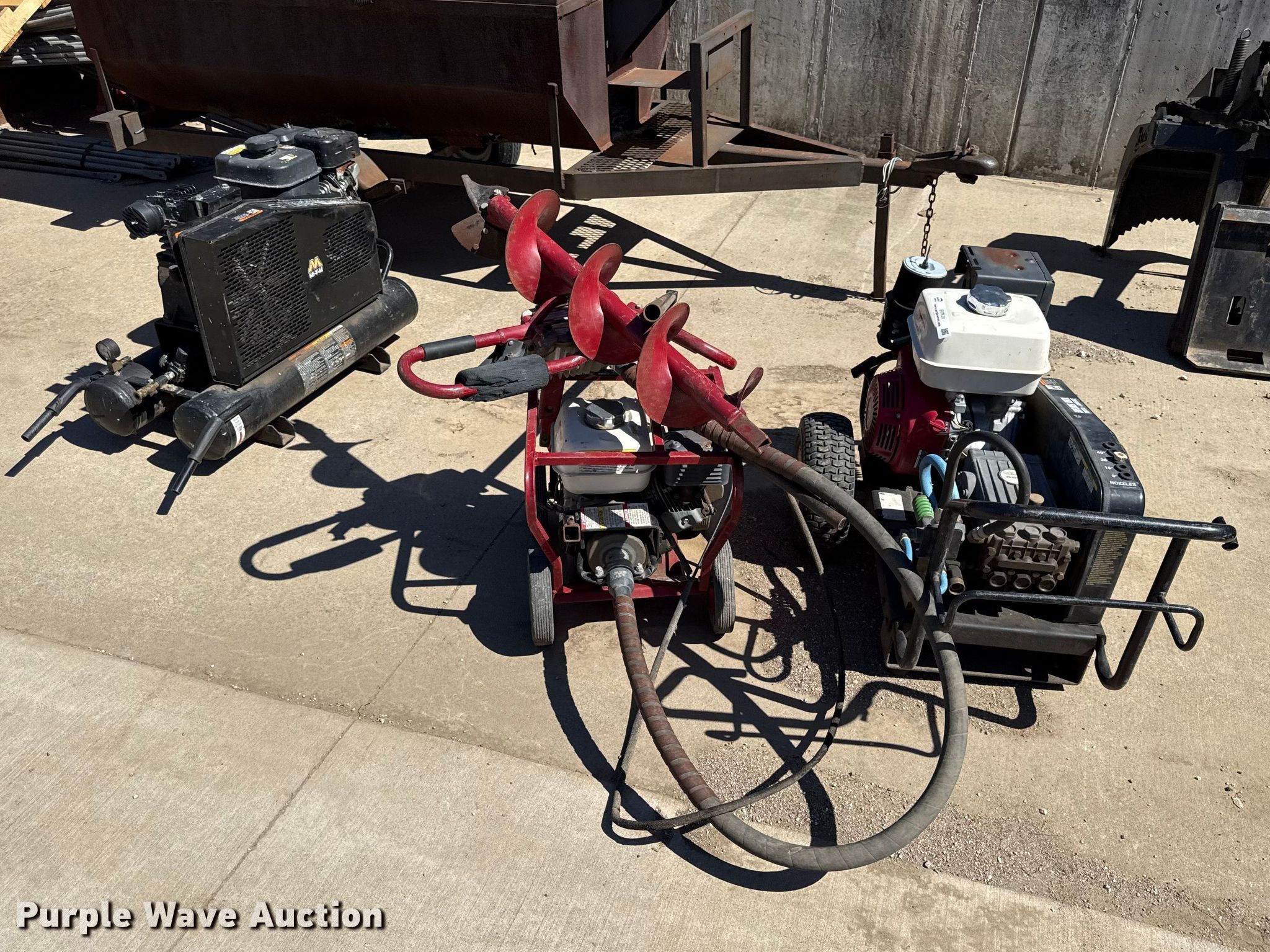 Purple Wave is selling a used Tools in Kansas. This item is a Tools with the following: Mi-T-M pressure washer, Honda GX390 engine, MI-T-M air compressor, Auger