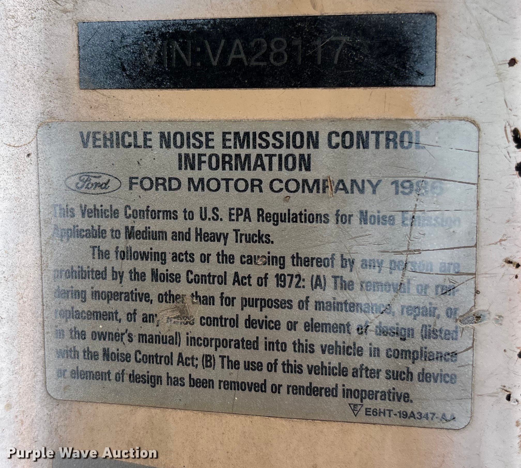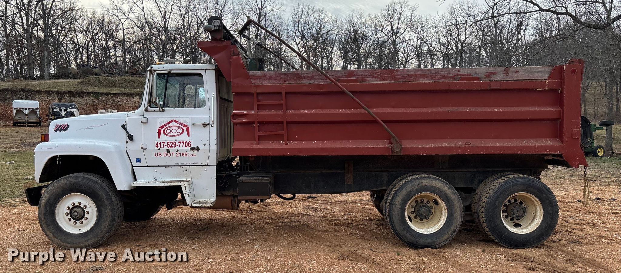 Purple Wave is selling a used Construction Dump Truck in Missouri. This item is a 1986 Ford LT8000 dump truck with the following: Miles: 602,296 on odometer, Hours: 4,950 on meter, VIN: 1FDYU80U3GVA28117