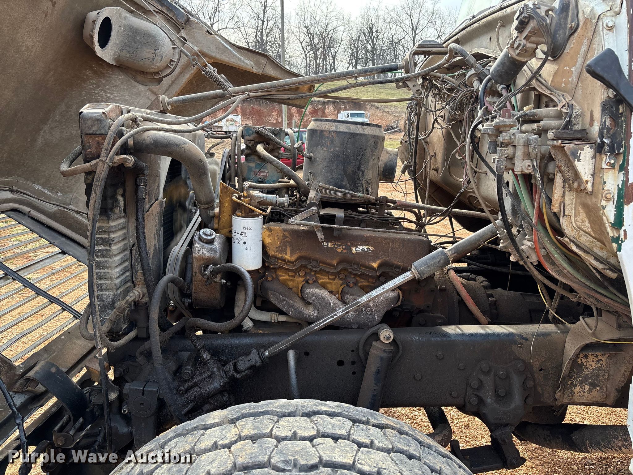 1986 Ford LT8000 dump truck. Miles: 602,296 on odometer, Hours: 4,950 on meter, VIN: 1FDYU80U3GVA28117. Engine Caterpillar 3208, Serial: 62W55778, Displacement: 10.4L, Cylinders: 8, Fuel type: Diesel. Transmission Automatic. Chassis Axles: Tandem, Differential lock: Inter-axle, Suspension: Spring over walking beam, Brakes: Air, PTO. Interior Heat. Features Bed Dump bed, Length: 16', Width: 8', Side height: 40", Side board height: 8", Bed type: Steel, Roll tarp, Ram: Single, End gate: Air operated. Tires Front: 425/65R22.5, Rear: 11R22.5. Notes Power steering leak, Fuel tank mount cracked, Fuel leak, Non-operational Roll tarp. Missouri title. Title distribution may be delayed up to 14 days from verification of funds. JWJ Ltd. Purdy, MO 65734
