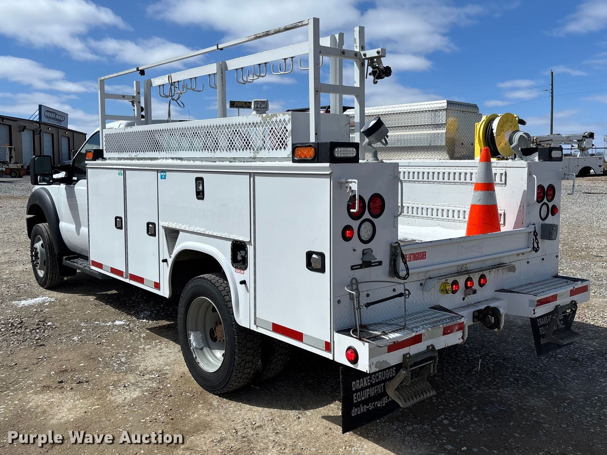 2016 Ford F550 utility / service truck. Miles: 32,269 on odometer, Hours: 4,183 on meter, VIN: 1FDUF5GY7GEB69160. Engine Displacement: 6.8L, Cylinders: 10, Fuel type: Gas. Transmission Automatic. Chassis Axles: Single, Suspension: Spring, Brakes: Hydraulic, GVWR: 19,500 lbs, Wheelbase: 165". Interior AC, Heat, Cruise control, Backup camera, Auxiliary controls, Brake controller. Features Bed Utility bed, Knapheide 6132D54J, Serial: 20160803-0475923, Length: 11' 1", Width: 96", Generator Honda EM5000SX, Fuel type: Gas, 240V outlets: 1, 120V outlets: 2.. Tires Size: 225/70R19.5. Notes Dash warning indicator: Check engine. Missouri title. Seller is a Missouri licensed motor vehicle dealer. The buyer may be required to pay sales tax and/or registration fees to the dealer prior to taking possession. Buyers may be required to provide identification to the licensed dealer to comply with state laws. Title will be assigned and distributed by the dealer. Please contact the seller for distribution questions. Title distribution may be delayed up to 30 days from verification of funds. Mid-Mo Equipment. Kingdom City, MO 65262