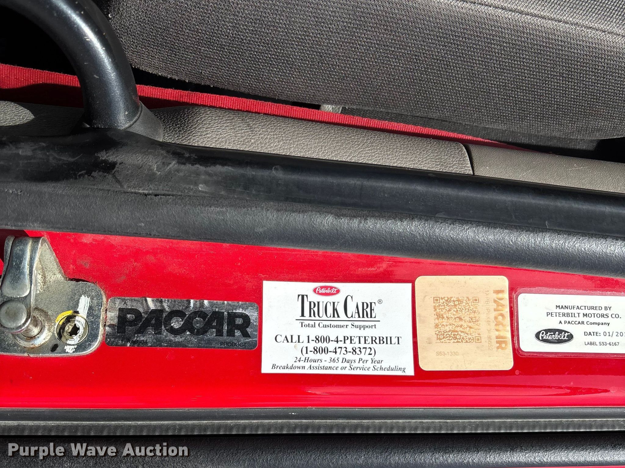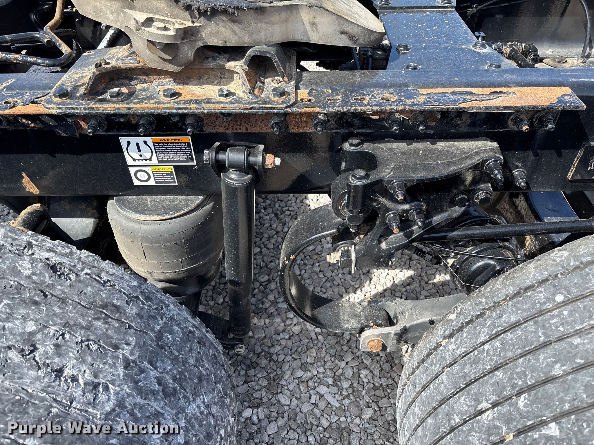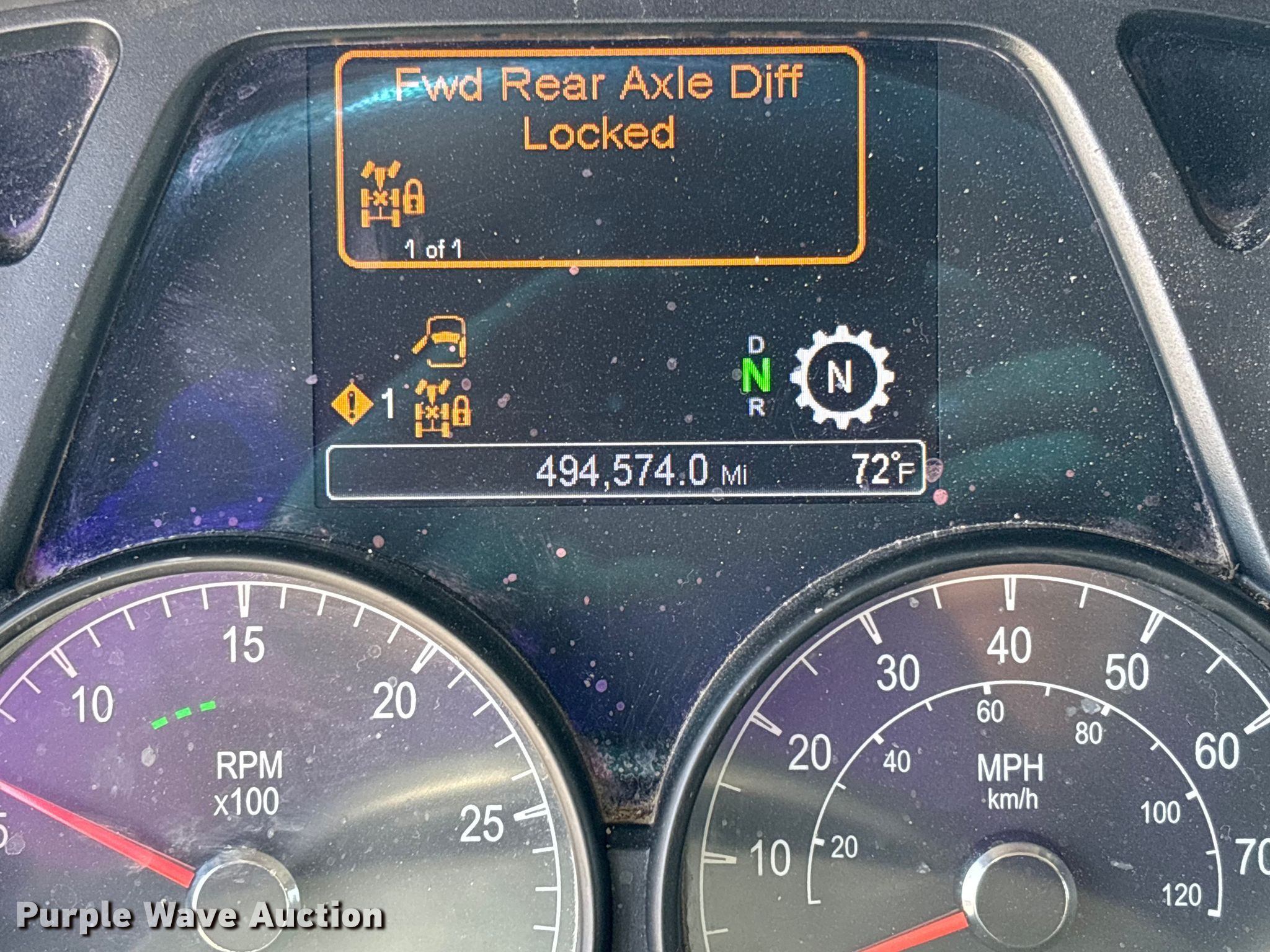 2019 Peterbilt 579 semi truck. Miles: 494,574 on odometer, Hours: 14,620 on meter, VIN: 1XPBDP9X4KD486652. Engine Paccar MX-13, Displacement: 12.9L, Cylinders: 6, Fuel type: Diesel, HP: 455, Engine brake. Transmission Automated manual. Chassis Axles: Tandem, Single axle differential lock, Suspension: Air Dump valves, Brakes: Air, PTO, GVWR: 50,000 lbs FAWR: 12,000 lbs, RAWR: 38,000 lbs, Wheelbase: 214". Interior AC, Heat, Heated mirrors, Power windows, Power locks, Cruise control, Air ride cab, Brake controller. Features Deck plate: Aluminum, Fifth wheel type: Fixed, Fuel tank: Dual. Tires Front: 295/75R22.5, Rear: 445/50R22.5. Notes Dash warning indicator: Traction control, Windshield chipped or cracked. Arkansas title. The Monarch Cement Company (Beaver Lake Concrete). Jane, MO 64856
