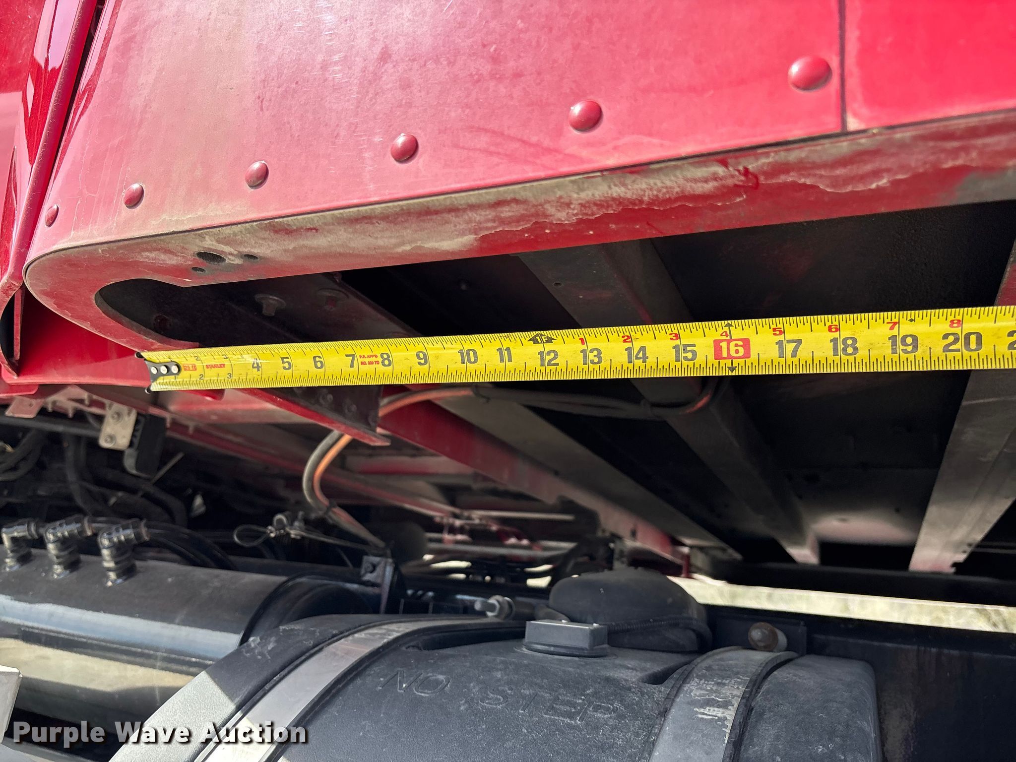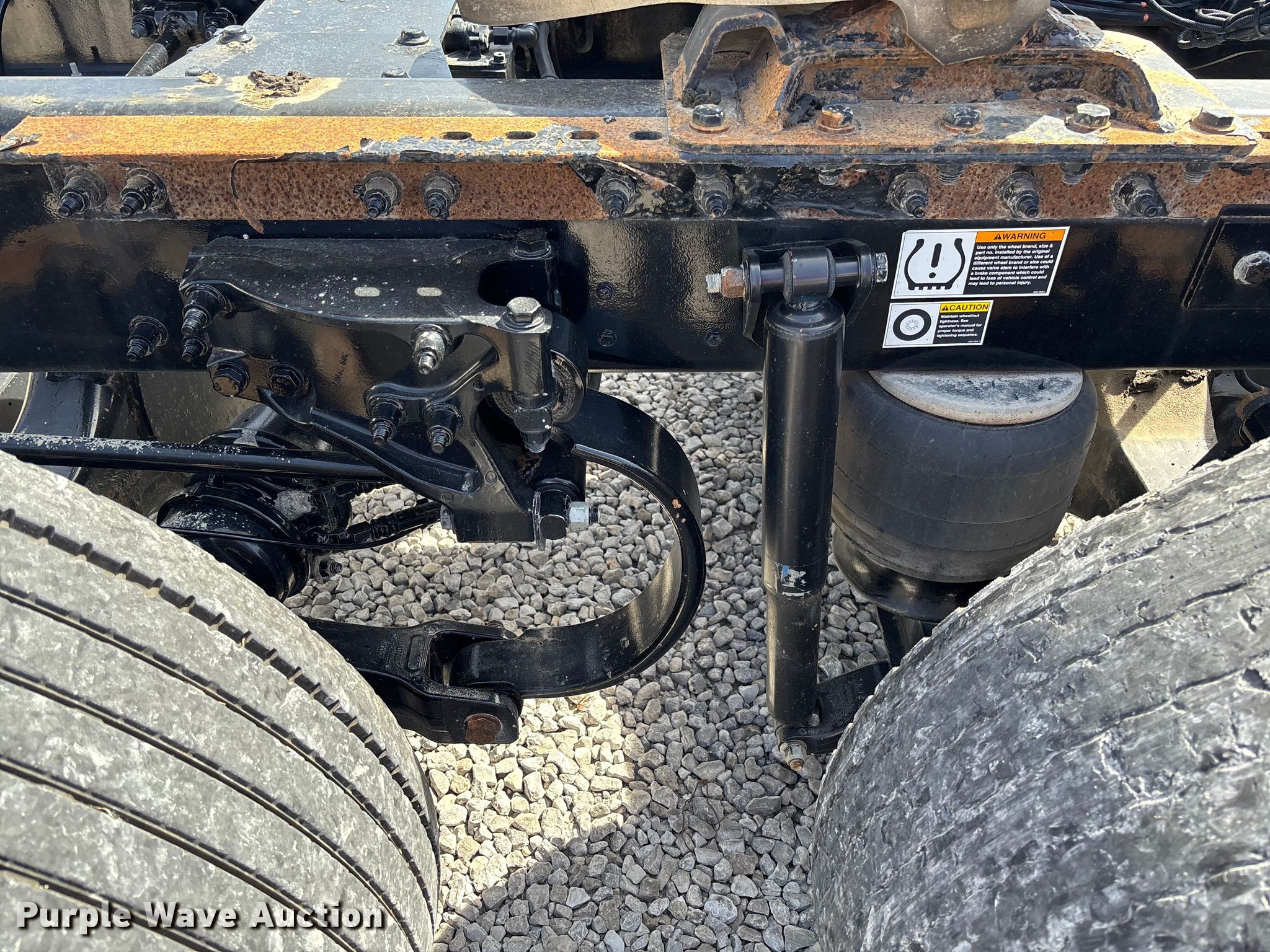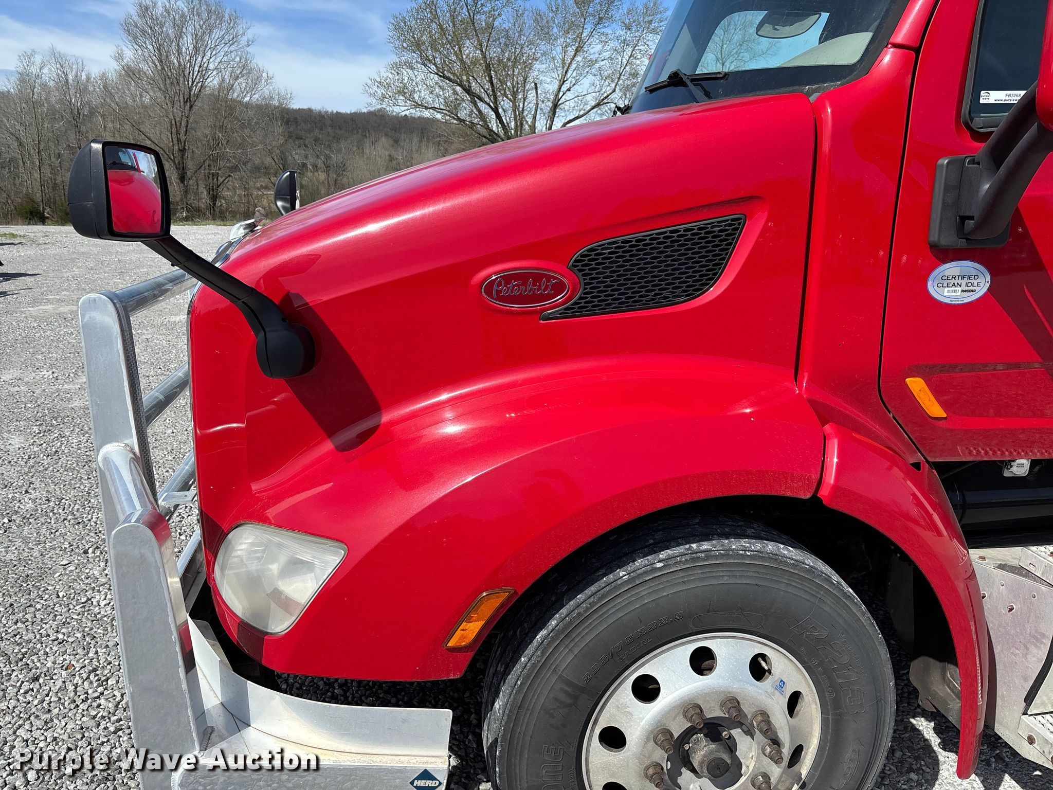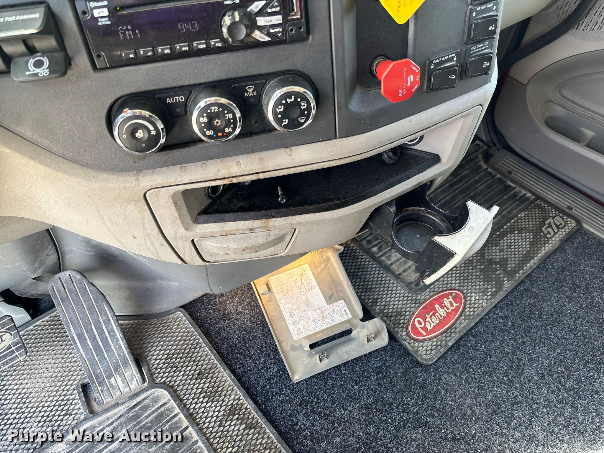 2019 Peterbilt 579 semi truck. Miles: 494,574 on odometer, Hours: 14,620 on meter, VIN: 1XPBDP9X4KD486652. Engine Paccar MX-13, Displacement: 12.9L, Cylinders: 6, Fuel type: Diesel, HP: 455, Engine brake. Transmission Automated manual. Chassis Axles: Tandem, Single axle differential lock, Suspension: Air Dump valves, Brakes: Air, PTO, GVWR: 50,000 lbs FAWR: 12,000 lbs, RAWR: 38,000 lbs, Wheelbase: 214". Interior AC, Heat, Heated mirrors, Power windows, Power locks, Cruise control, Air ride cab, Brake controller. Features Deck plate: Aluminum, Fifth wheel type: Fixed, Fuel tank: Dual. Tires Front: 295/75R22.5, Rear: 445/50R22.5. Notes Dash warning indicator: Traction control, Windshield chipped or cracked. Arkansas title. The Monarch Cement Company (Beaver Lake Concrete). Jane, MO 64856