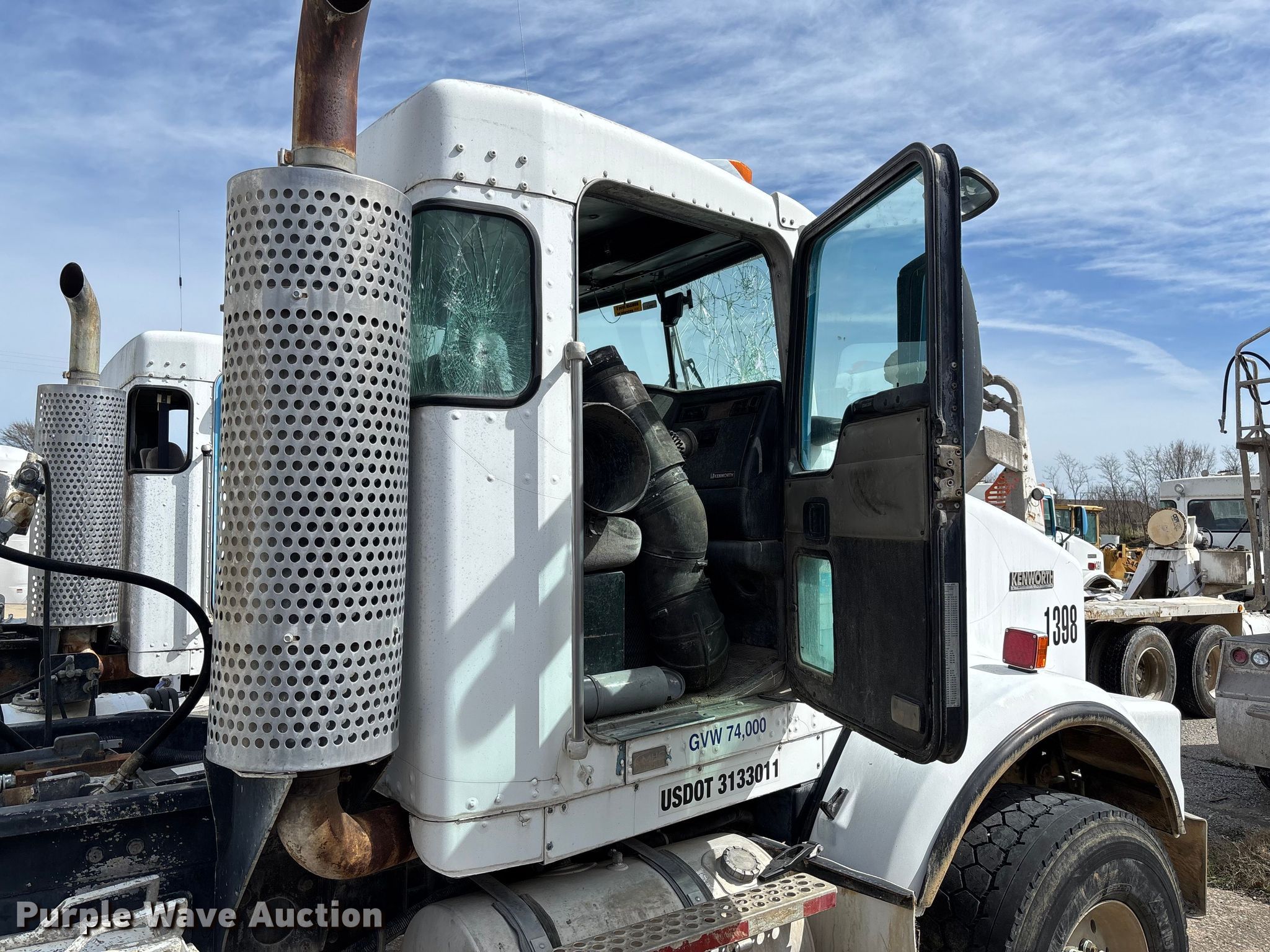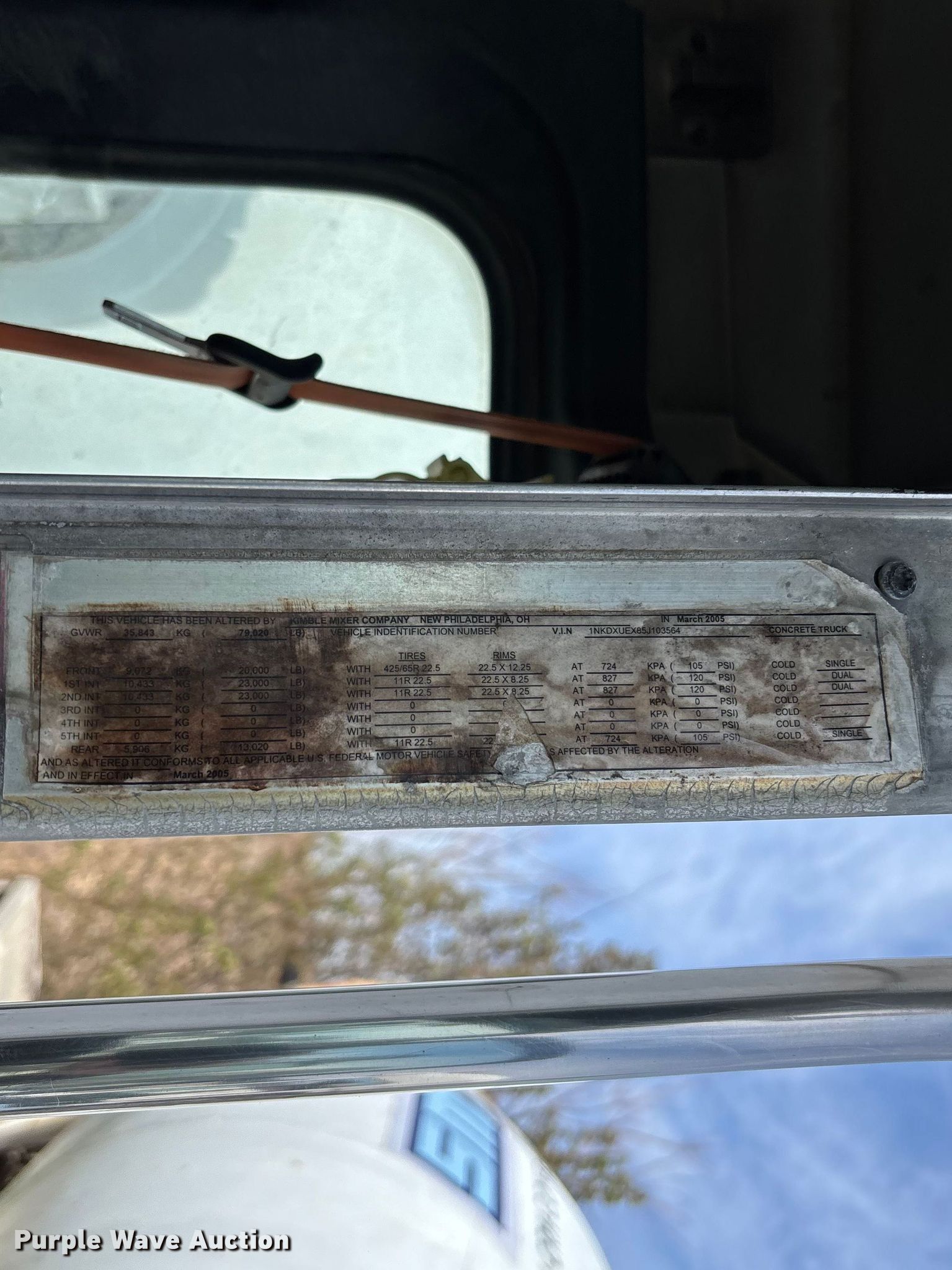 2005 Kenworth T800 ready mix truck. Miles: Unknown, Hours: 12,726 on meter, VIN: 1NKDXUEX85J103564. Engine Caterpillar C13, Displacement: 12.0L, Cylinders: 6, Fuel type: Diesel, Engine brake. Transmission Manual. Chassis Axles: Triple, Tag axle Steerable, Differential lock: Full, Suspension: Spring over walking beam, Brakes: Air, PTO, GVWR: 79,020 lbs FAWR: 20,000 lbs, RAWR: 46,000 lbs, Lift axle GAWR: 13,020 lbs. Interior AC, Heat, Heated mirrors, Cruise control. Features Mixer Kimble, Serial: KS2105HD2743, Capacity: 11 cu.yd., Discharge: Rear, In-cab controls, Rear drum controls, Chute Extensions: 3, Chute type: Steel.. Tires Front: 425/65R22.5, Rear: 11R22.5, Lift axle: 255/70R22.5. Notes Unit must be towed or hauled , Windshield chipped or cracked, Dead battery, Key not included, Parts may be missing, Non-operational unit. Arkansas title. Mileage has not been verified. Exempt will be written in the odometer disclosure on the title. Title distribution may be delayed up to 14 days from verification of funds. The Monarch Cement Company (Beaver Lake Concrete). Springdale, AR 72764
