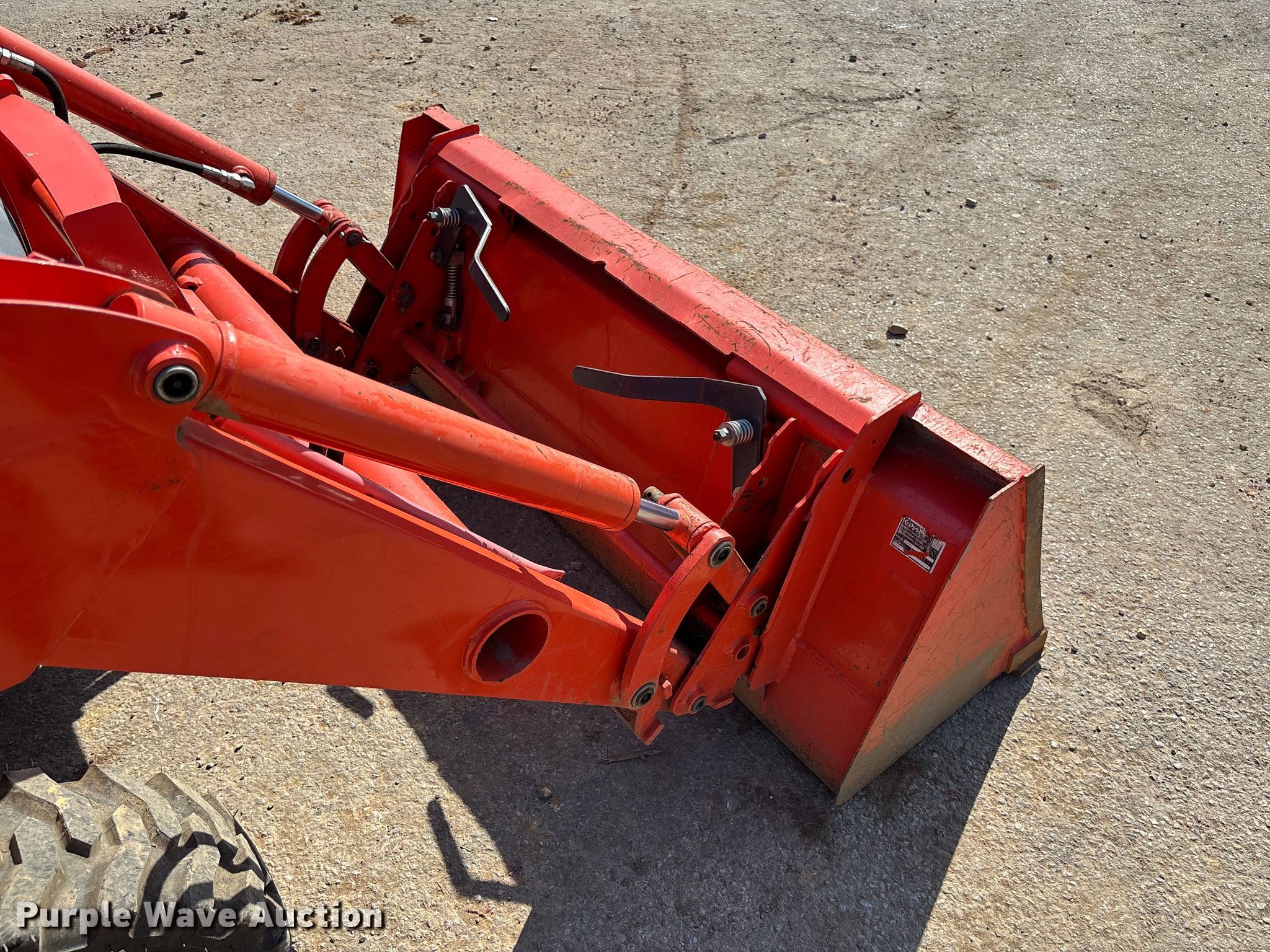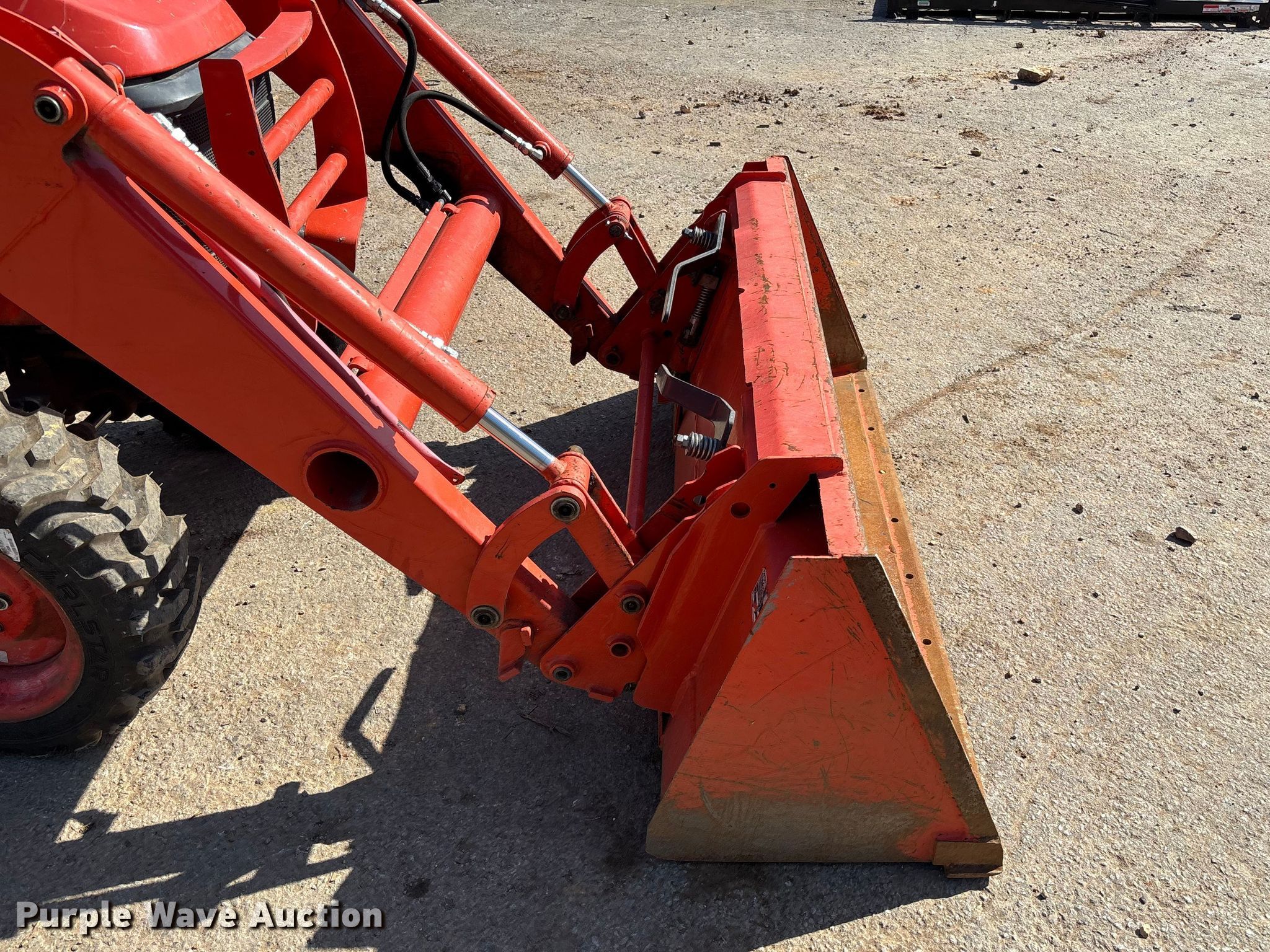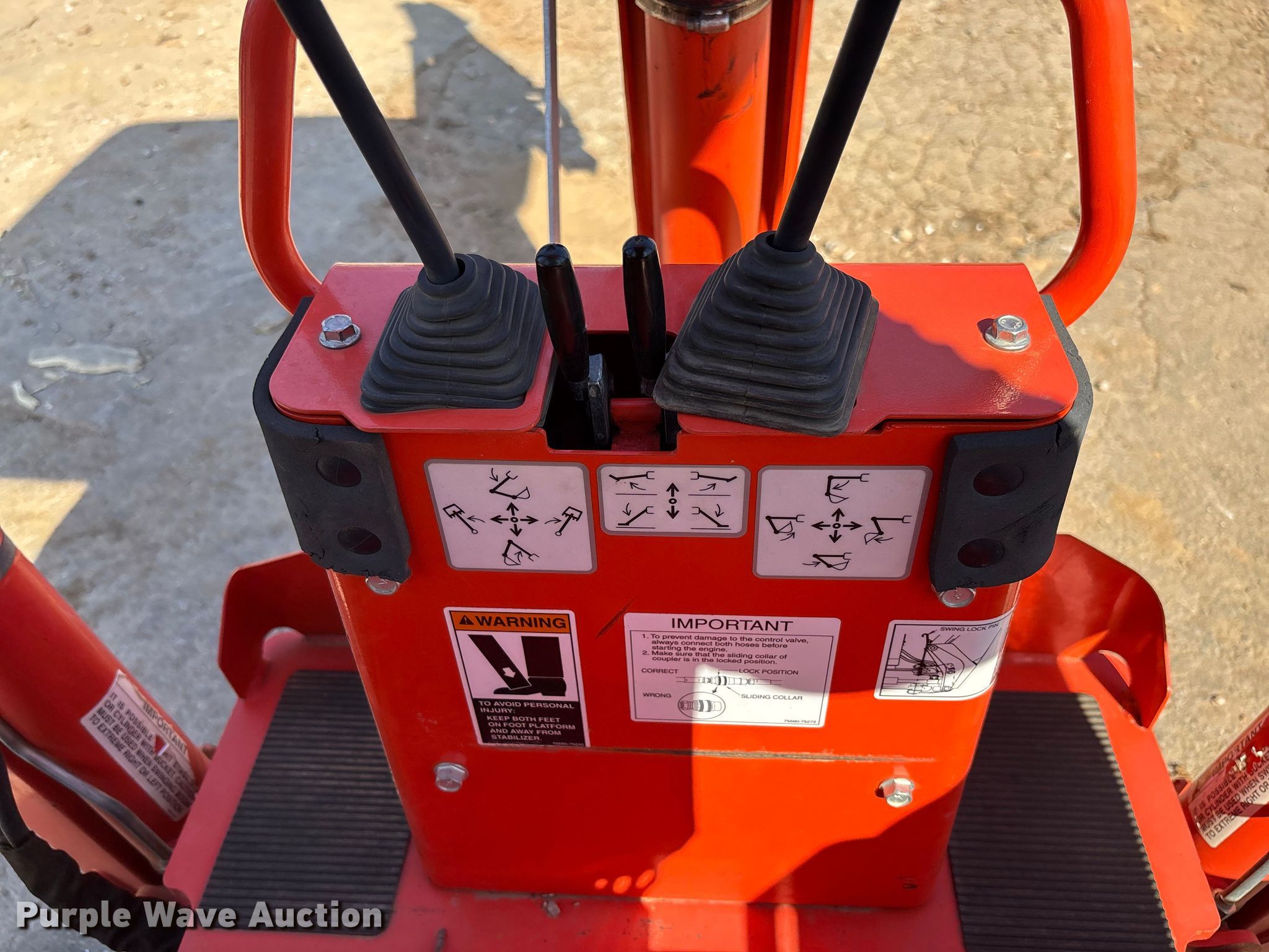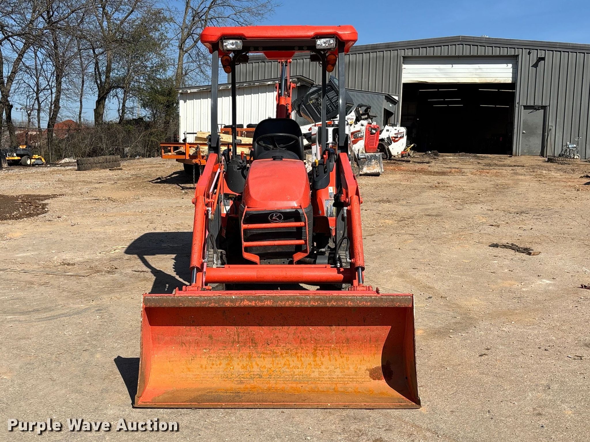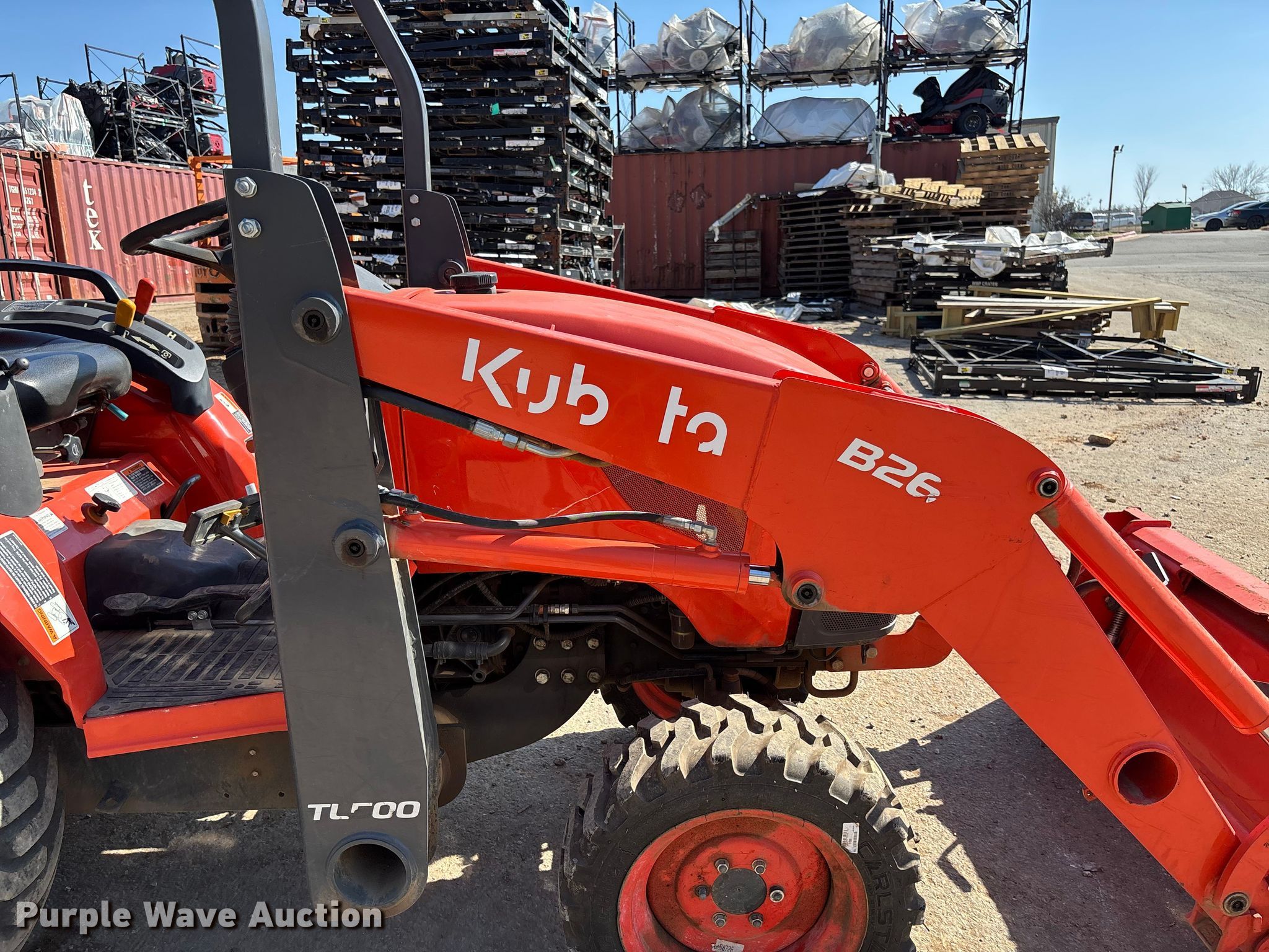 Kubota B26 backhoe. Hours: 426 on meter, Serial: KBU111HRTM1G59596. Engine Kubota D1105-EF03, Displacement: 1.1L, Cylinders: 3, Fuel type: Diesel, kW: 17. Transmission Hydrostatic. Chassis Four wheel drive. Operators station OROPS, Backhoe controls: Wobble stick / two stick. Features Loader Quick coupler: Manual, Bucket Kubota TL2142, Bucket leveler, Width: 60", Cutting edge: Weld-on.. Tires Front: 23x8.50-14, Rear: 12.4-16. Elite Property Services. Rogers, AR 72758
