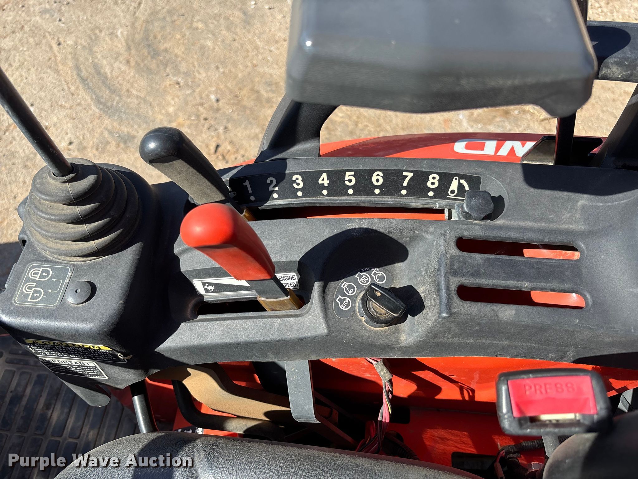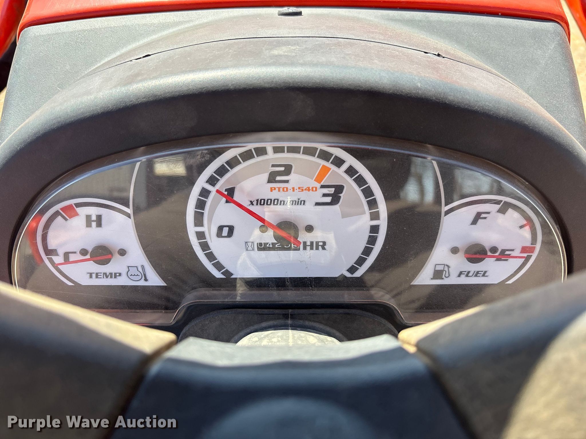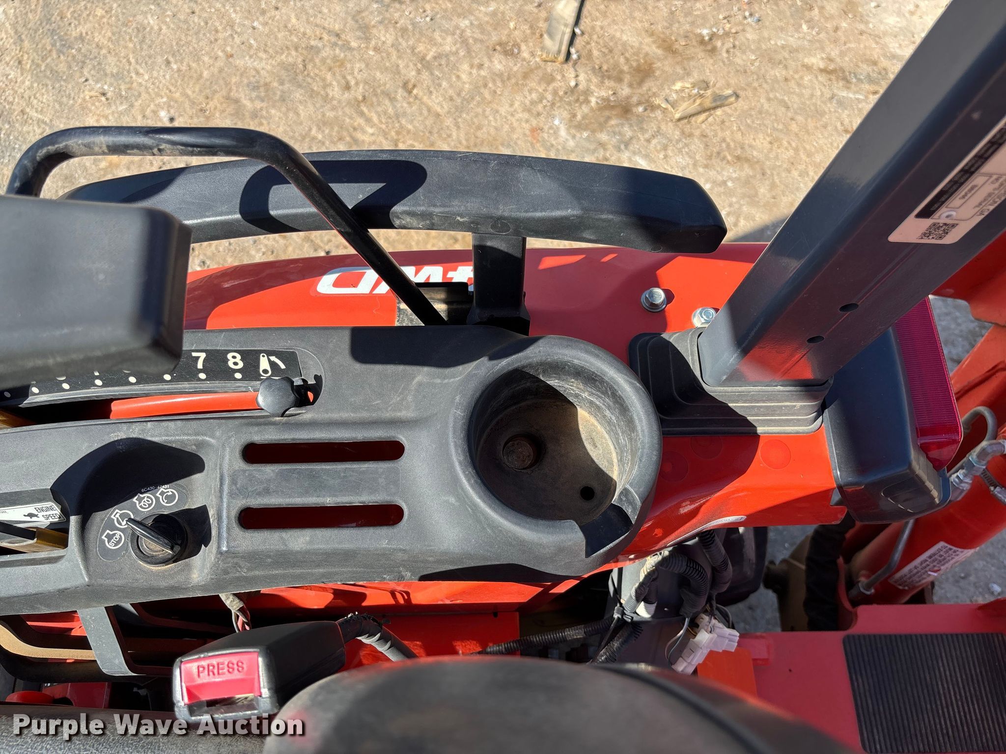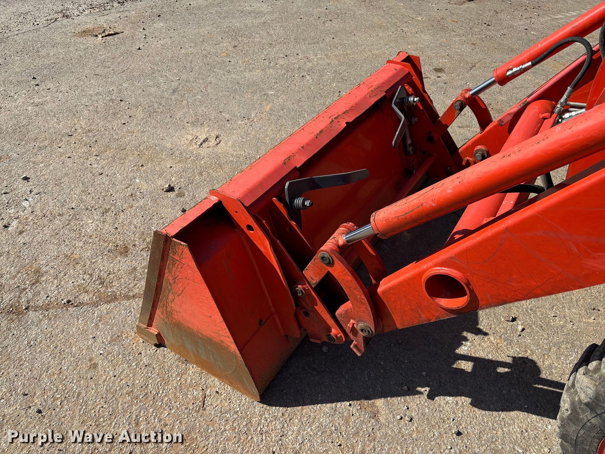 Kubota B26 backhoe. Hours: 426 on meter, Serial: KBU111HRTM1G59596. Engine Kubota D1105-EF03, Displacement: 1.1L, Cylinders: 3, Fuel type: Diesel, kW: 17. Transmission Hydrostatic. Chassis Four wheel drive. Operators station OROPS, Backhoe controls: Wobble stick / two stick. Features Loader Quick coupler: Manual, Bucket Kubota TL2142, Bucket leveler, Width: 60", Cutting edge: Weld-on.. Tires Front: 23x8.50-14, Rear: 12.4-16. Elite Property Services. Rogers, AR 72758