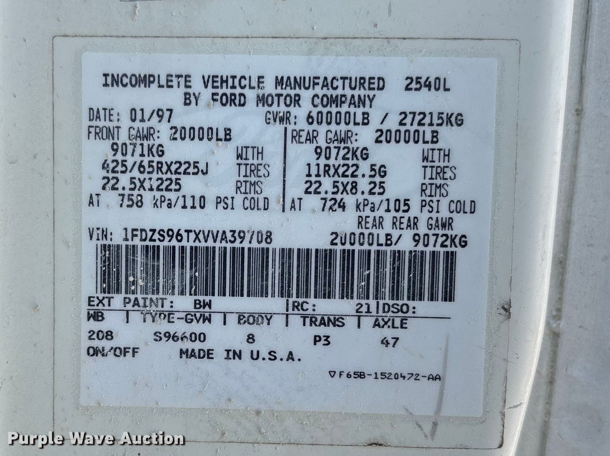 - VIN: 1FDZS96TXVVA39708