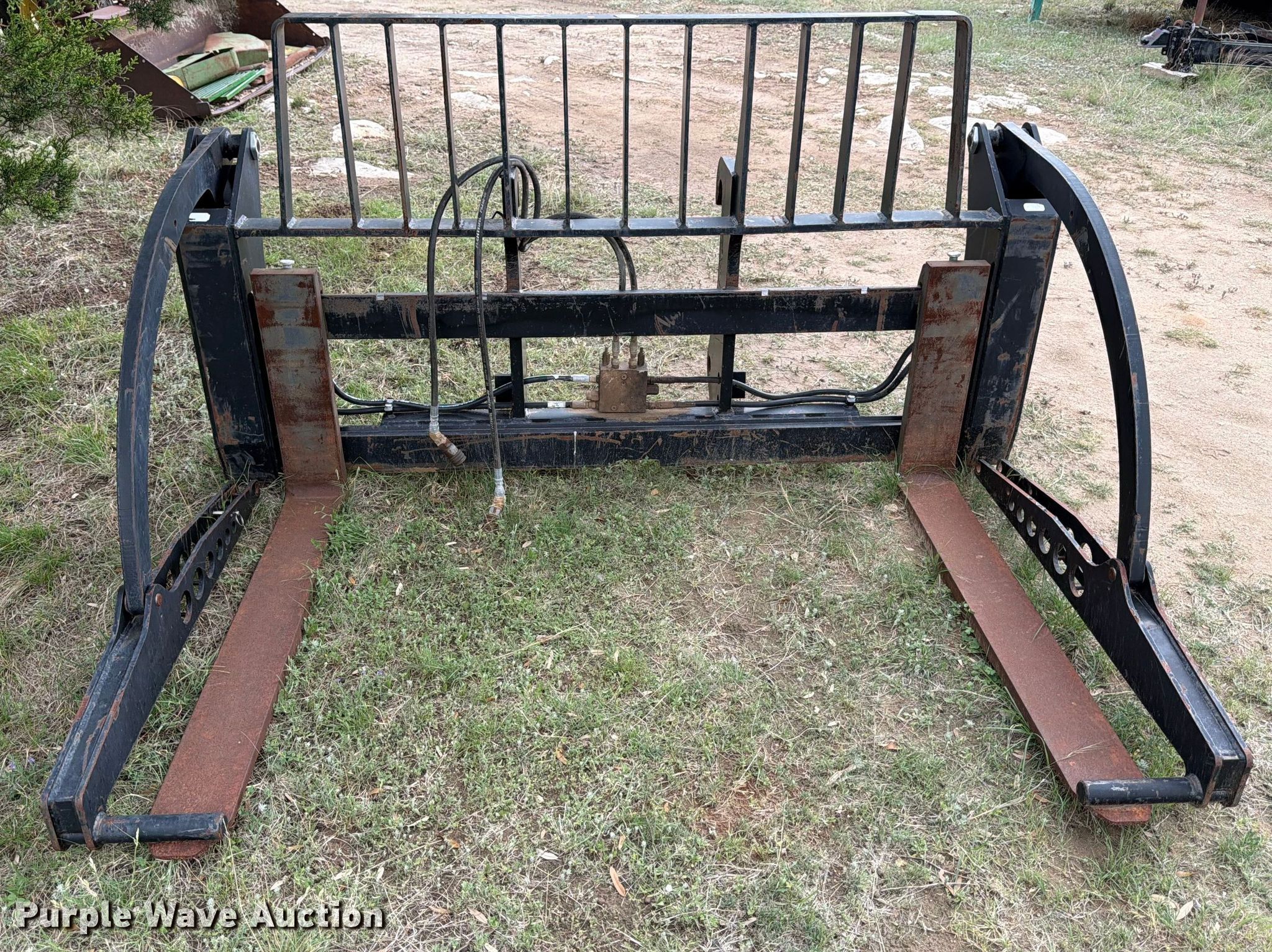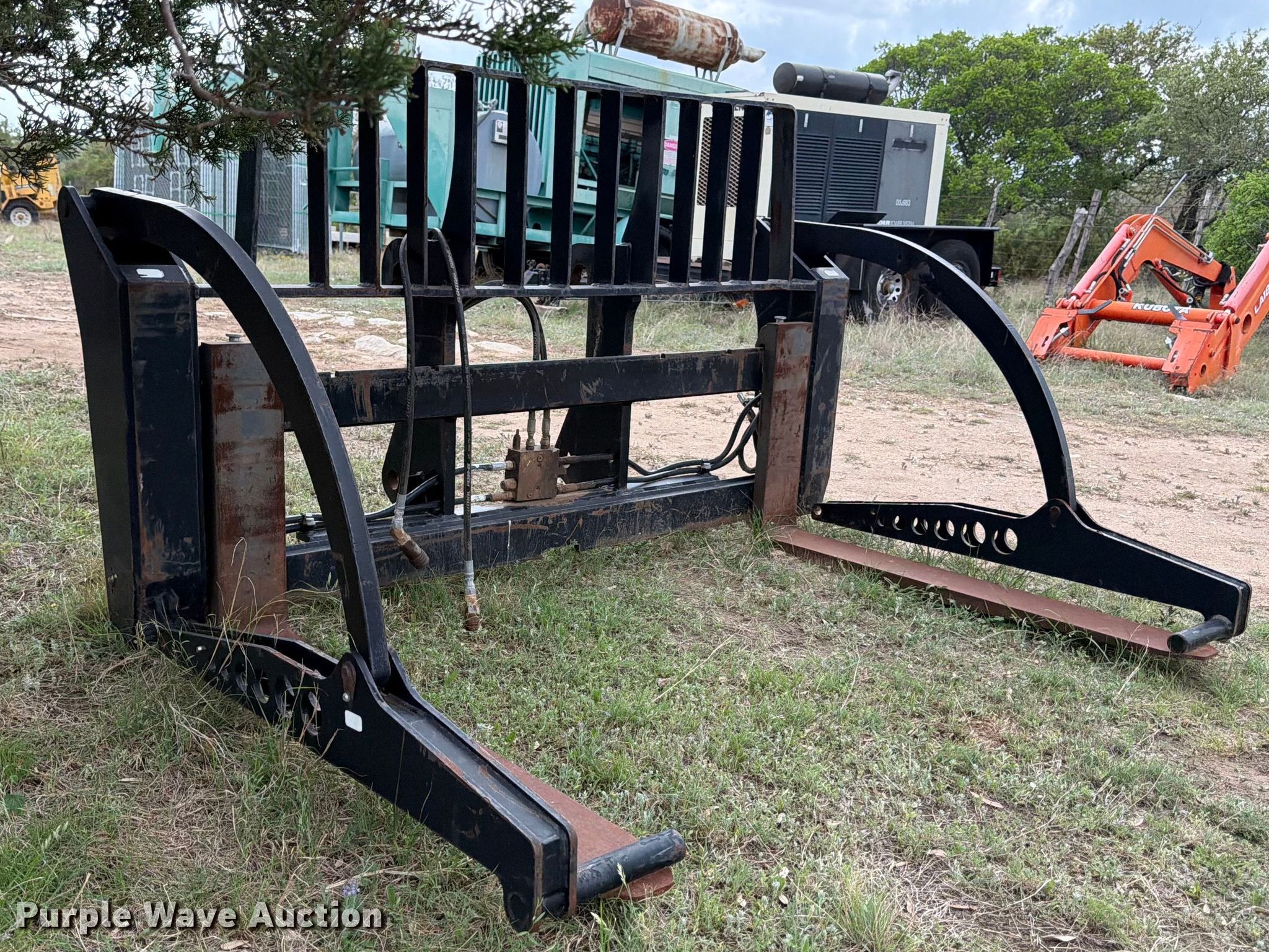 Purple Wave is selling a used Wheel Loader Attach. in Texas. This item is a Forks with the following: Hydraulic grapple, Fork length: 48"