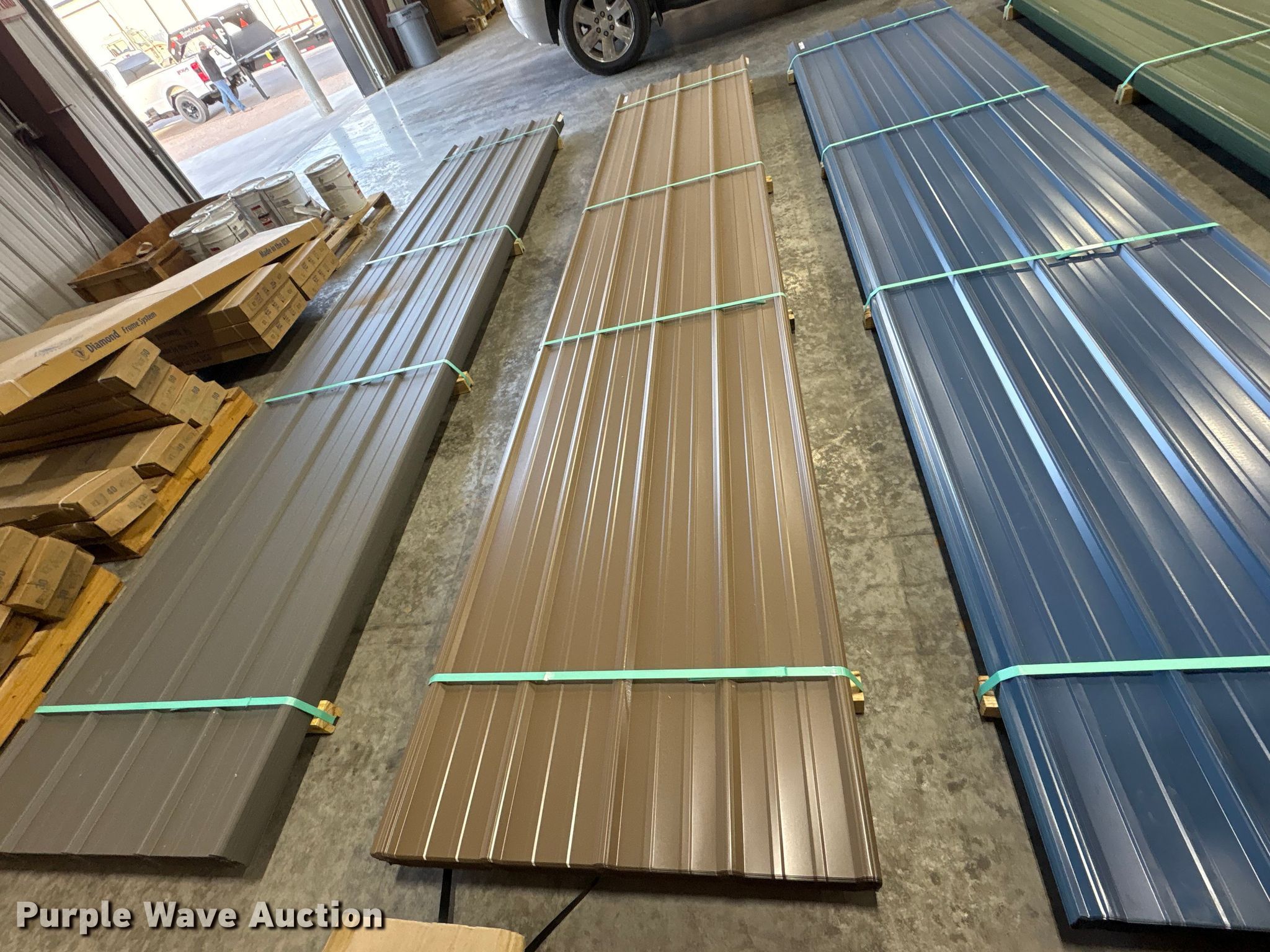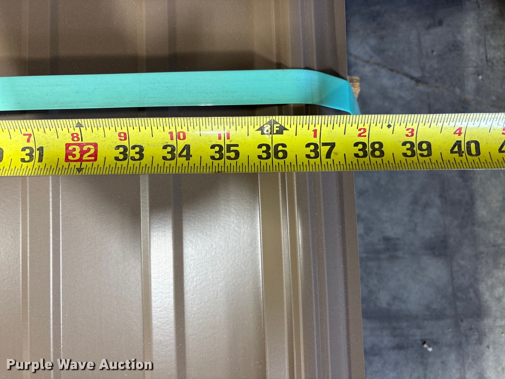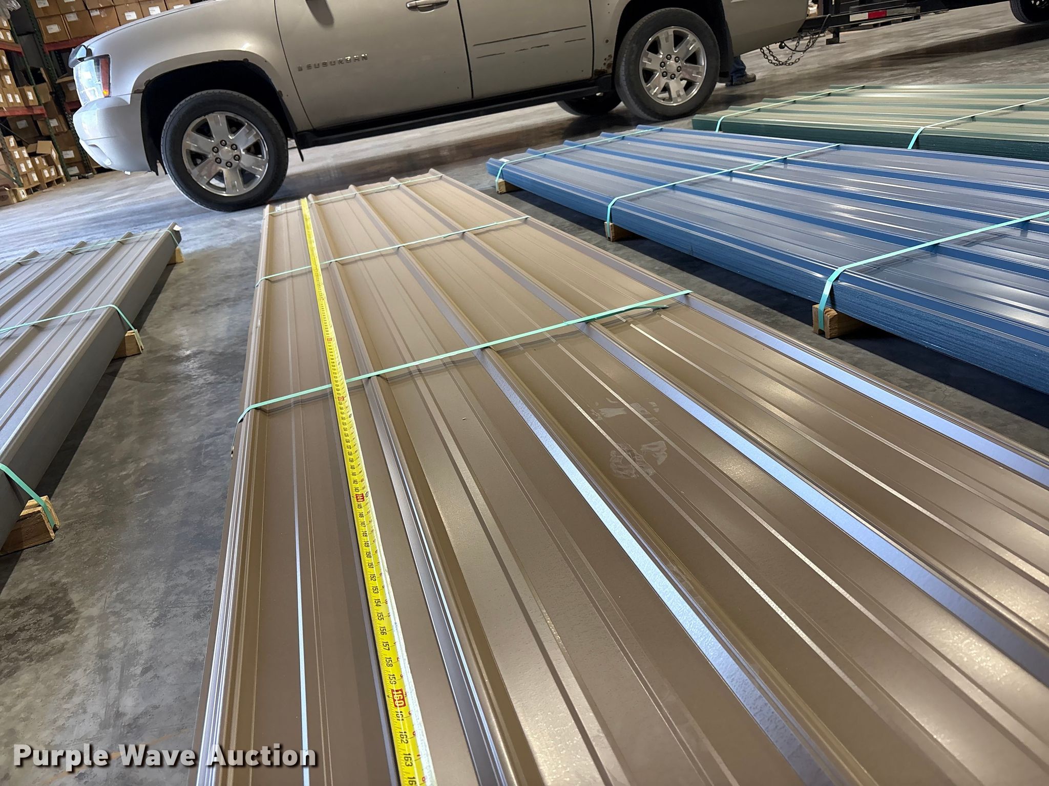 Purple Wave is selling a used Building Materials in Texas. This item is a (100) sheets of metal siding/roofing with the following: 16' L x 36" W, Gauge: 29, Color: Light brown, Possible blemishes