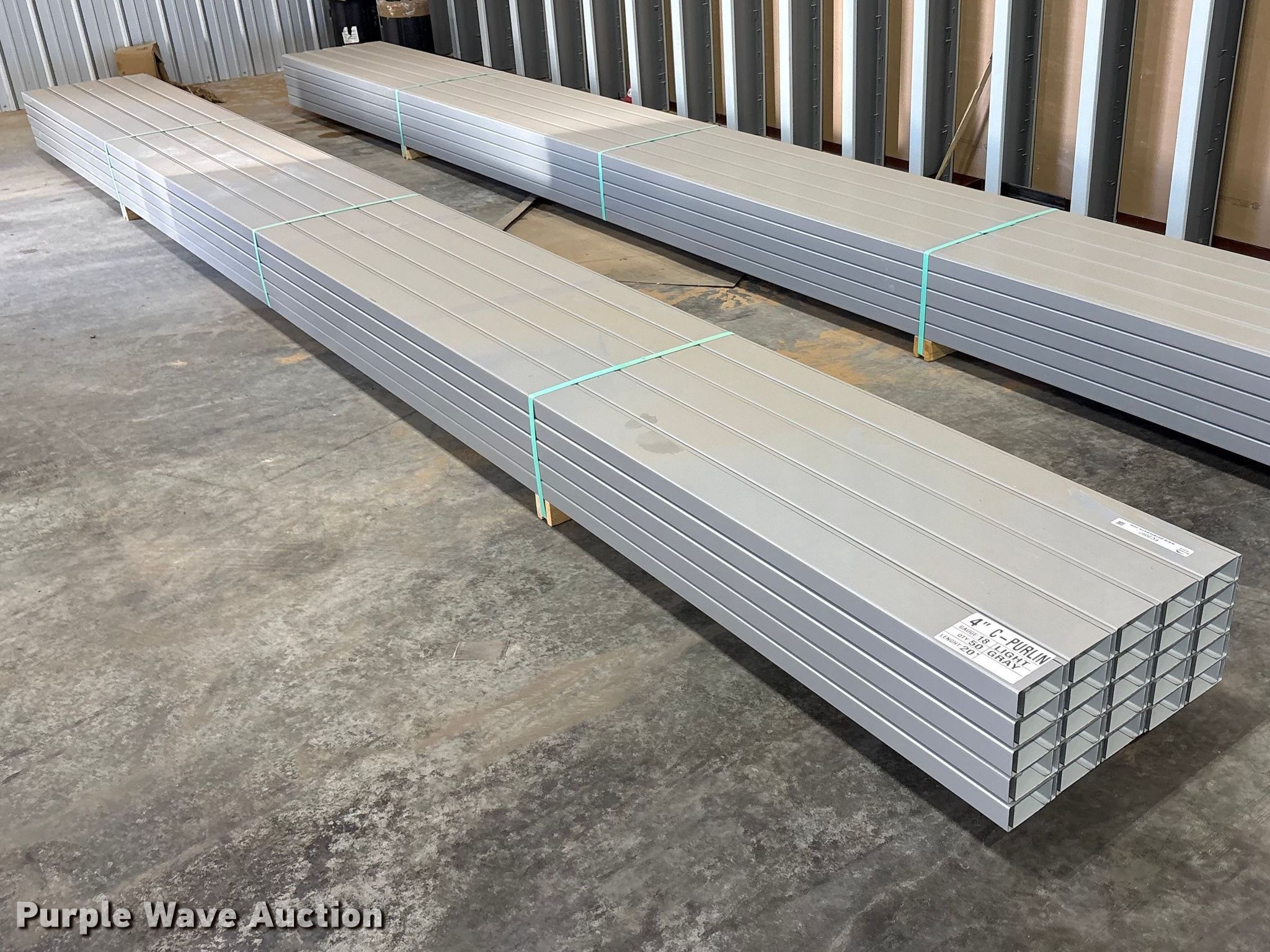 Purple Wave is selling a used Building Materials in Texas. This item is a (50) C-purlins with the following: 20' L x 4" W, Gauge: 18, Color: Light gray