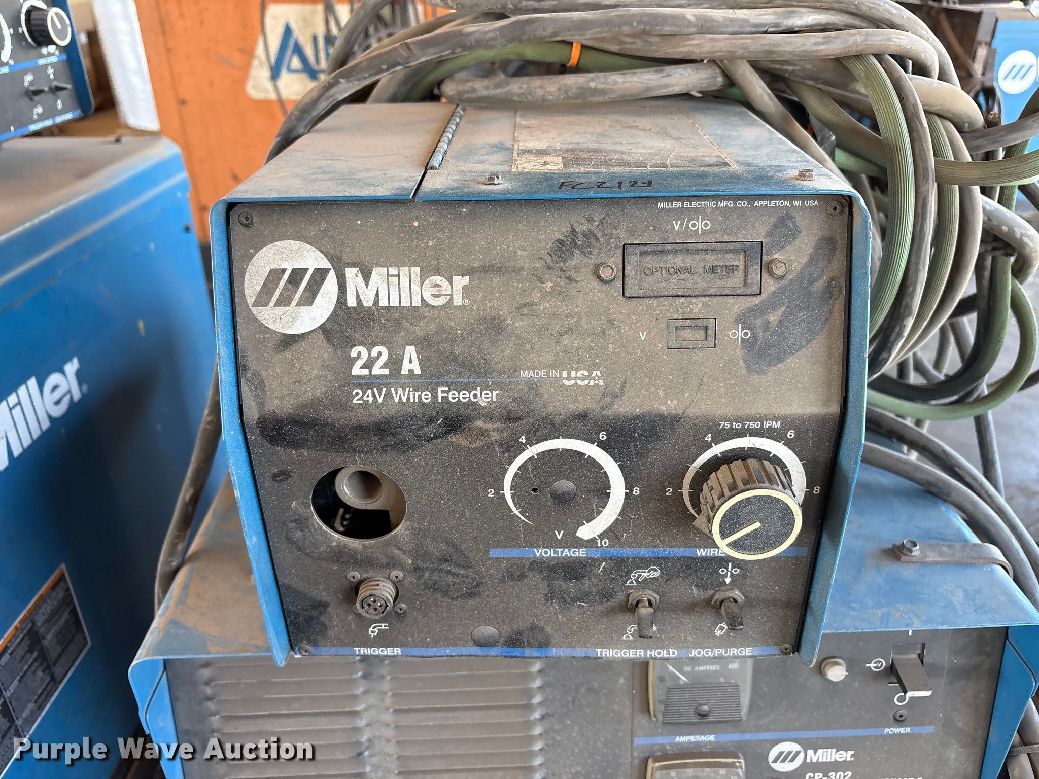Purple Wave is selling a used Welder (Manual) in Texas. This item is a (3) Miller CP-302 welders with the following: Welder, Capabilities: Wire, Leads, Skid mounted, kW: 12.3, Volts: 200/230/460, Phase: Three, (3) Miller 22A wire feeder, Volts: 24