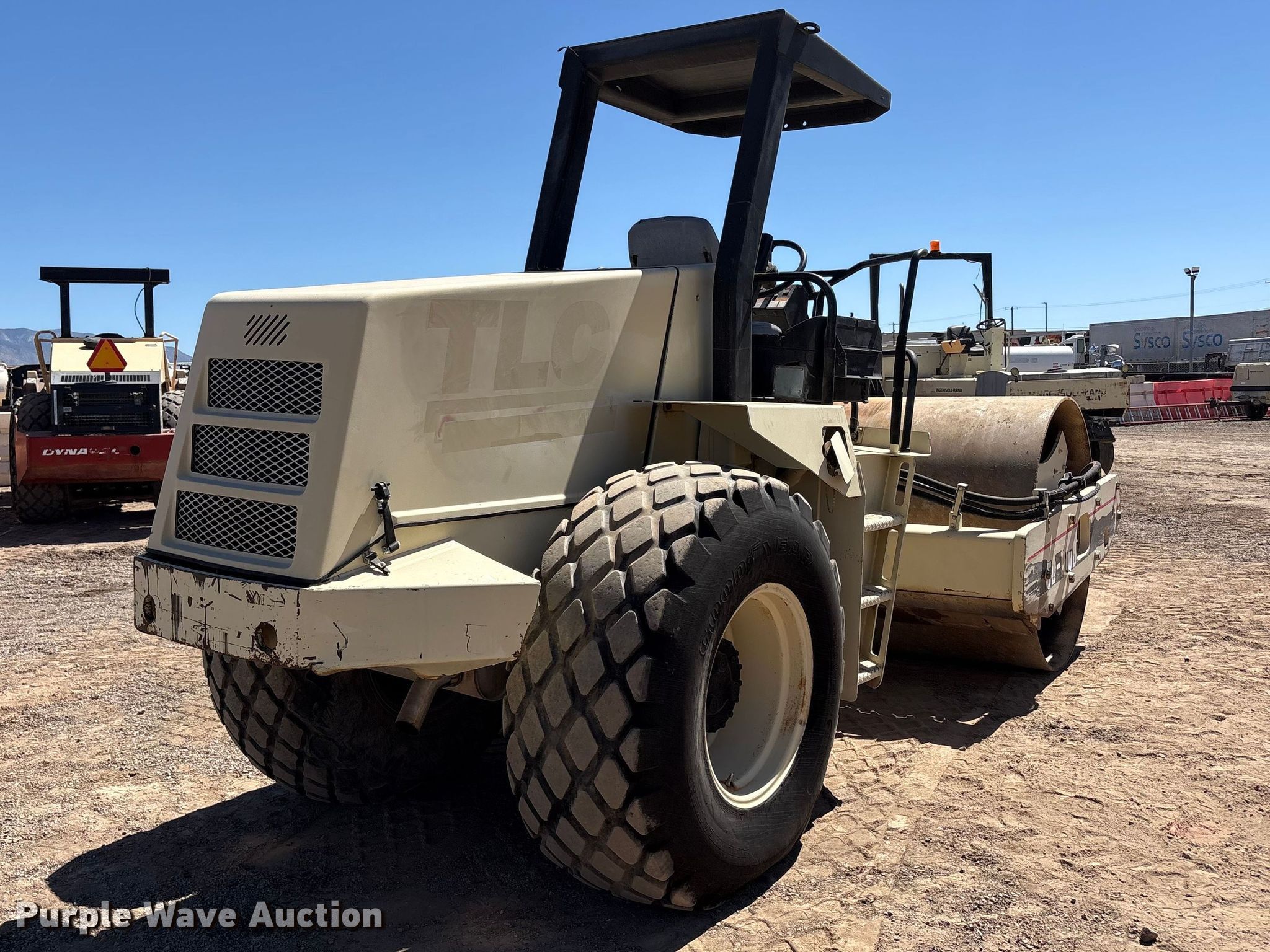 1995 Ingersoll-Rand SD-100D pro pac single drum vibratory roller. Hours: 885 on meter, Serial: 140730. Engine Cylinders: 4, Fuel type: Diesel. Transmission Hydrostatic, Two speed travel. Operators station OROPS. Features Drum Drum type: Smooth, Vibratory system: Single, Two speed, Width: 84", Diameter: 59", Drum scrapers. Tires Size: 23.1-26, Steel wheels. Notes Key not included. TLC Plumbing. Albuquerque, NM 87107