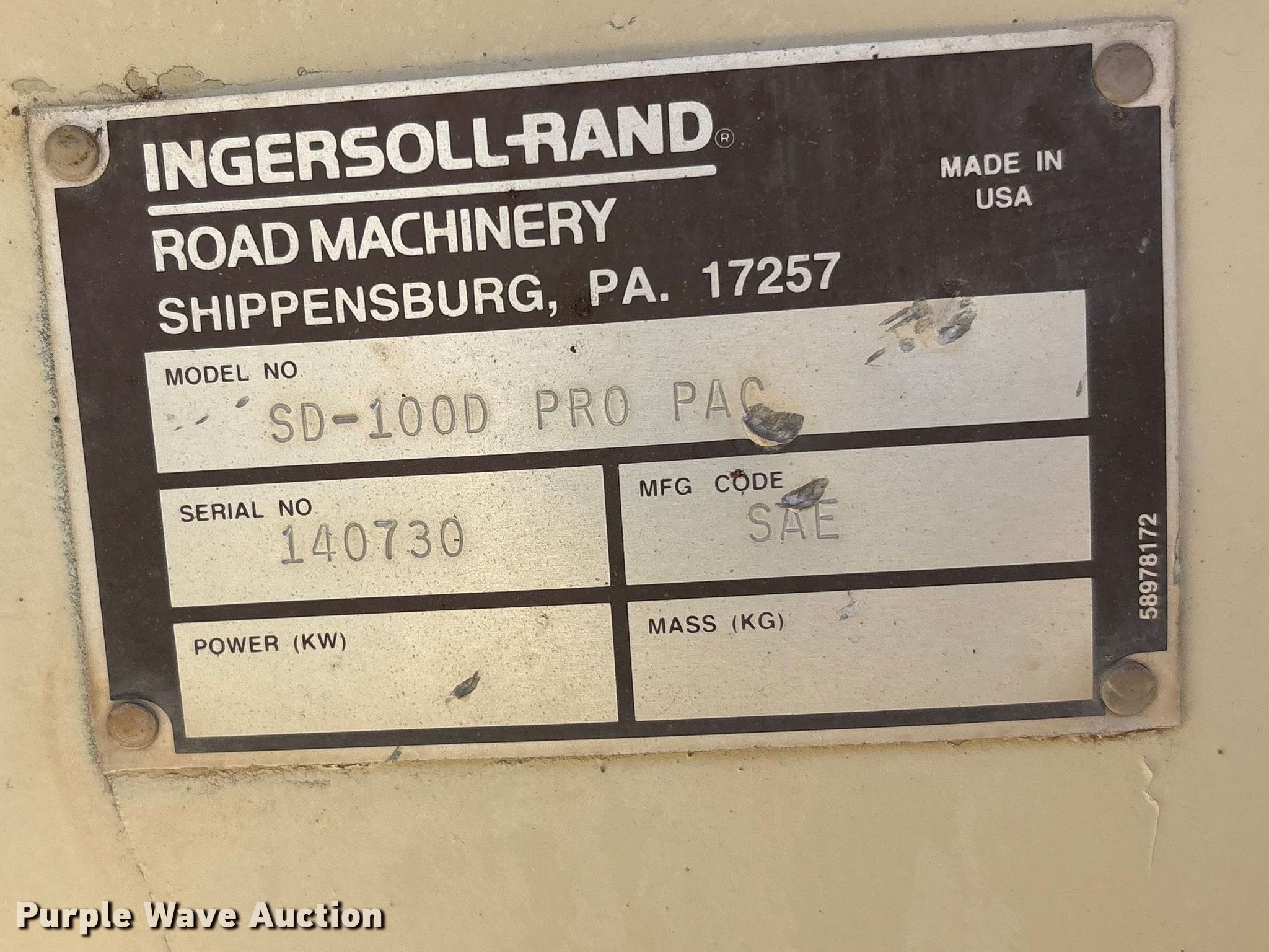Purple Wave is selling a used Single Drum Roller Compactor in New Mexico. This item is a 1995 Ingersoll-Rand SD-100D pro pac single drum vibratory roller with the following: Hours: 885 on meter, Serial: 140730