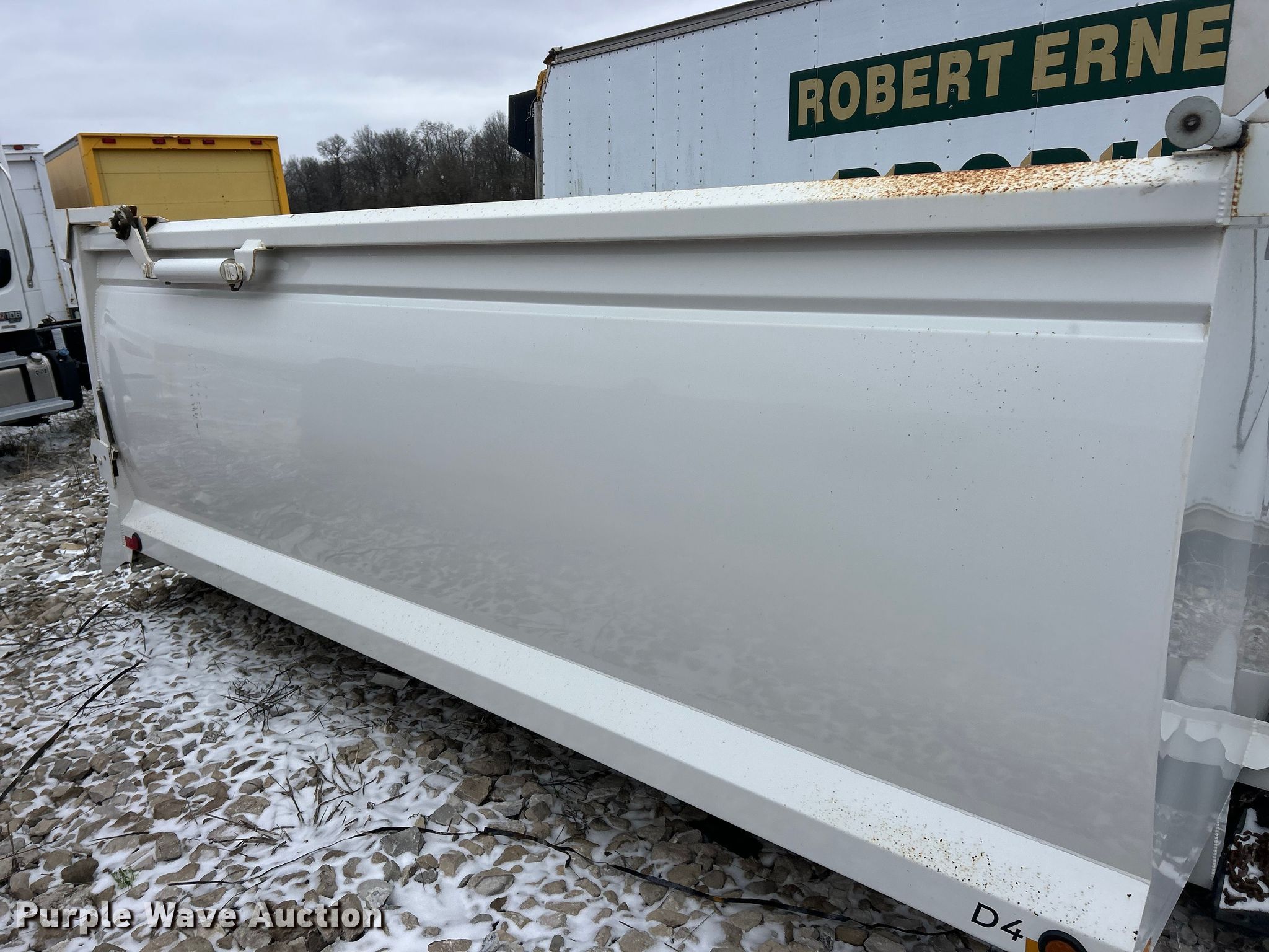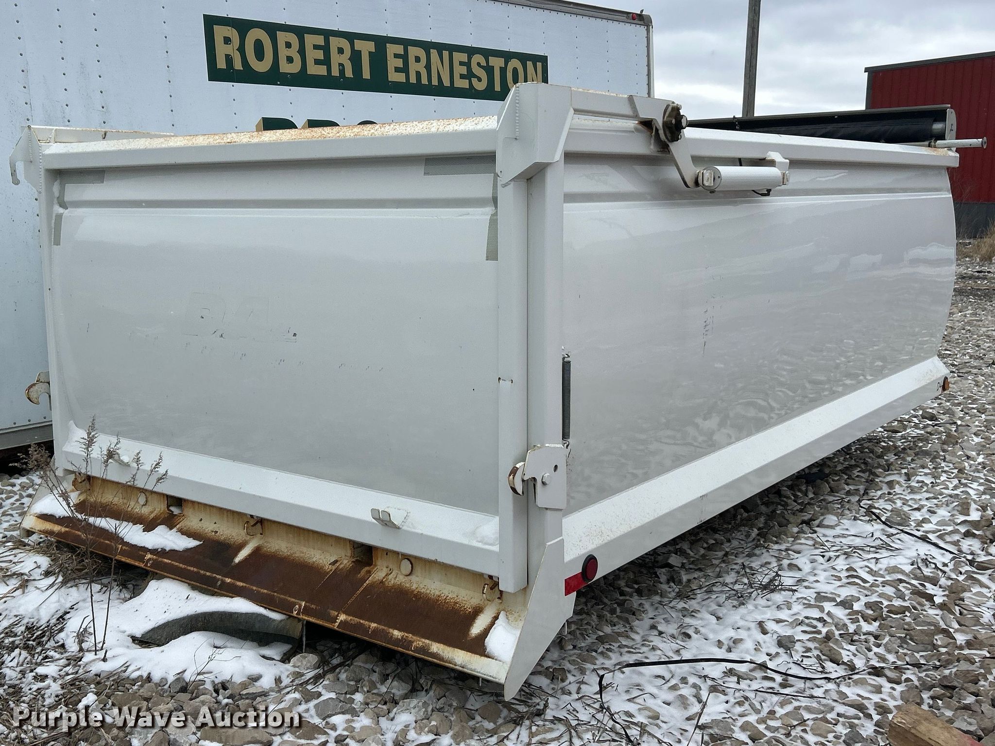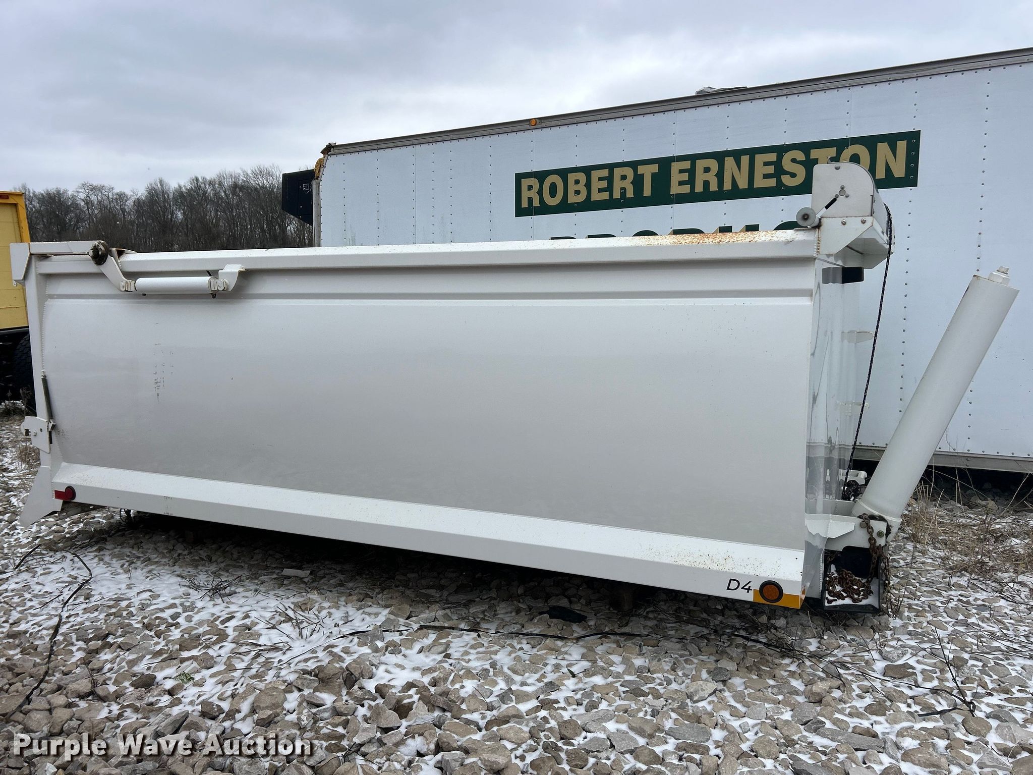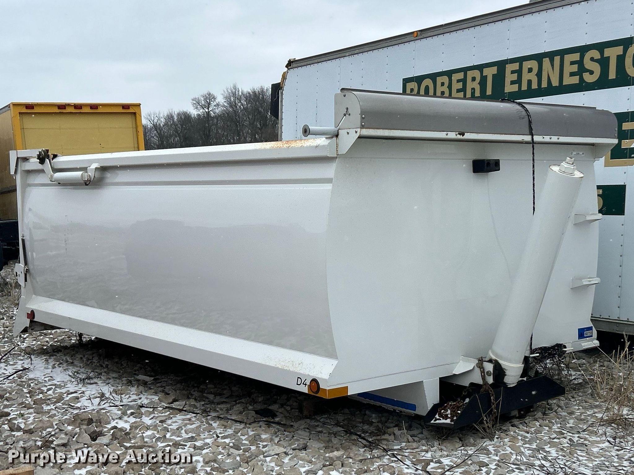 Purple Wave is selling a used Truck Part and Attach. in Illinois. This item is a Dump bed with the following: Bed, Dump bed, Length: 14', Width: 96", Side height: 55", Bed type: Steel, Barrel, Roll tarp, Ram: Single