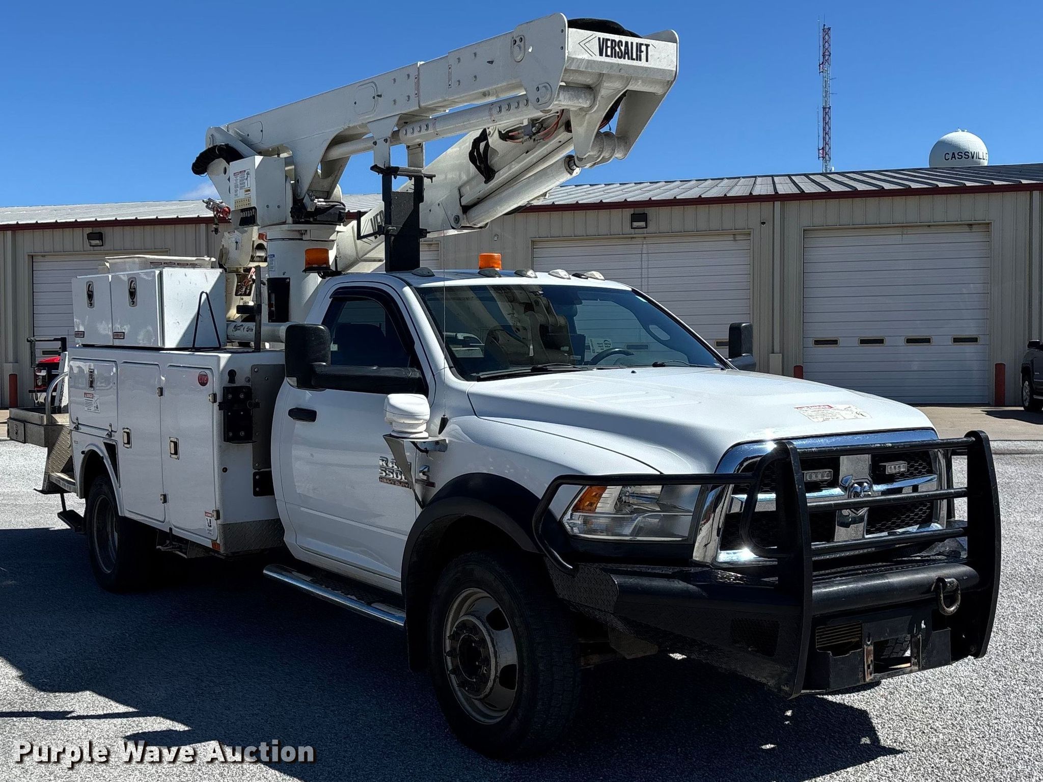 Purple Wave is selling a used Bucket Truck in Missouri. This item is a 2014 RAM 5500 bucket truck with the following: Miles: 123,031 on odometer, Hours: 9,501 on meter, VIN: 3C7WRNBL3EG211624