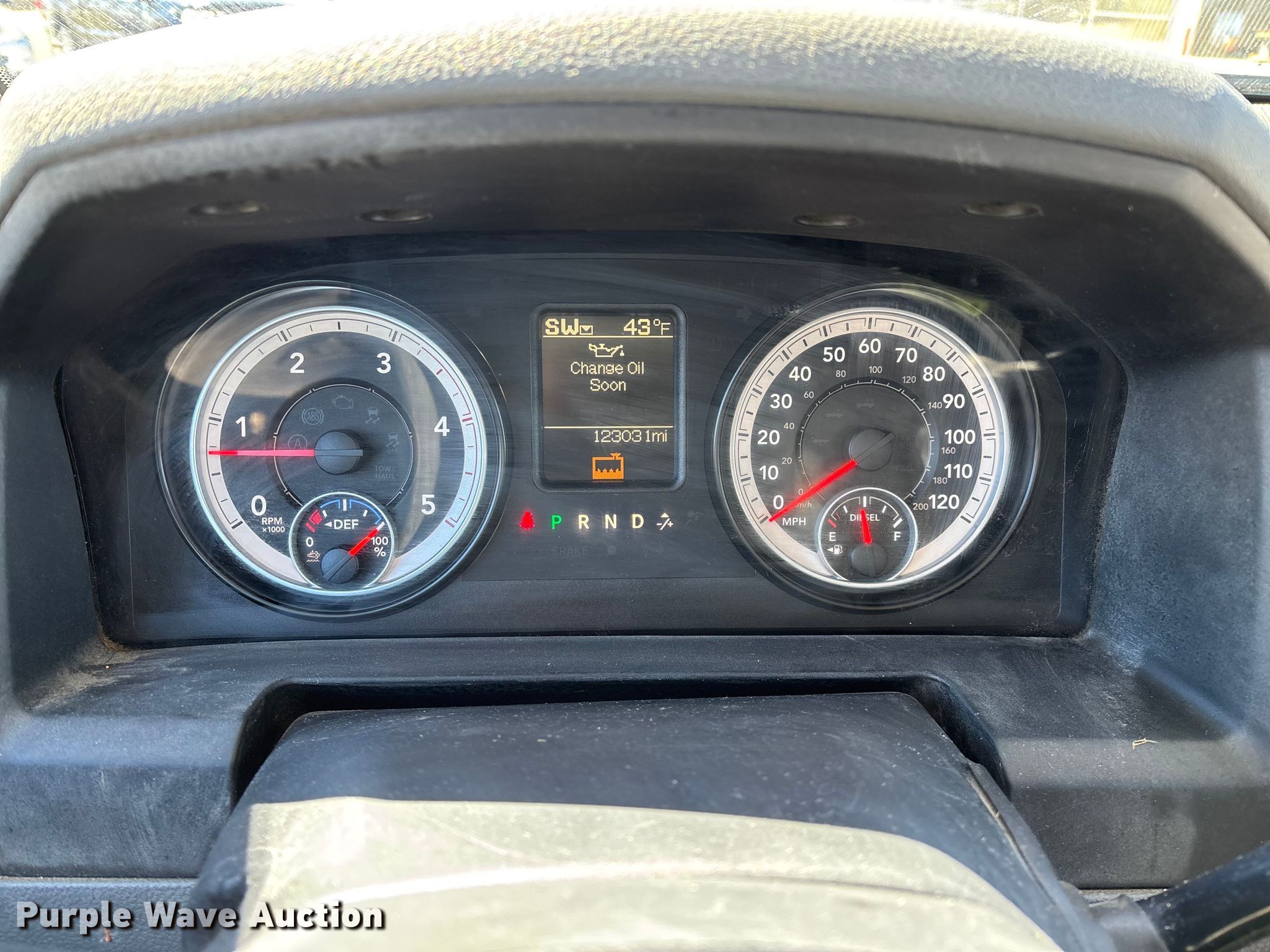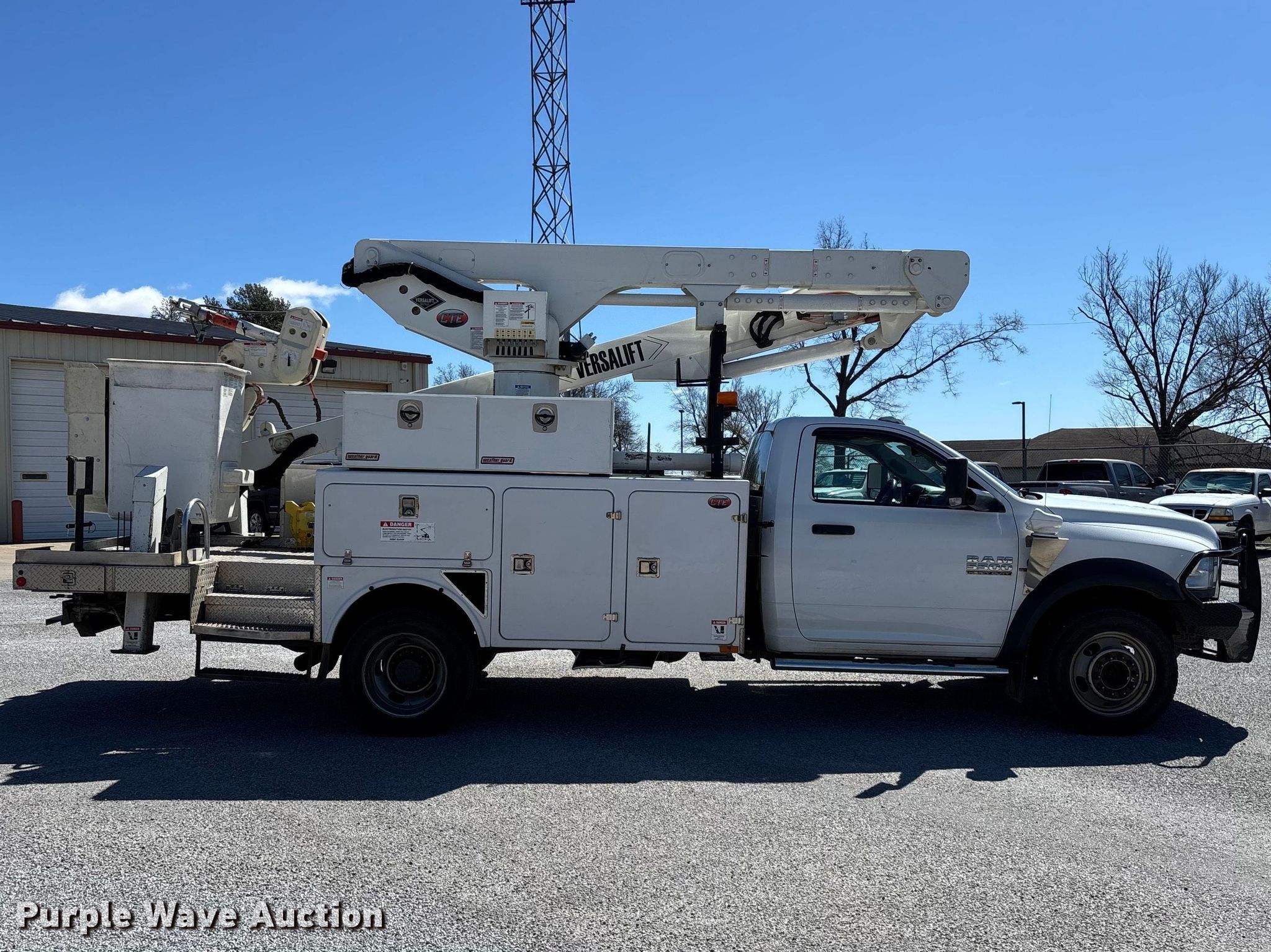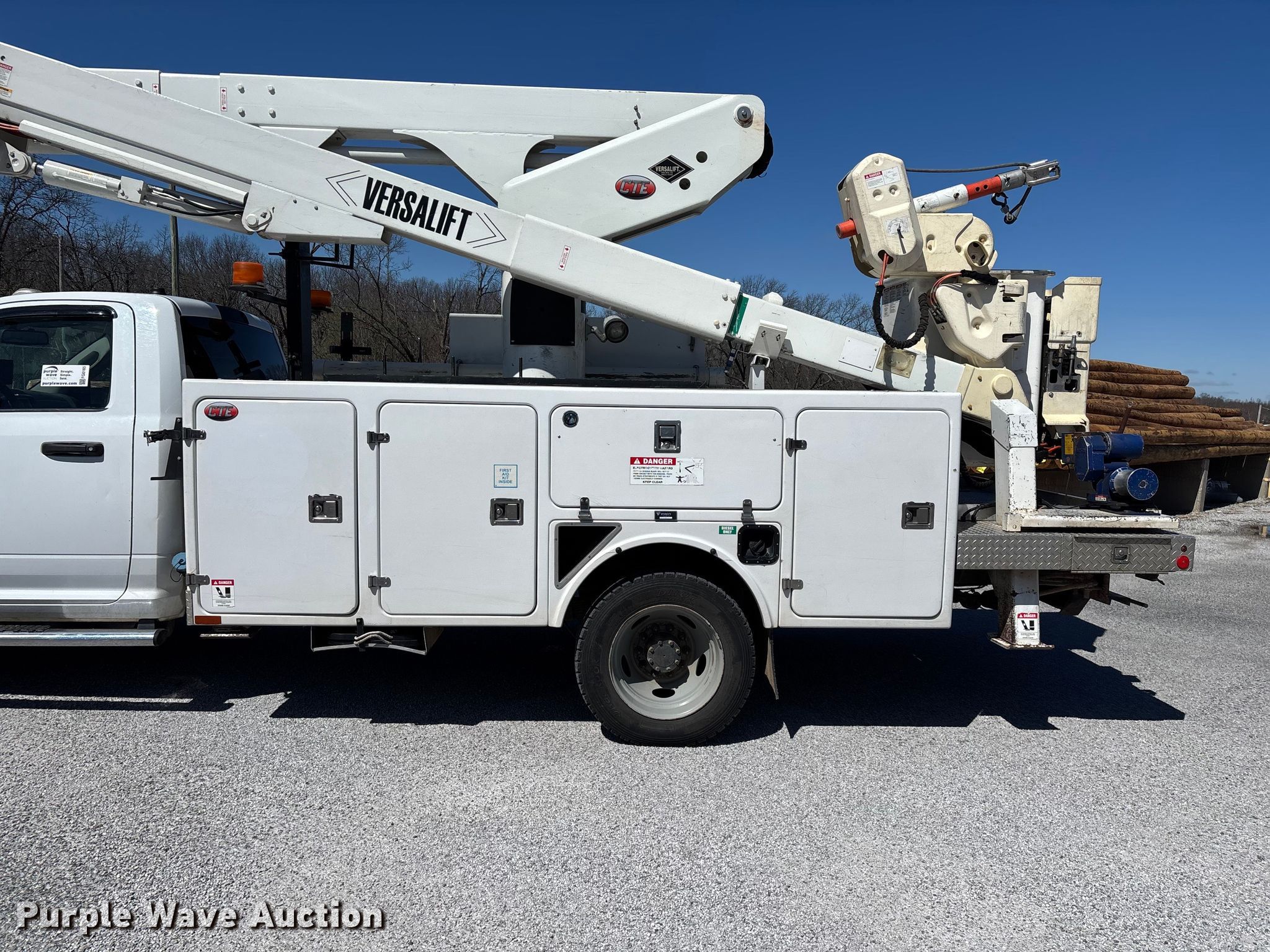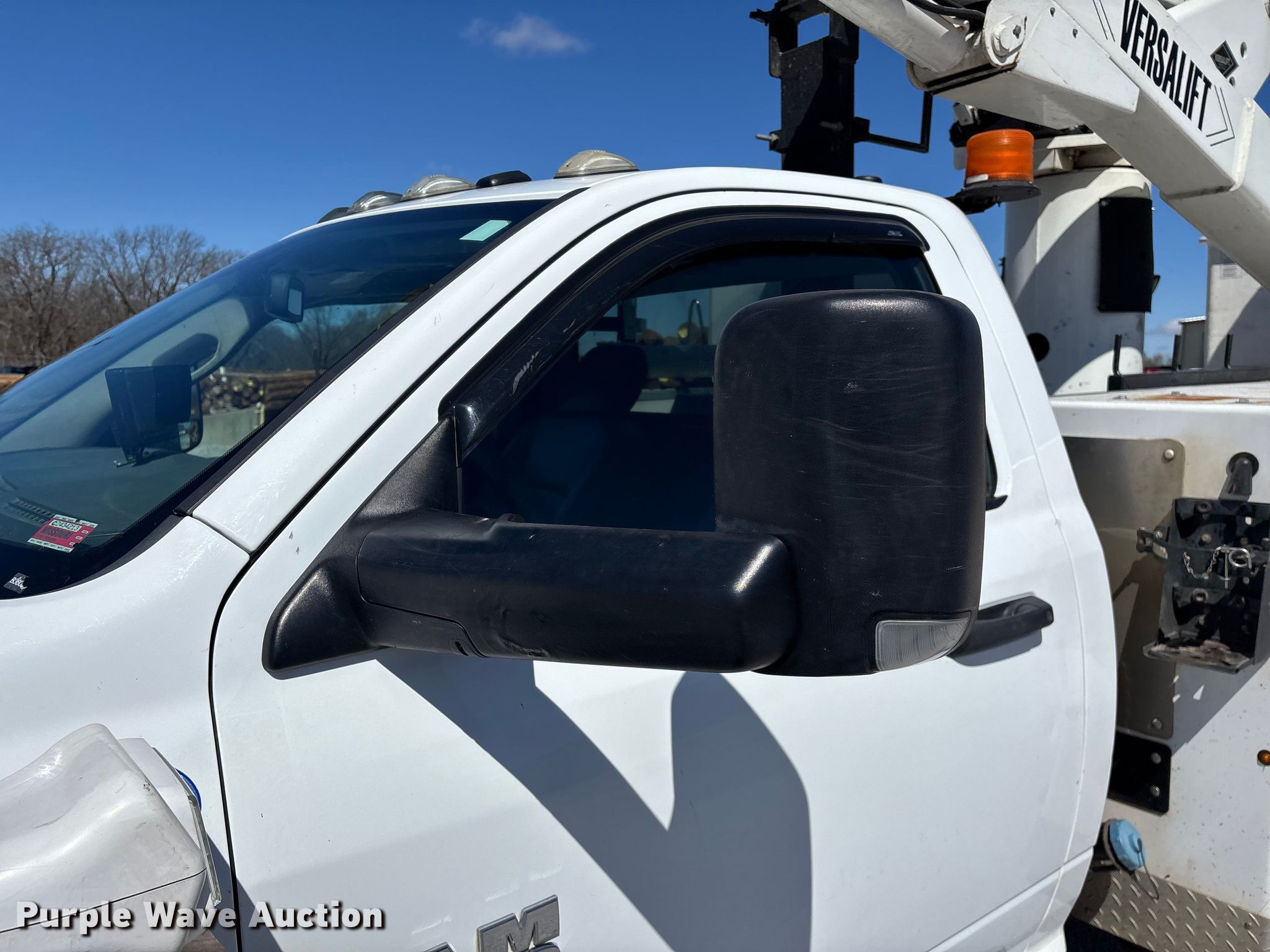2014 RAM 5500 bucket truck. Miles: 123,031 on odometer, Hours: 9,501 on meter, VIN: 3C7WRNBL3EG211624. Engine Cummins, Displacement: 6.7L, Cylinders: 6, Fuel type: Diesel. Transmission Automatic. Chassis Four wheel drive, Axles: Single, Suspension: Spring, Brakes: Hydraulic, PTO, GVWR: 19,500 lbs. Interior AC, Heat, Heated mirrors, Power windows, Power locks, Cruise control, Backup camera, Auxiliary controls, Brake controller. Features Bed Brand FX, Serial: 14 48883, Length: 11', Width: 97", Height: 60", Boom Versalift VST-47I, Serial: KX140018, Boom length: 16' 8", Maximum lift capacity: 500 lbs, Maximum lift height: 47', Boom type: Articulating, Insulated, Telescopic, Man basket, Boom controls Lower, Basket, Material handler. Tires Size: 225/70R19.5. Notes Dash warning indicator: Change oil soon, coolant low, Port hole in cab roof, Hydraulic leak, Capstan winch issues, possible electrical issue. Missouri title. Title distribution may be delayed up to 14 days from verification of funds. Barry Electric Cooperative. Cassville, MO 65625