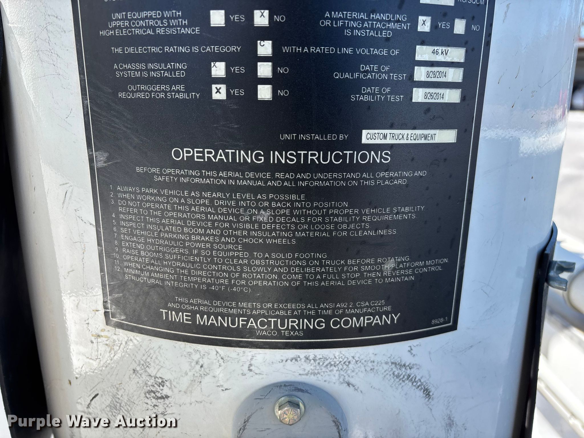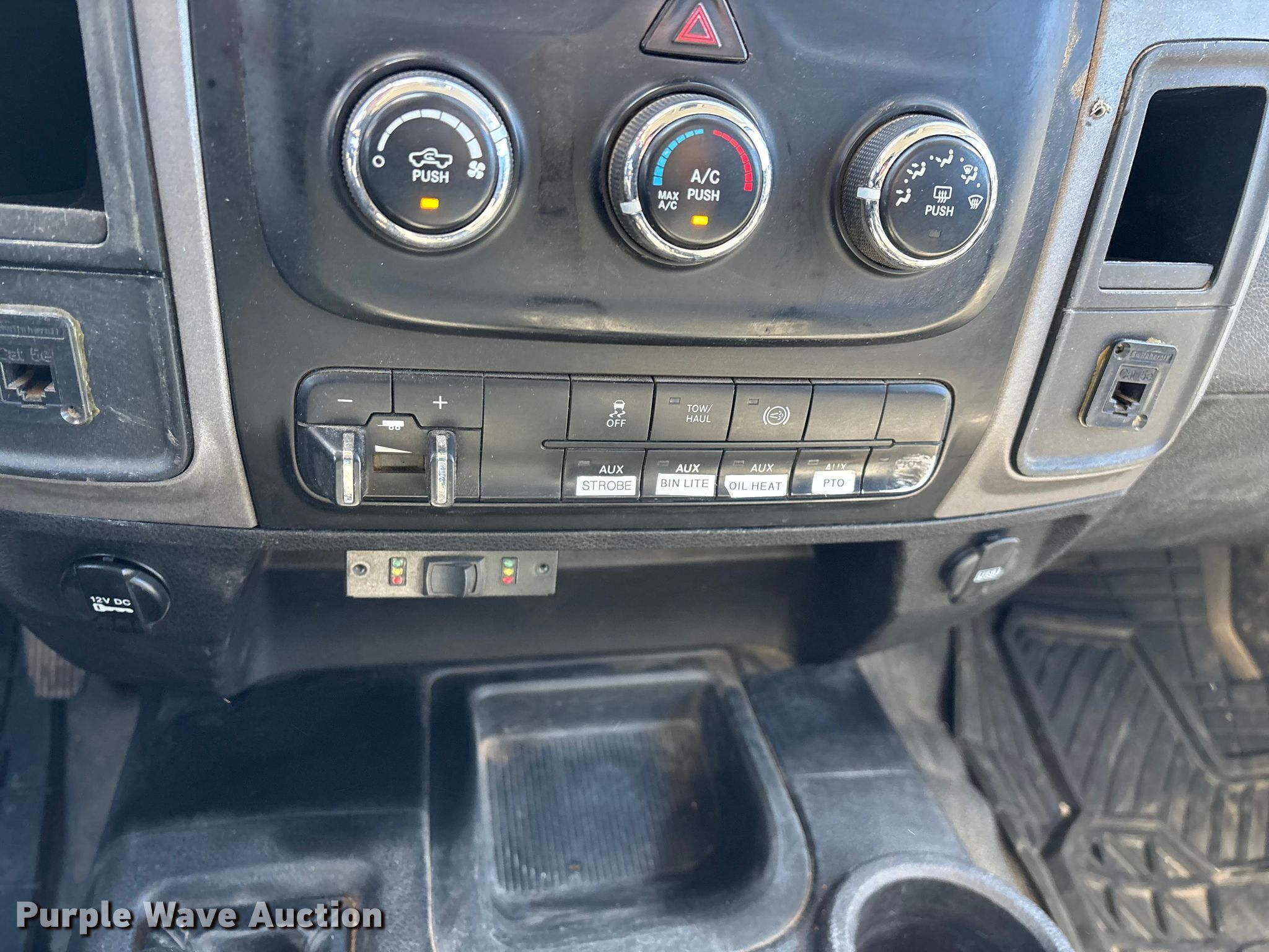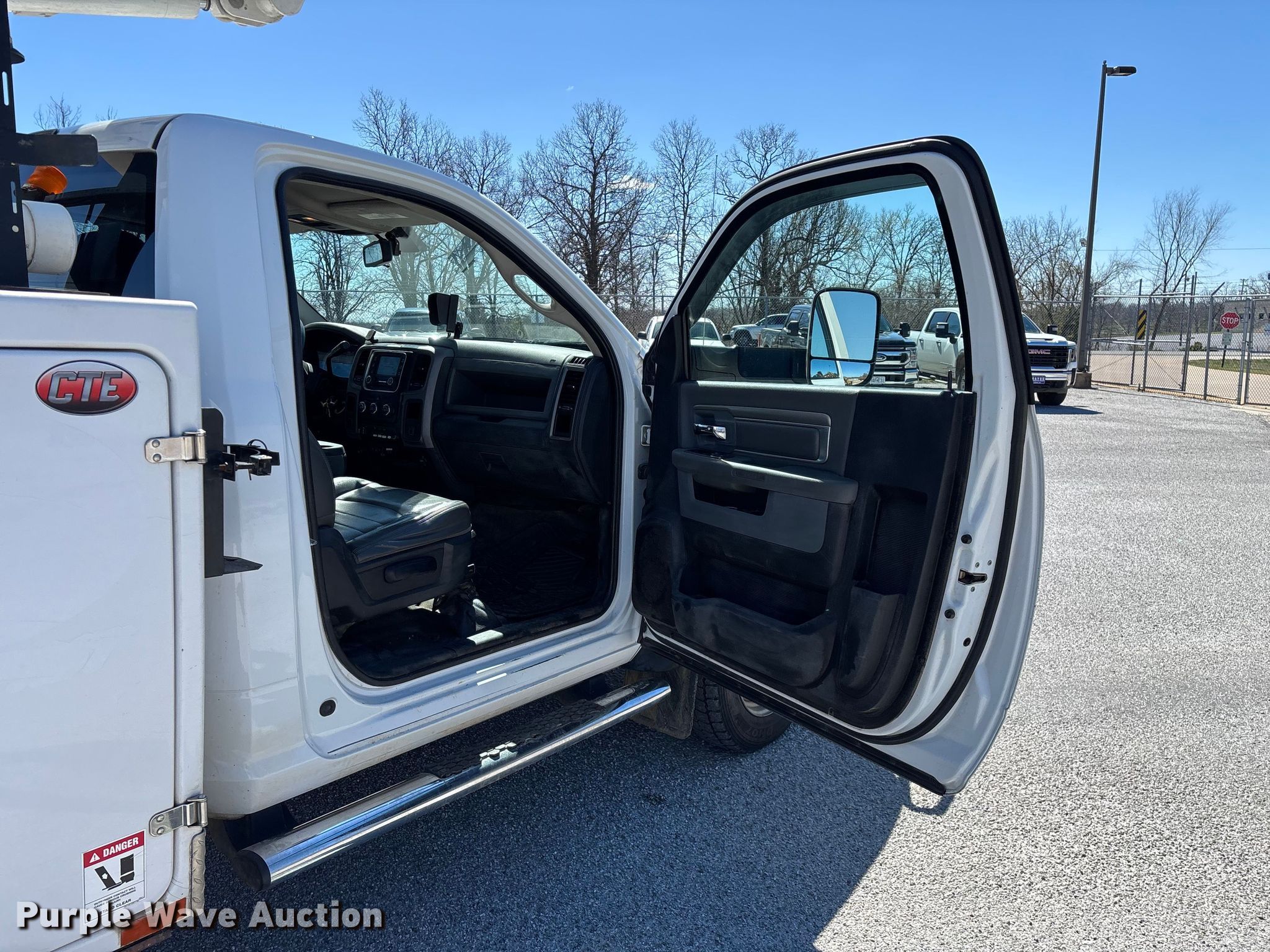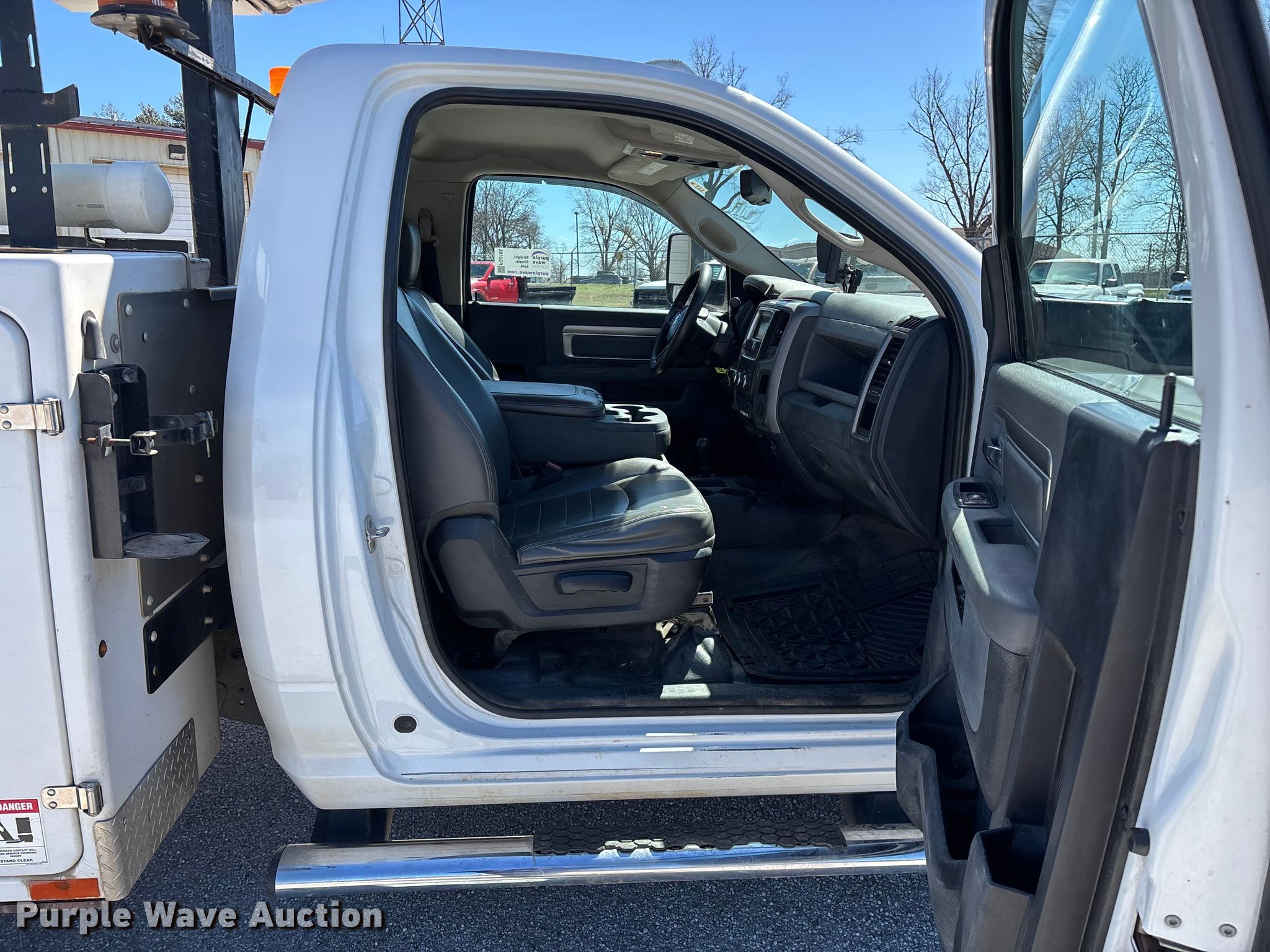 2014 RAM 5500 bucket truck. Miles: 123,031 on odometer, Hours: 9,501 on meter, VIN: 3C7WRNBL3EG211624. Engine Cummins, Displacement: 6.7L, Cylinders: 6, Fuel type: Diesel. Transmission Automatic. Chassis Four wheel drive, Axles: Single, Suspension: Spring, Brakes: Hydraulic, PTO, GVWR: 19,500 lbs. Interior AC, Heat, Heated mirrors, Power windows, Power locks, Cruise control, Backup camera, Auxiliary controls, Brake controller. Features Bed Brand FX, Serial: 14 48883, Length: 11', Width: 97", Height: 60", Boom Versalift VST-47I, Serial: KX140018, Boom length: 16' 8", Maximum lift capacity: 500 lbs, Maximum lift height: 47', Boom type: Articulating, Insulated, Telescopic, Man basket, Boom controls Lower, Basket, Material handler. Tires Size: 225/70R19.5. Notes Dash warning indicator: Change oil soon, coolant low, Port hole in cab roof, Hydraulic leak, Capstan winch issues, possible electrical issue. Missouri title. Title distribution may be delayed up to 14 days from verification of funds. Barry Electric Cooperative. Cassville, MO 65625