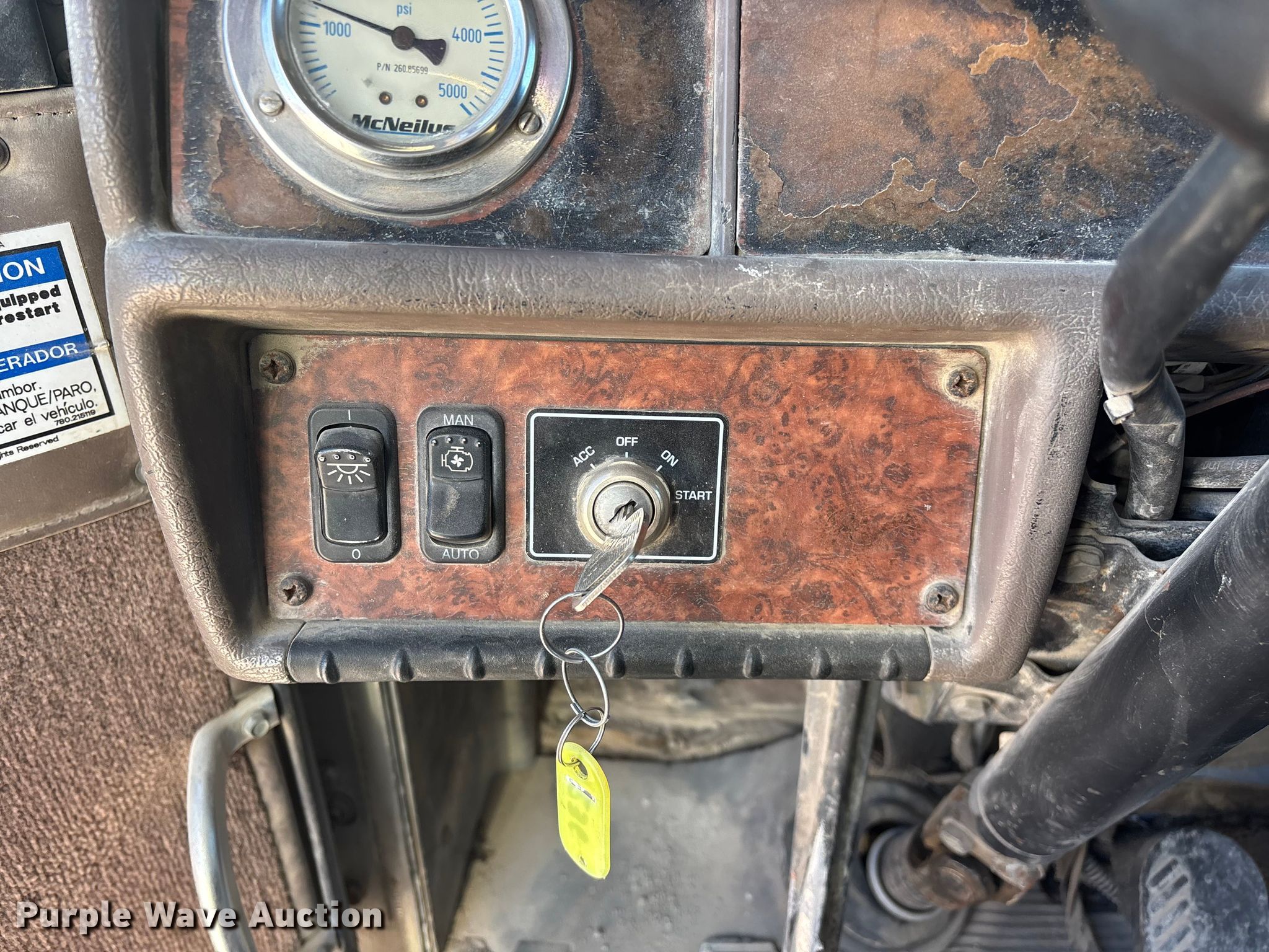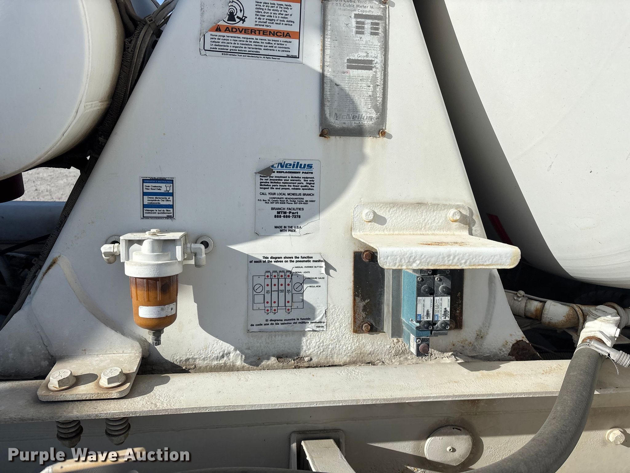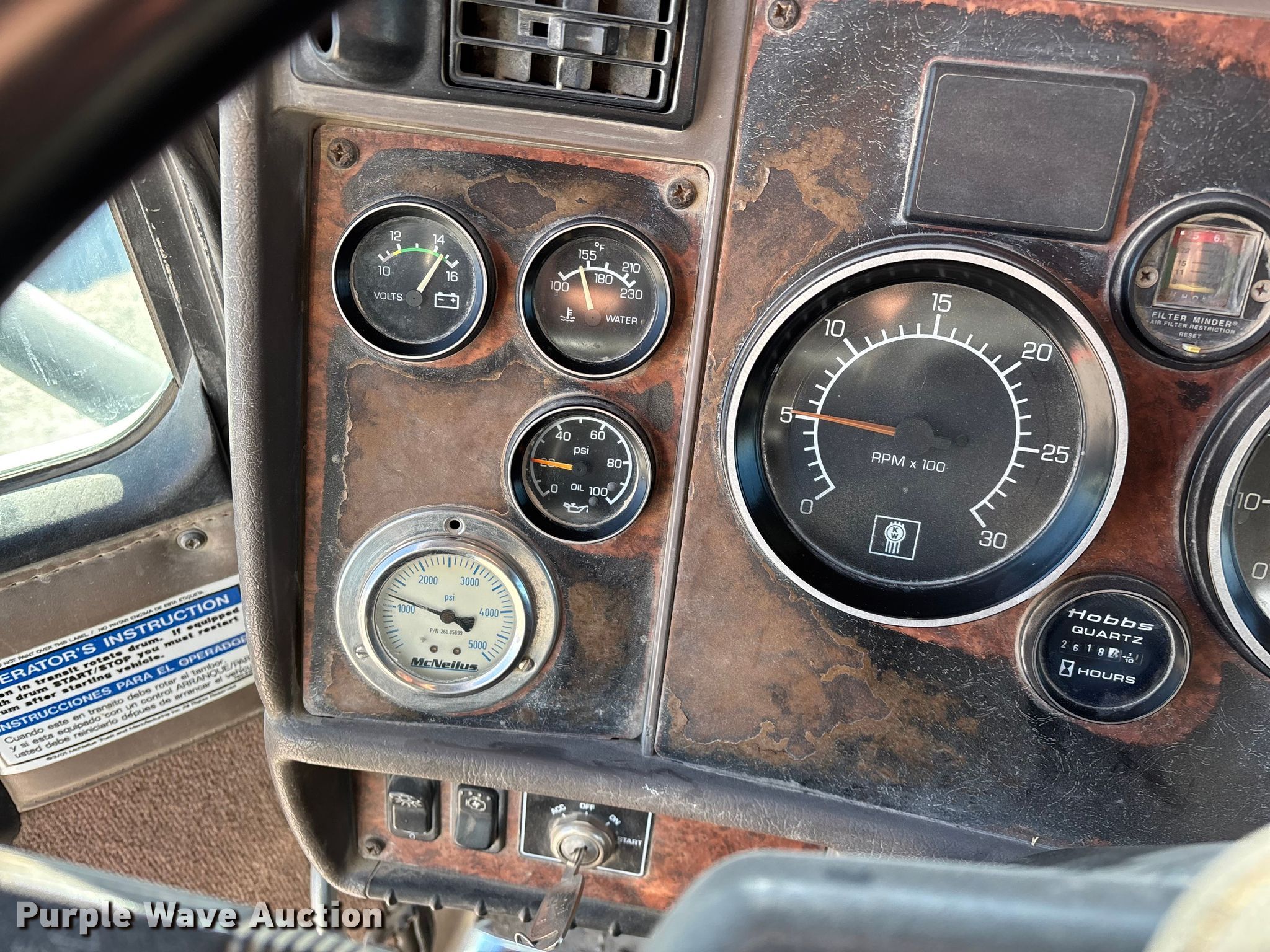 2004 Kenworth W900 ready mix truck. Miles: 341,328 on odometer, Hours: 2,618 on meter, VIN: 1NKWLT0X54J050827. Engine Caterpillar C10, Displacement: 10.3L, Cylinders: 6, Fuel type: Diesel. Transmission Eaton Fuller, Manual, Speed: 11. Chassis Axles: Triple, Tag axle Steerable, Differential lock: Full, Suspension: Spring over walking beam, Brakes: Air, PTO, GVWR: 68,000 lbs. Interior AC, Heat, Heated mirrors, Cruise control, Auxiliary controls. Features Mixer McNeilus, Serial: 66244-20879, Capacity: 10.5 cu.yd., Discharge: Rear, In-cab controls, Rear drum controls, Water tank capacity: 150 gallons, Chute Extensions: 2, Chute type: Steel.. Tires Front: 425/65R22.5, Rear: 11R22.5, Lift axle: 11R22.5. Notes Rear corner glass cracked. Kansas title. Title distribution may be delayed up to 14 days from verification of funds. O'Brien Ready Mix, Inc.. Frontenac, KS 66763