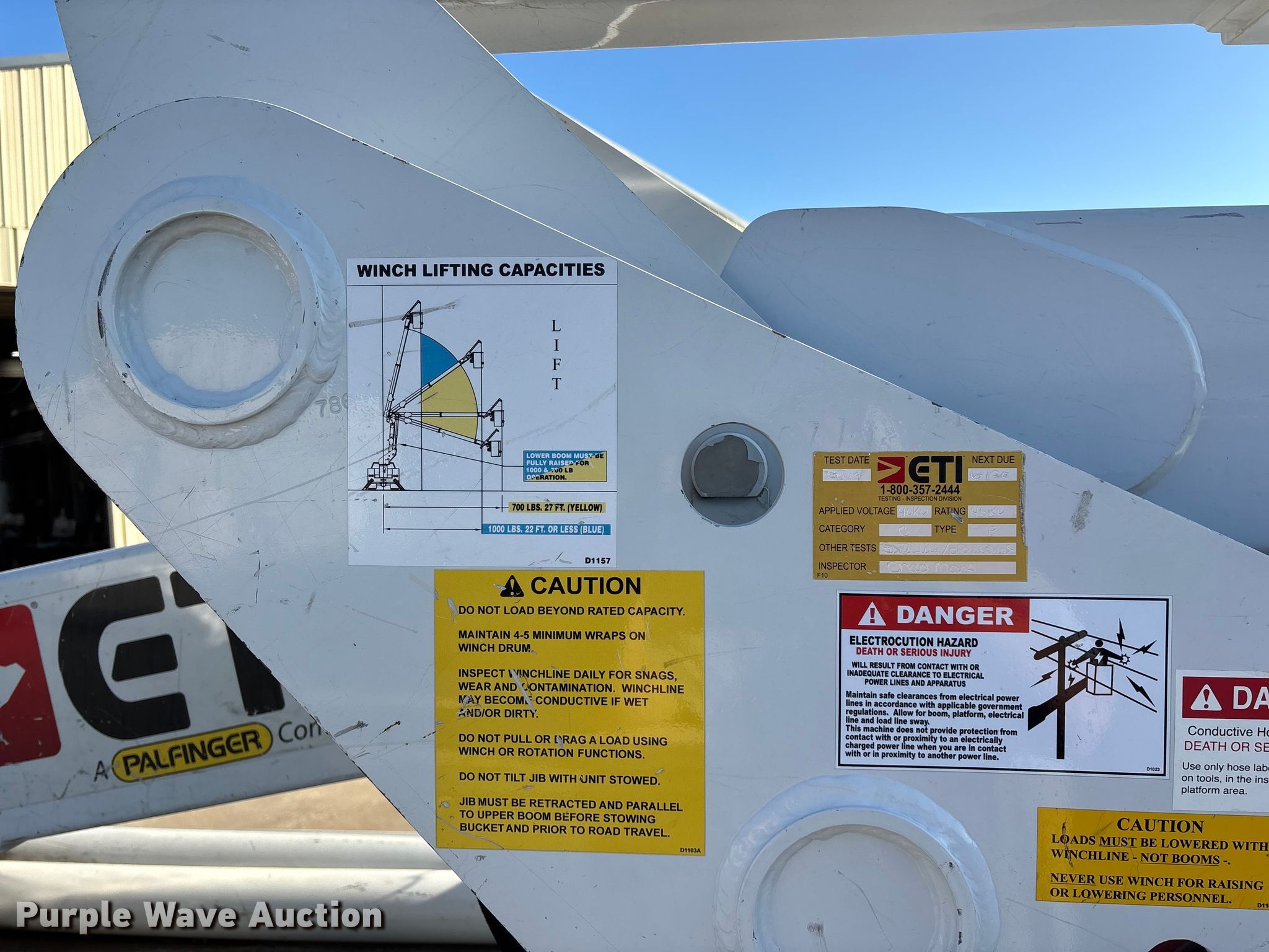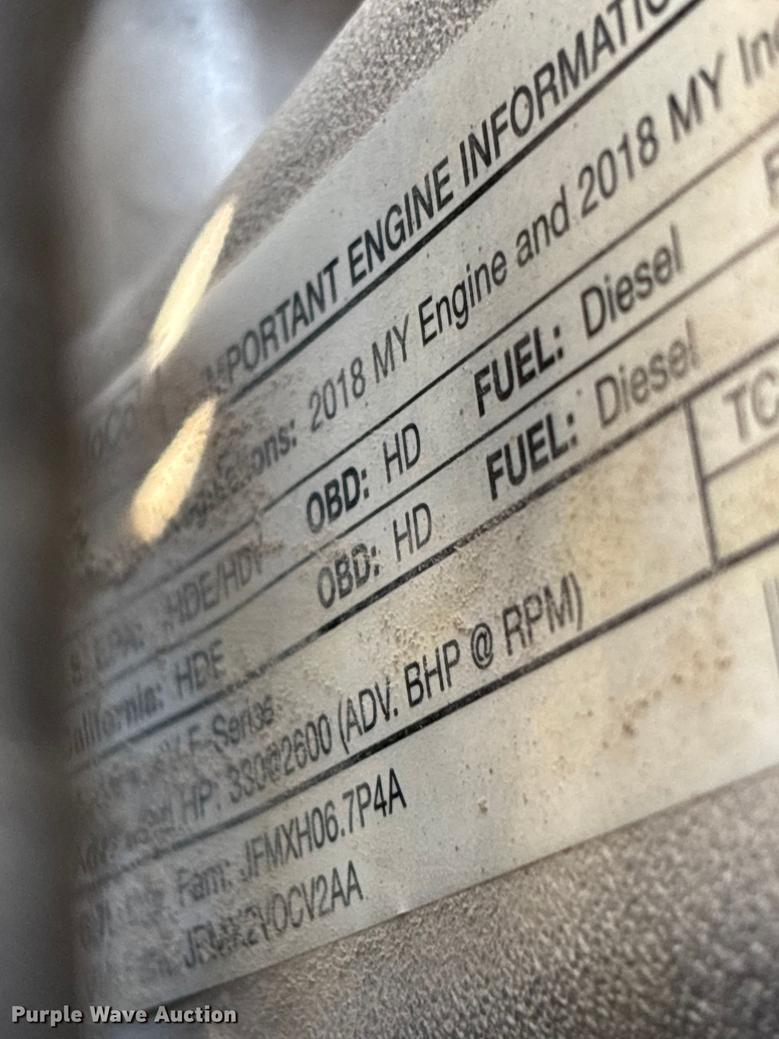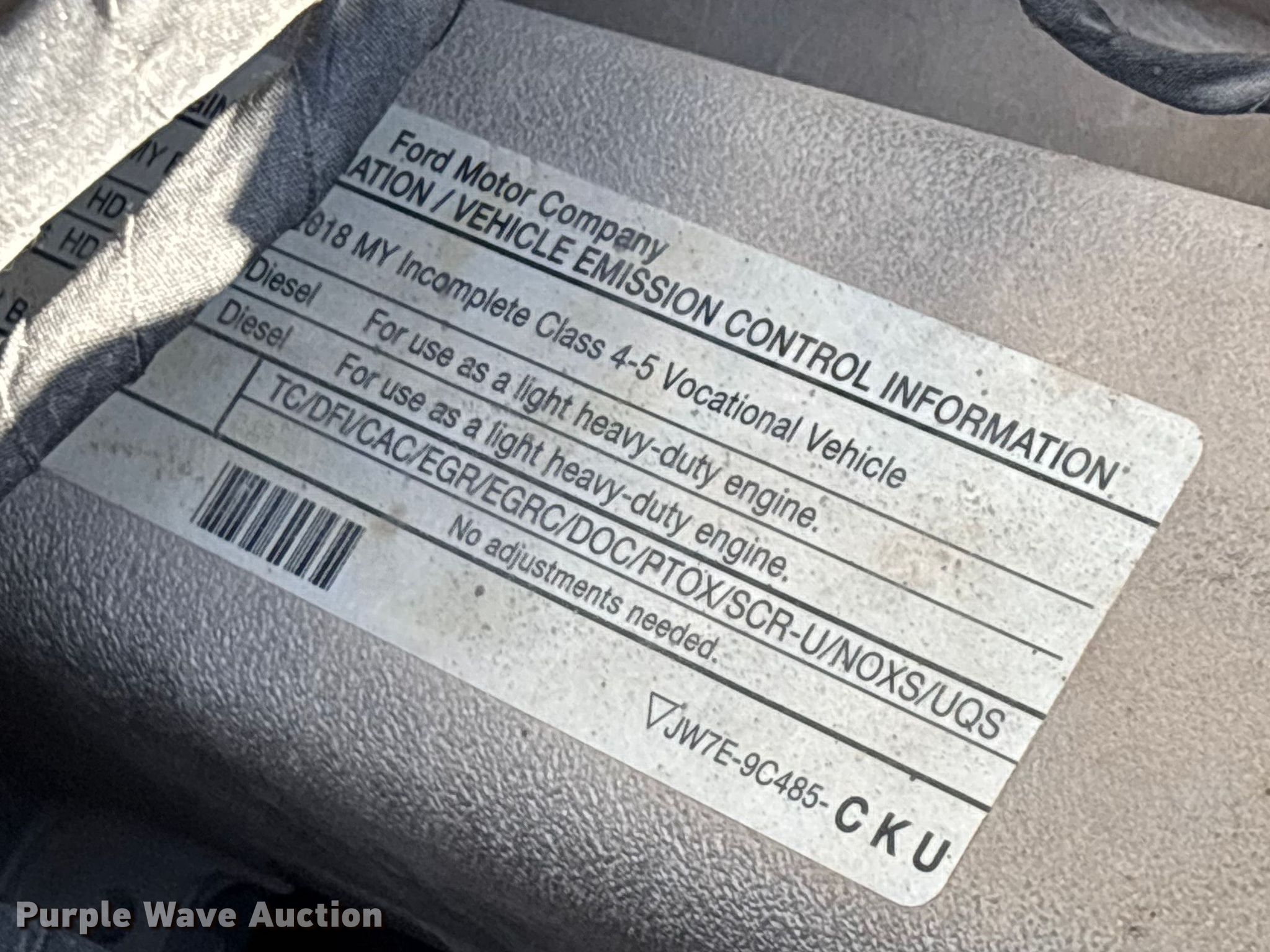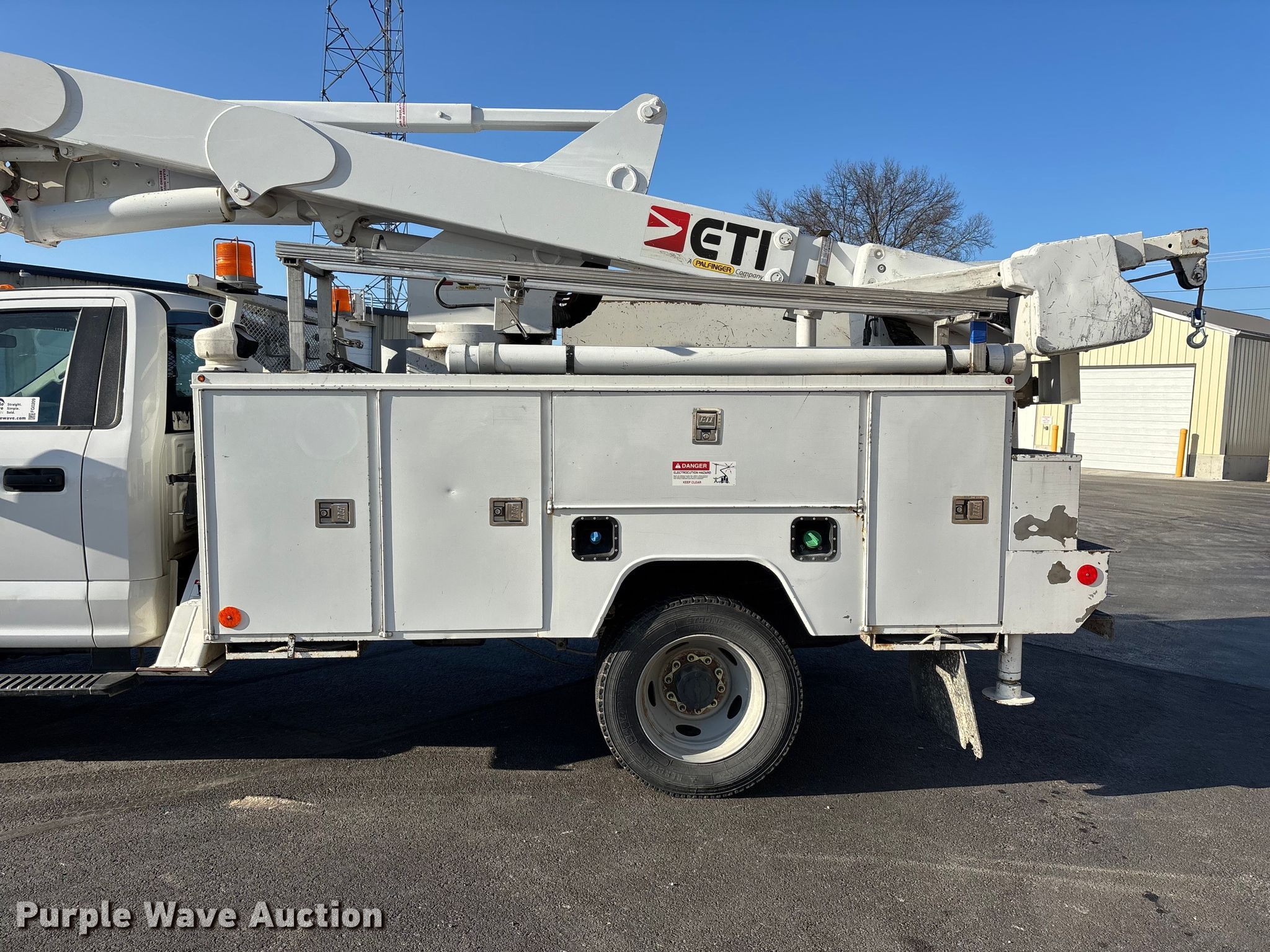 2018 Ford F550 Super Duty bucket truck. Miles: 126,078 on odometer, Hours: 8,652 on meter, VIN: 1FDUF5HT6JEC47843. Engine Displacement: 6.7L, Cylinders: 8, Fuel type: Diesel. Transmission Automatic. Chassis Four wheel drive, Axles: Single, Suspension: Spring, Brakes: Hydraulic, PTO, GVWR: 19,500 lbs, Wheelbase: 169". Interior AC, Heat, Heated mirrors, Power windows, Power locks, Cruise control, Backup camera, Auxiliary controls, Brake controller. Features Bed ETI SB122DD96B18Q, Serial: 14427, Length: 11' 9", Width: 96", Height: 60", Boom ETI ETCMH37IH, Serial: 0911CM78646, Boom length: 15' 4", Mast height: 37', Maximum lift capacity: 400 lbs, Boom type: Articulating, Insulated, Telescopic, Man basket, Boom controls Lower, Basket, Material handler. Tires Size: 245/70R19.5. Notes Dash warning indicator: Check engine, Jump start required during on-site data collection, Oil leak. Missouri title. Title distribution may be delayed up to 14 days from verification of funds. Southwest Electric Cooperative, Inc. Bolivar, MO 65613