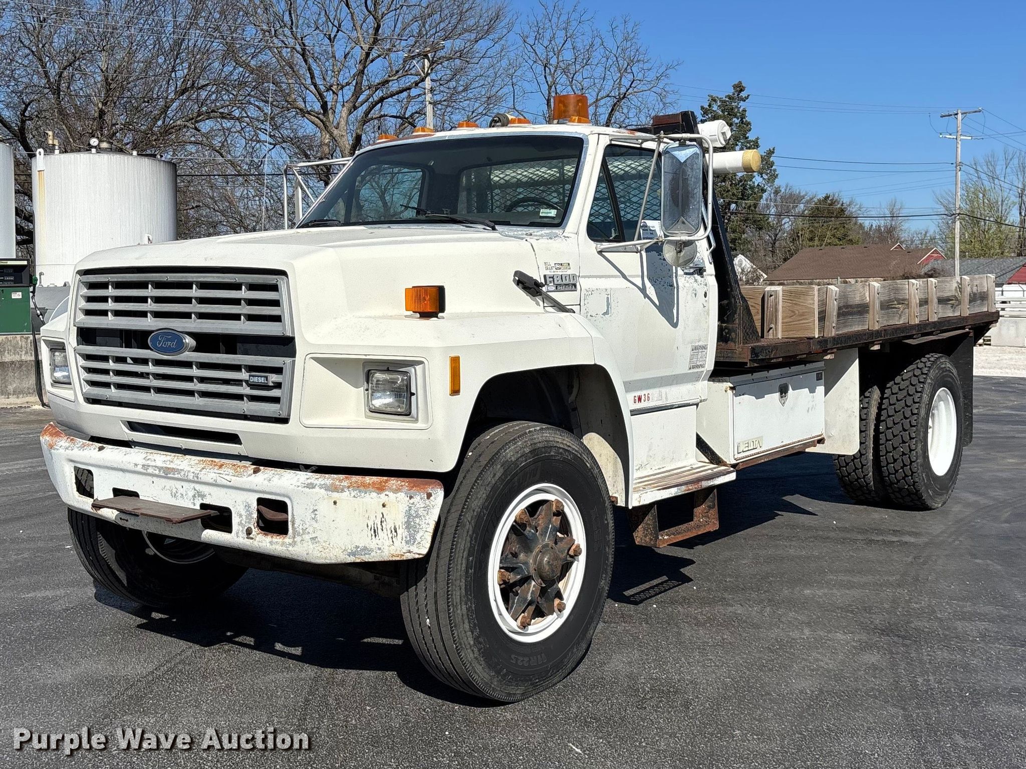 Purple Wave is selling a used Flat Bed Truck in Missouri. This item is a 1992 Ford F800 dump flatbed truck with the following: Miles: 123,112 on odometer, VIN: 1FDPK84A7NVA15725