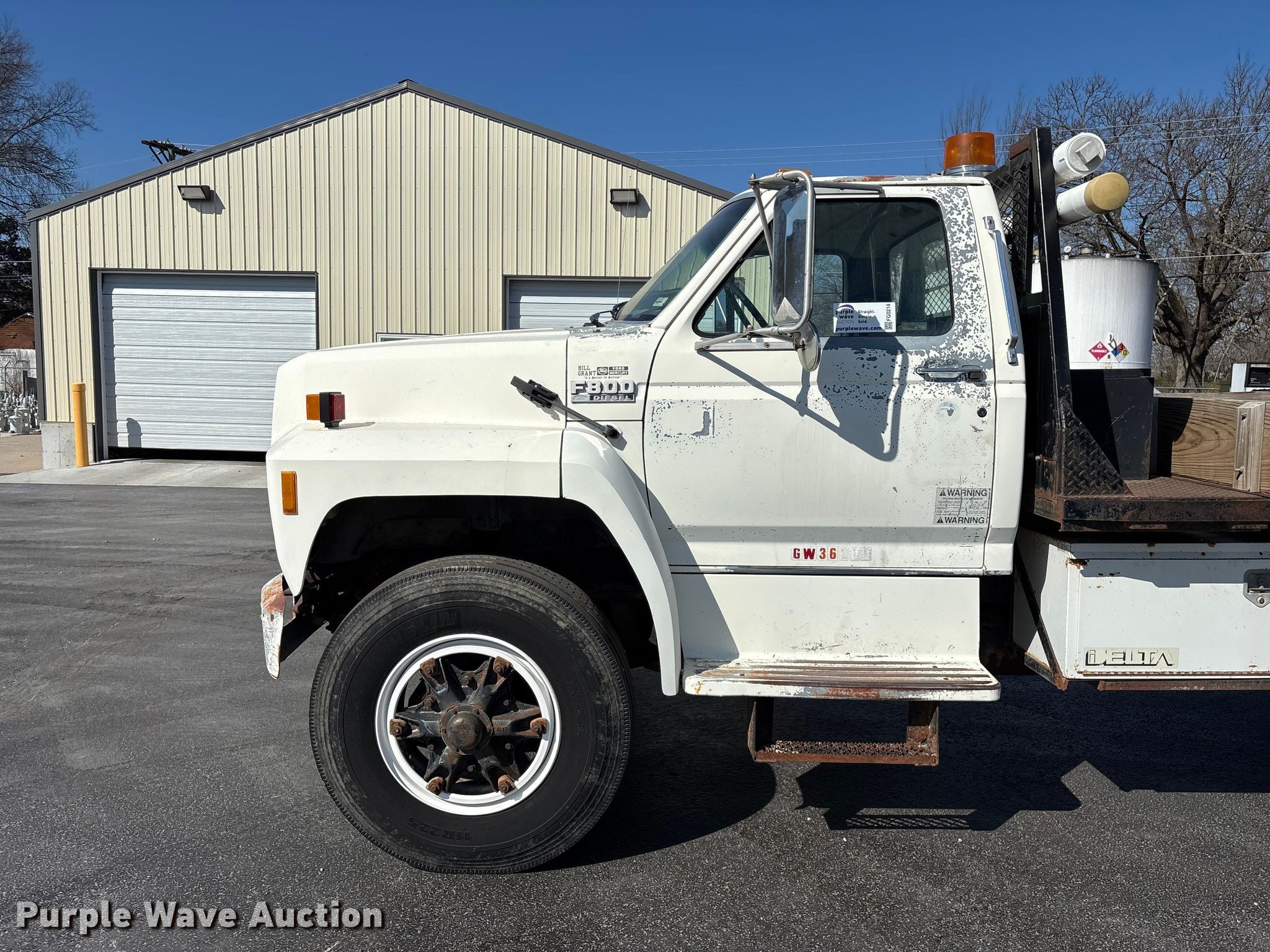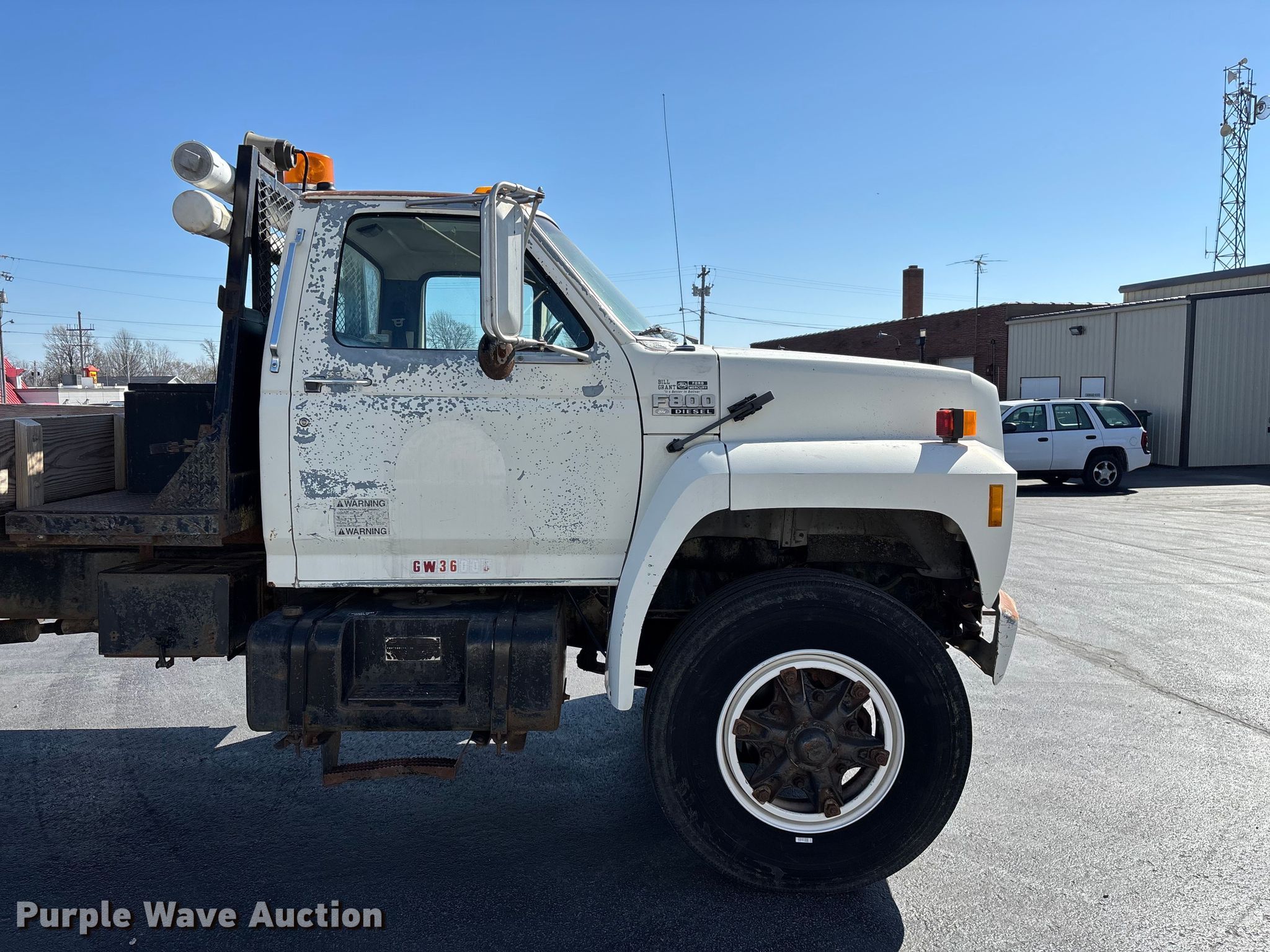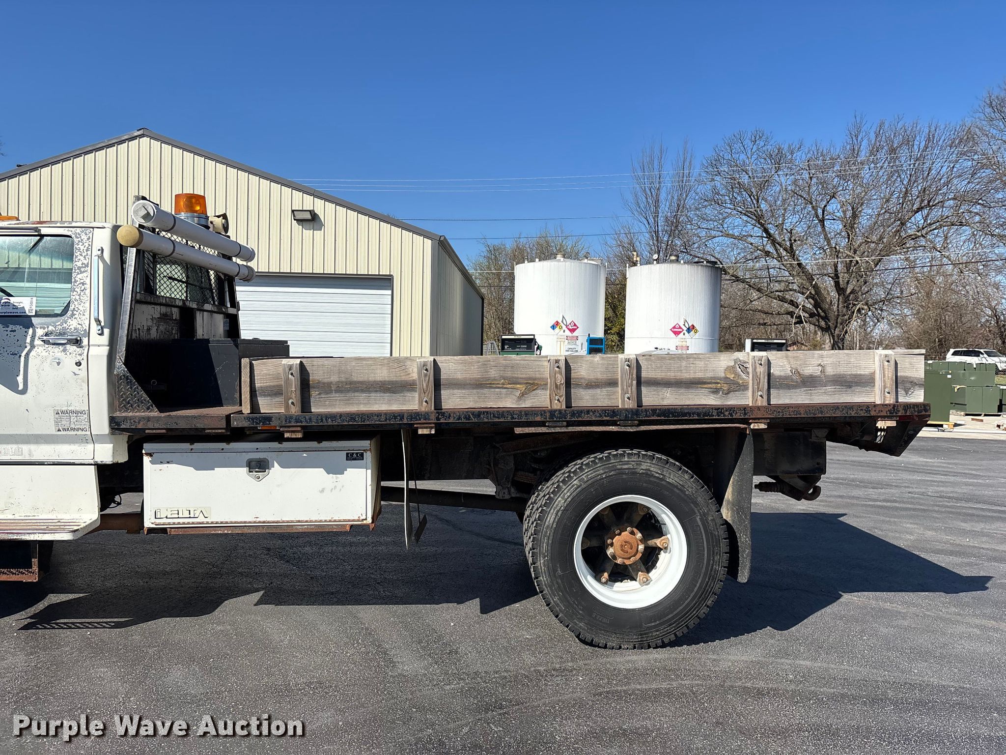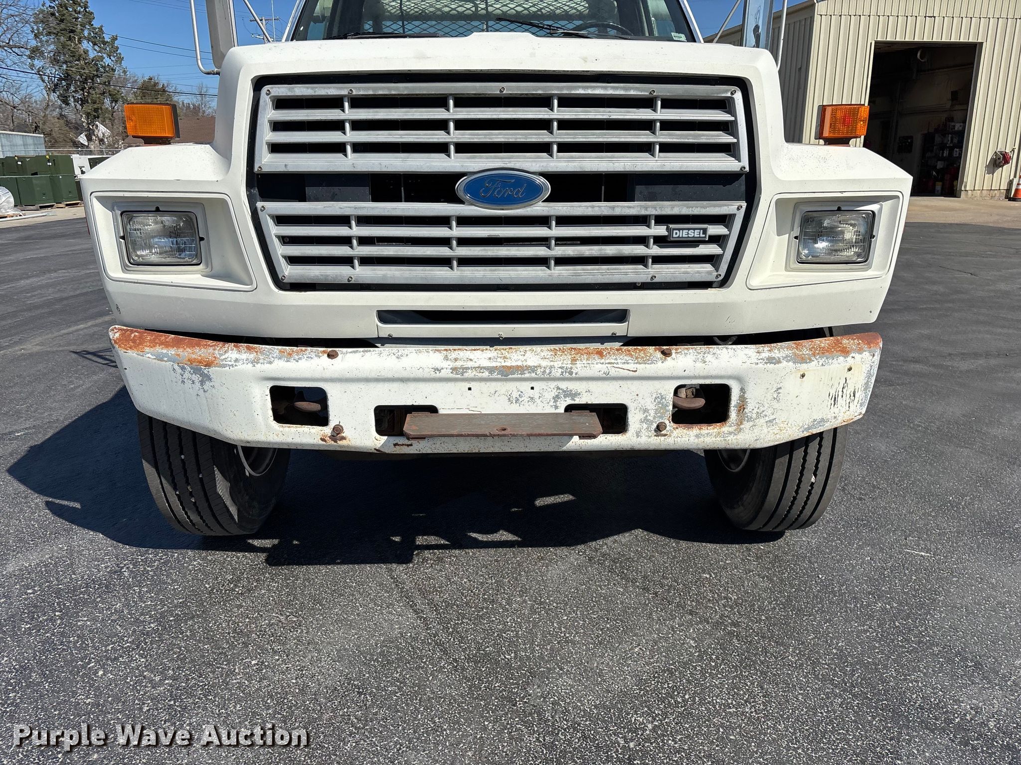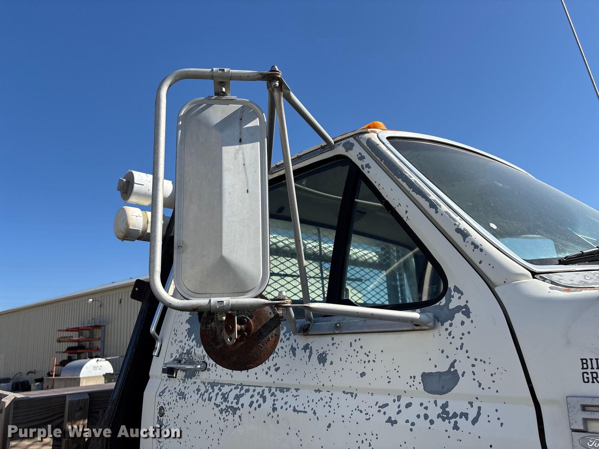 This 1992 Ford F800 dump flatbed truck will sell to the highest bidder regardless of price.