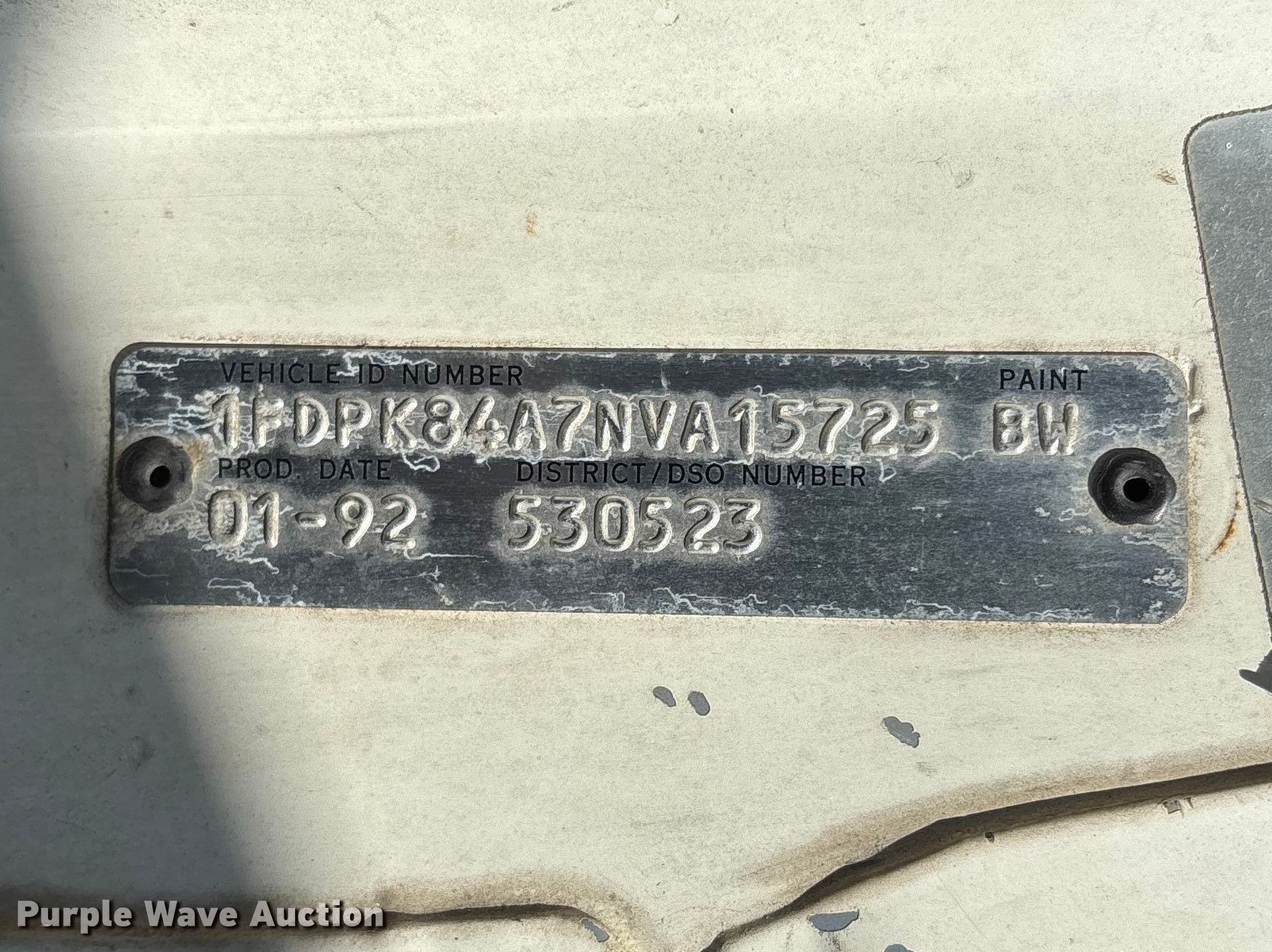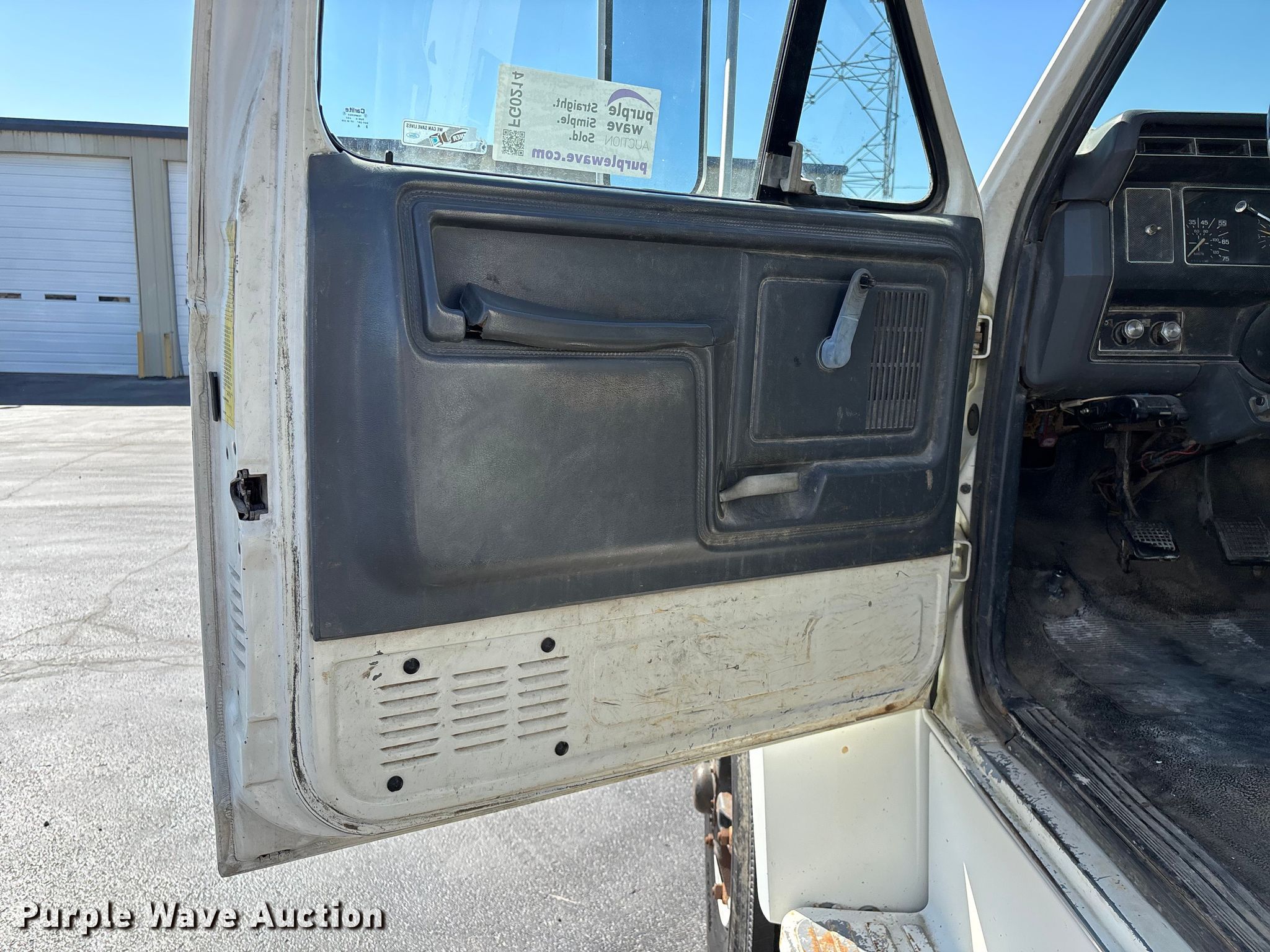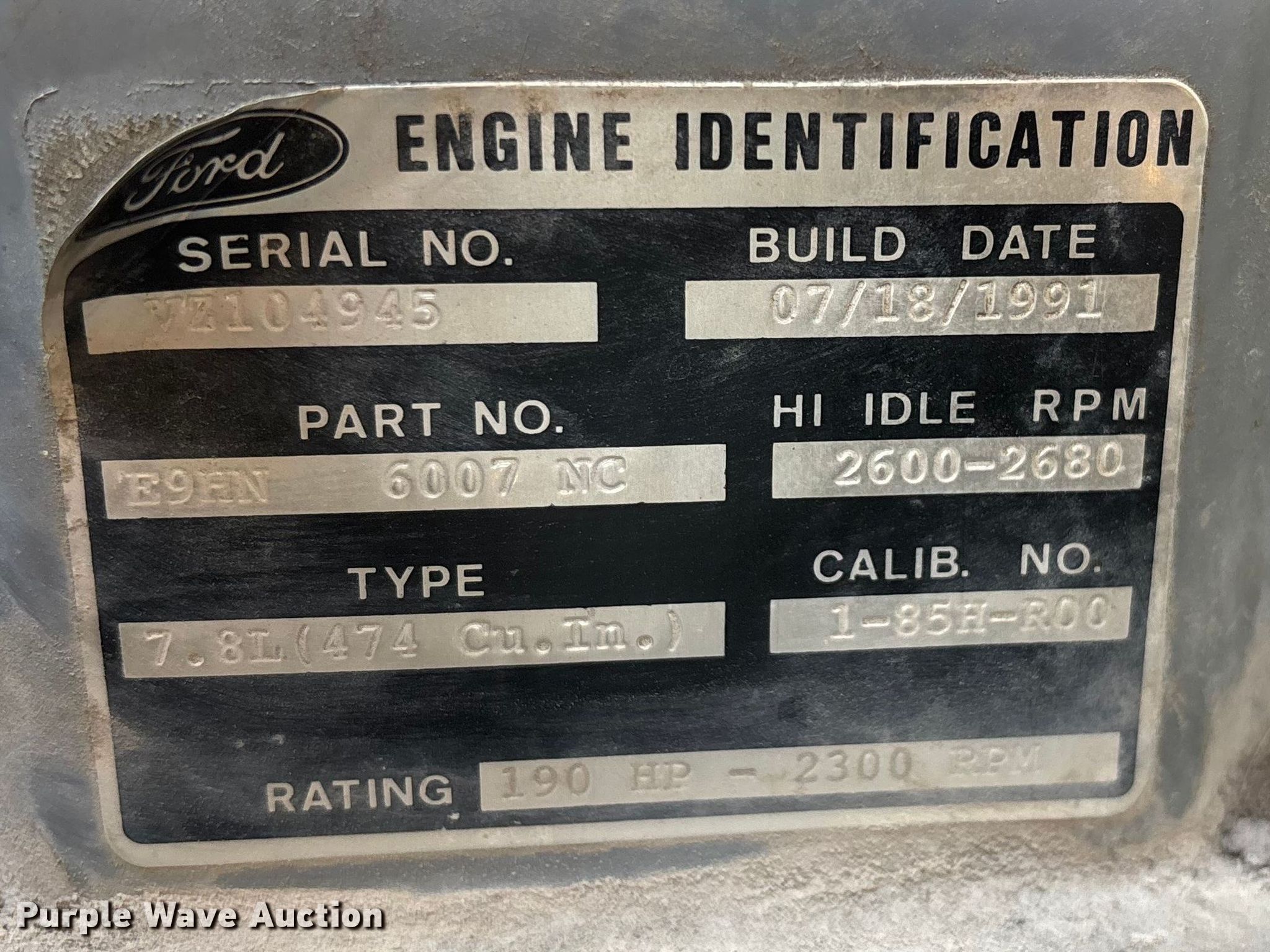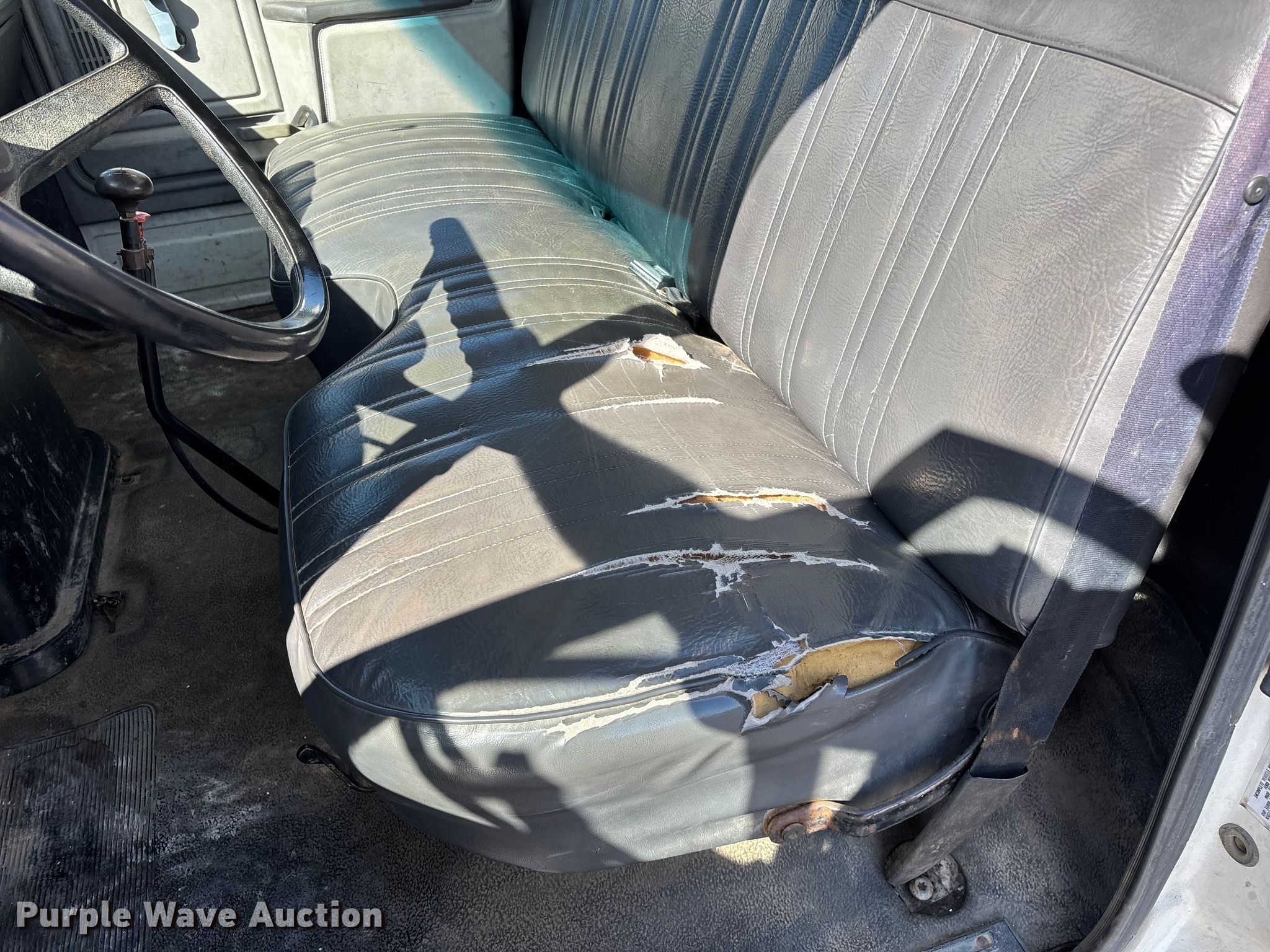 1992 Ford F800 dump flatbed truck. Miles: 123,112 on odometer, VIN: 1FDPK84A7NVA15725. Engine Ford 190, Serial: VZ104945, Displacement: 7.8L, Cylinders: 6, Fuel type: Diesel, HP: 190. Transmission Manual, Speed: 5, plus 2. Chassis Axles: Single, Suspension: Spring, Brakes: Hydraulic, PTO, GVWR: 31,000 lbs, Wheelbase: 178". Interior Heat, Brake controller. Features Bed Dump flatbed, Length: 14' 3", Width: 92", Ram: Single. Tires Size: 11R22.5. Notes Windshield chipped or cracked, Dump bed cylinder leaks, Non-operational dump bed. Missouri title. Title distribution may be delayed up to 14 days from verification of funds. Southwest Electric Cooperative, Inc. Bolivar, MO 65613