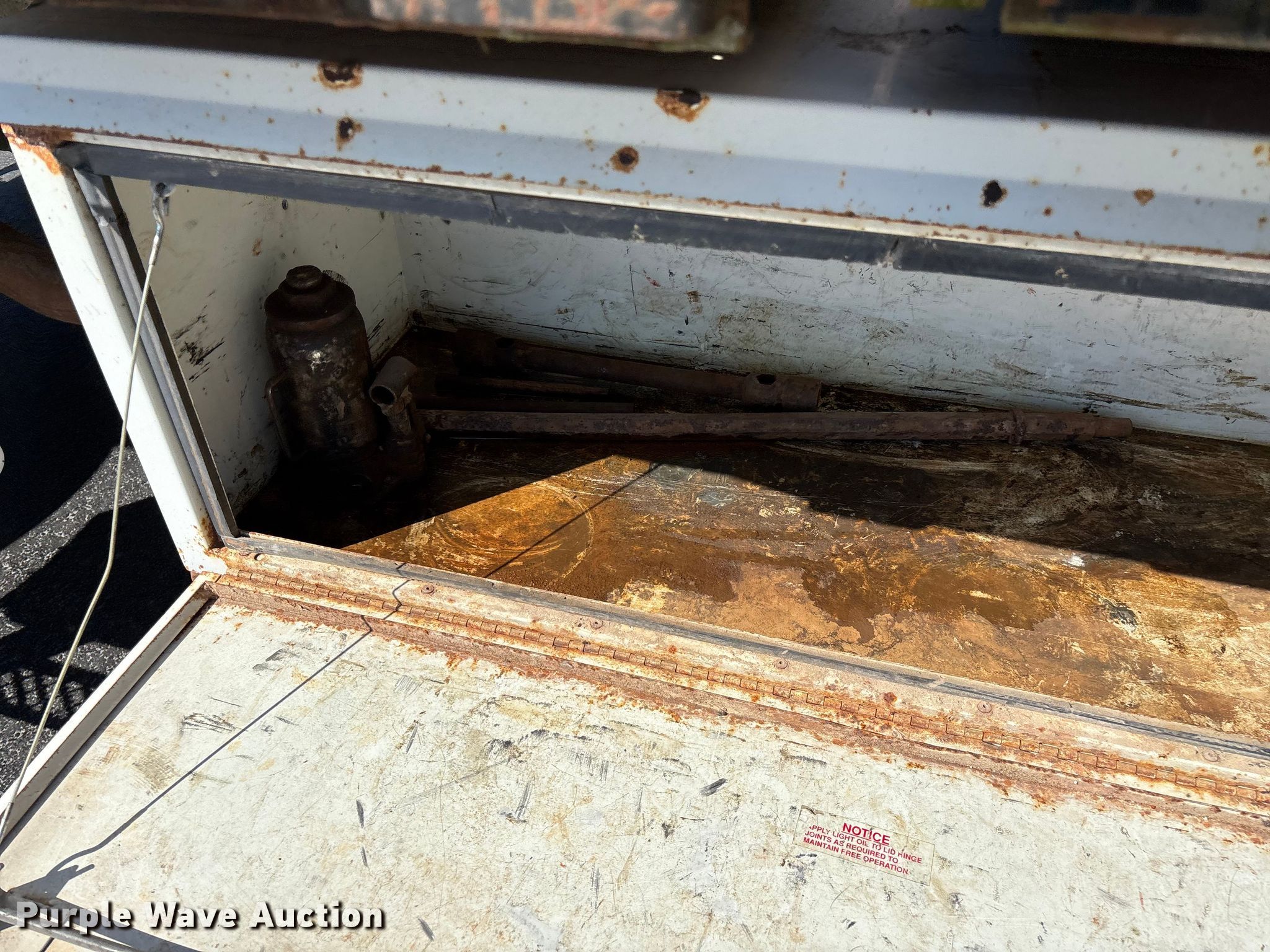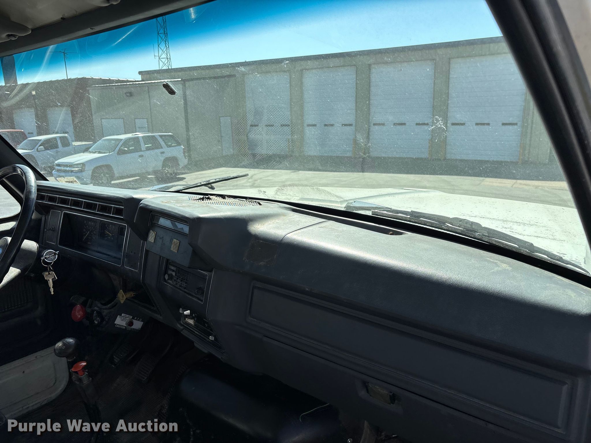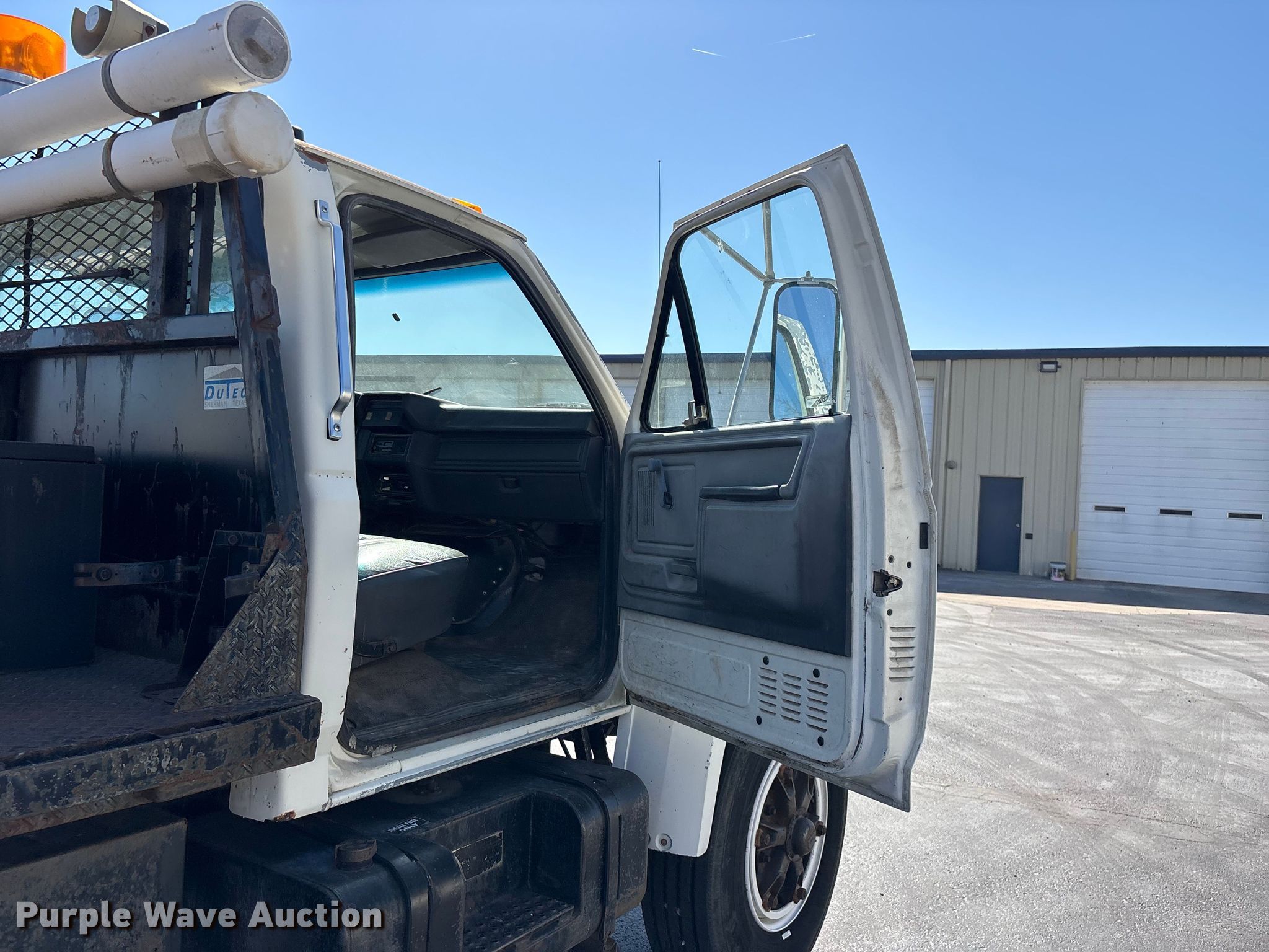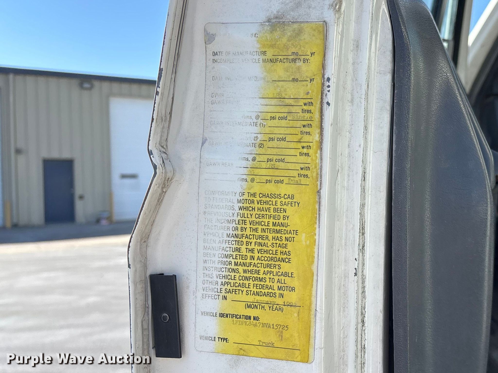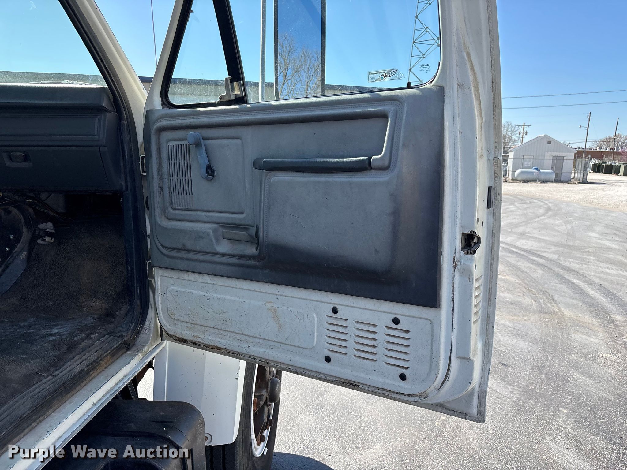 1992 Ford F800 dump flatbed truck. Miles: 123,112 on odometer, VIN: 1FDPK84A7NVA15725. Engine Ford 190, Serial: VZ104945, Displacement: 7.8L, Cylinders: 6, Fuel type: Diesel, HP: 190. Transmission Manual, Speed: 5, plus 2. Chassis Axles: Single, Suspension: Spring, Brakes: Hydraulic, PTO, GVWR: 31,000 lbs, Wheelbase: 178". Interior Heat, Brake controller. Features Bed Dump flatbed, Length: 14' 3", Width: 92", Ram: Single. Tires Size: 11R22.5. Notes Windshield chipped or cracked, Dump bed cylinder leaks, Non-operational dump bed. Missouri title. Title distribution may be delayed up to 14 days from verification of funds. Southwest Electric Cooperative, Inc. Bolivar, MO 65613