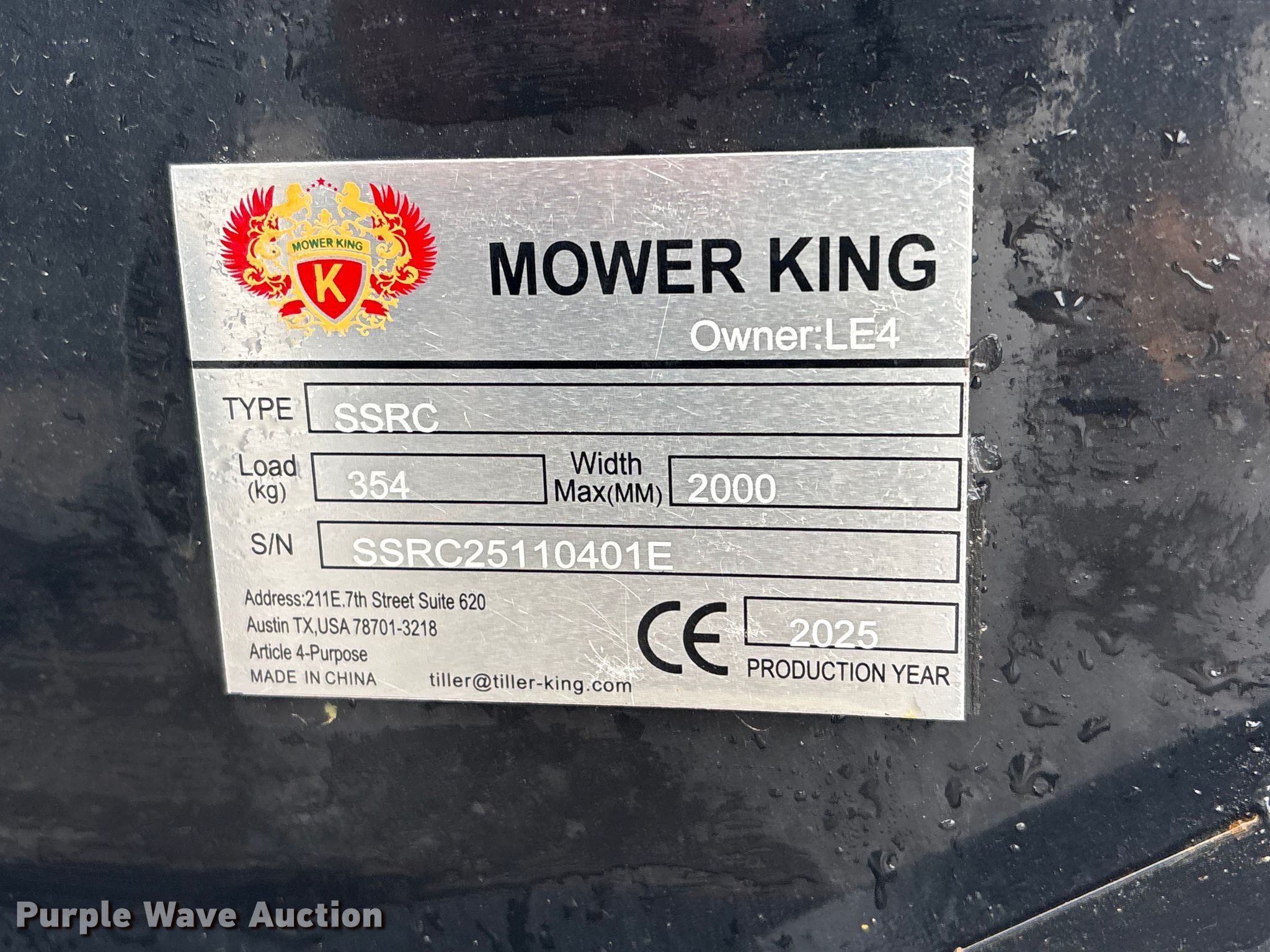 2025 Mower King SSRC skid steer brush mower. Serial: SSRC25110401E, Cutting width: 72". Notes Unused. Jordan Truck and Equipment. Waterloo, NE 68069