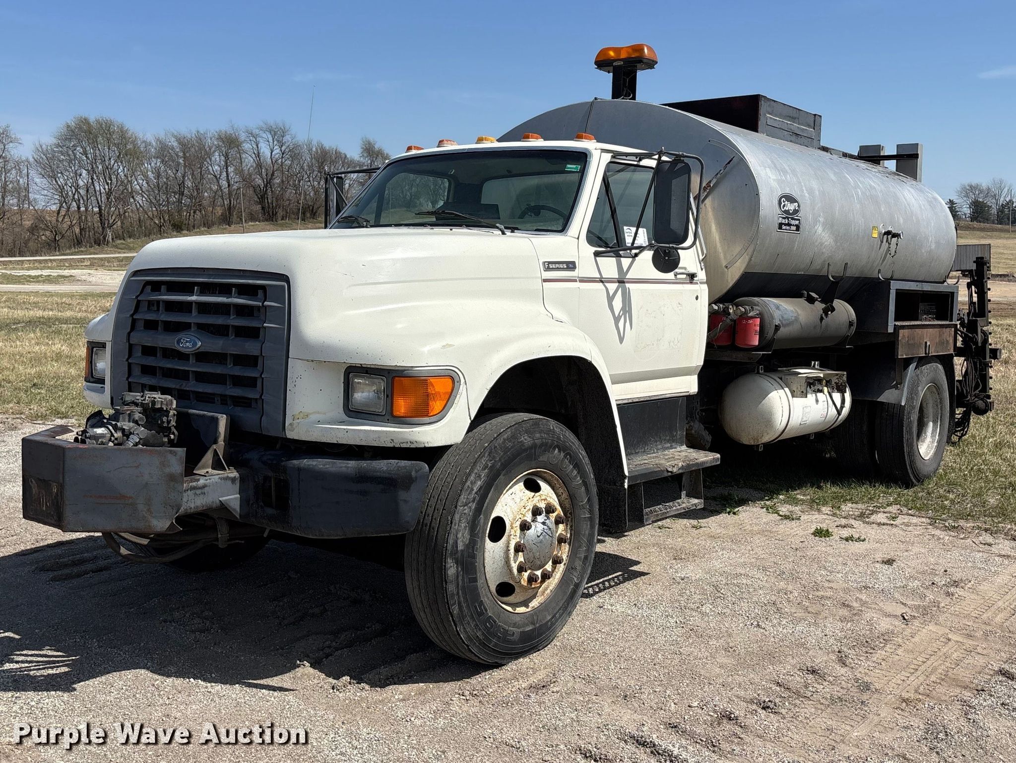 This 1997 Ford F800 oil distributor truck will sell to the highest bidder regardless of price.