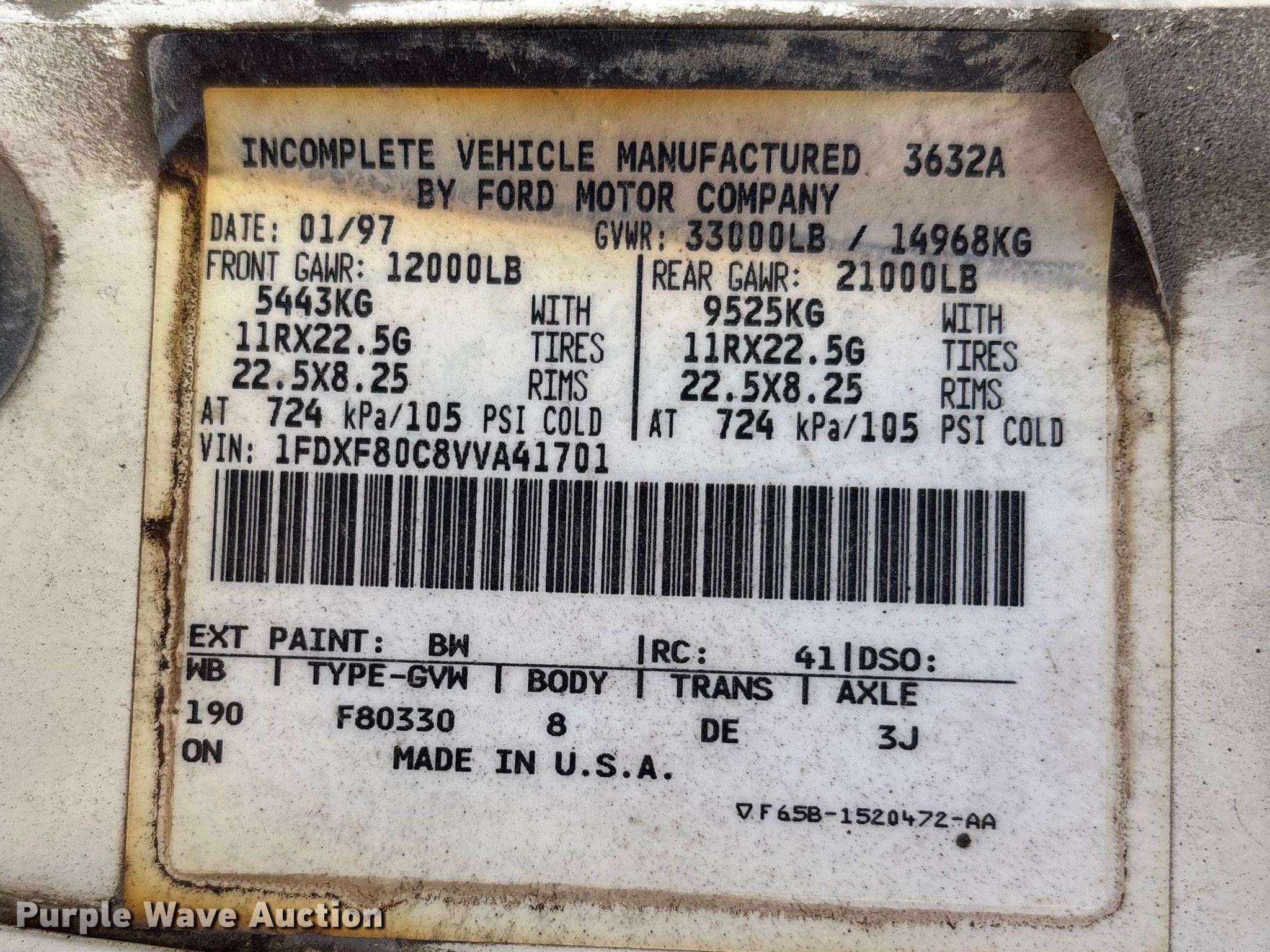 - VIN: 1FDXF80C8VVA41701