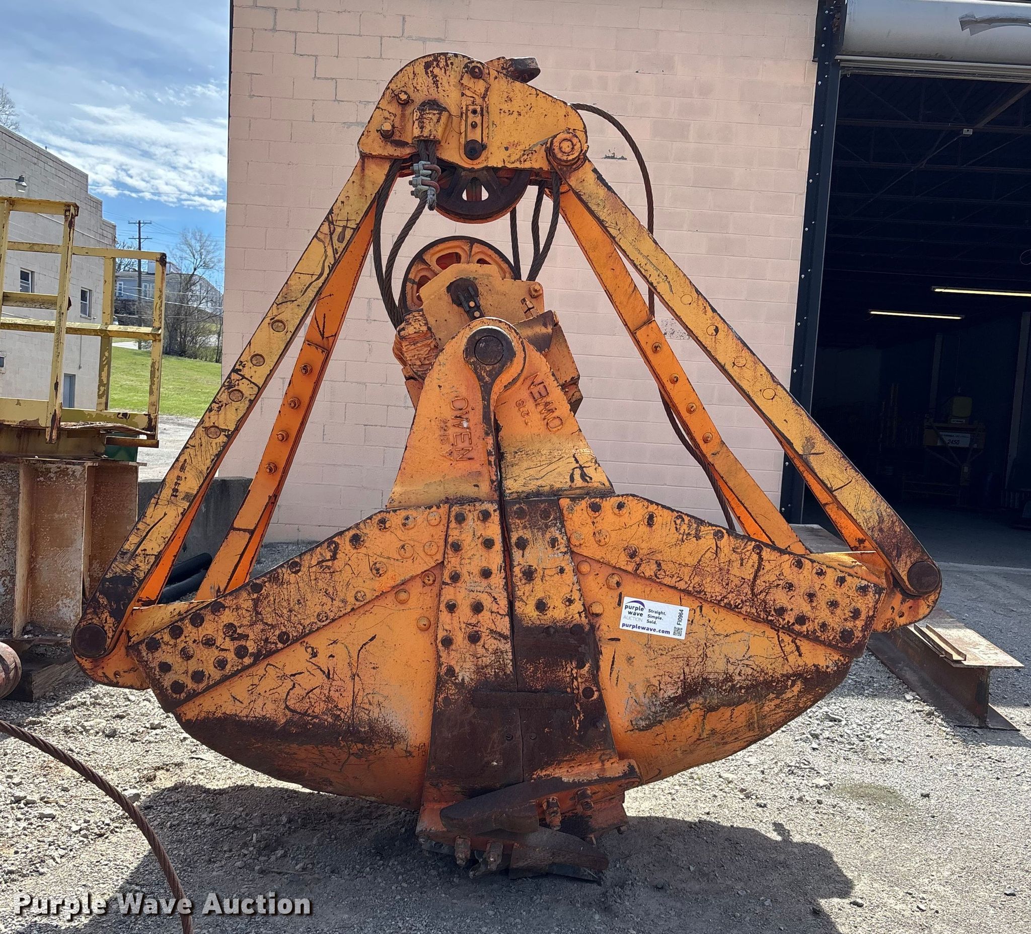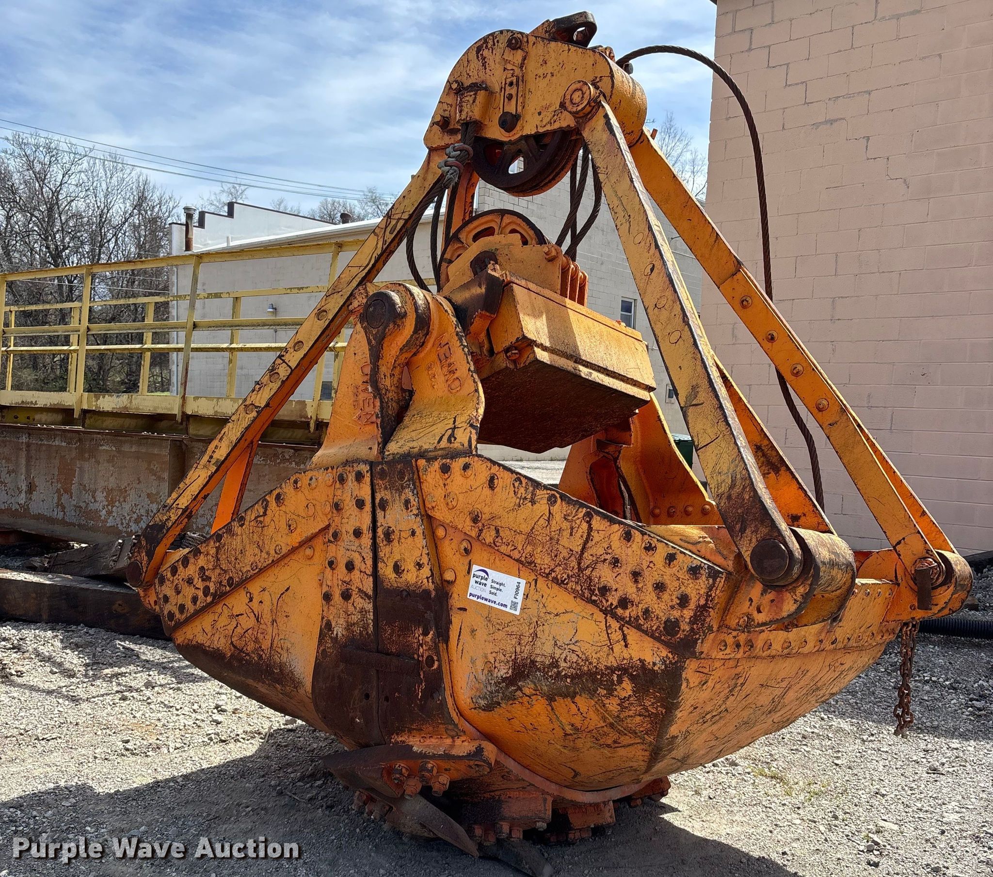 Owen 2315 clam shell bucket for sale in Kansas City, Kansas. Item FI0964 will sell on April 23rd, 2026.