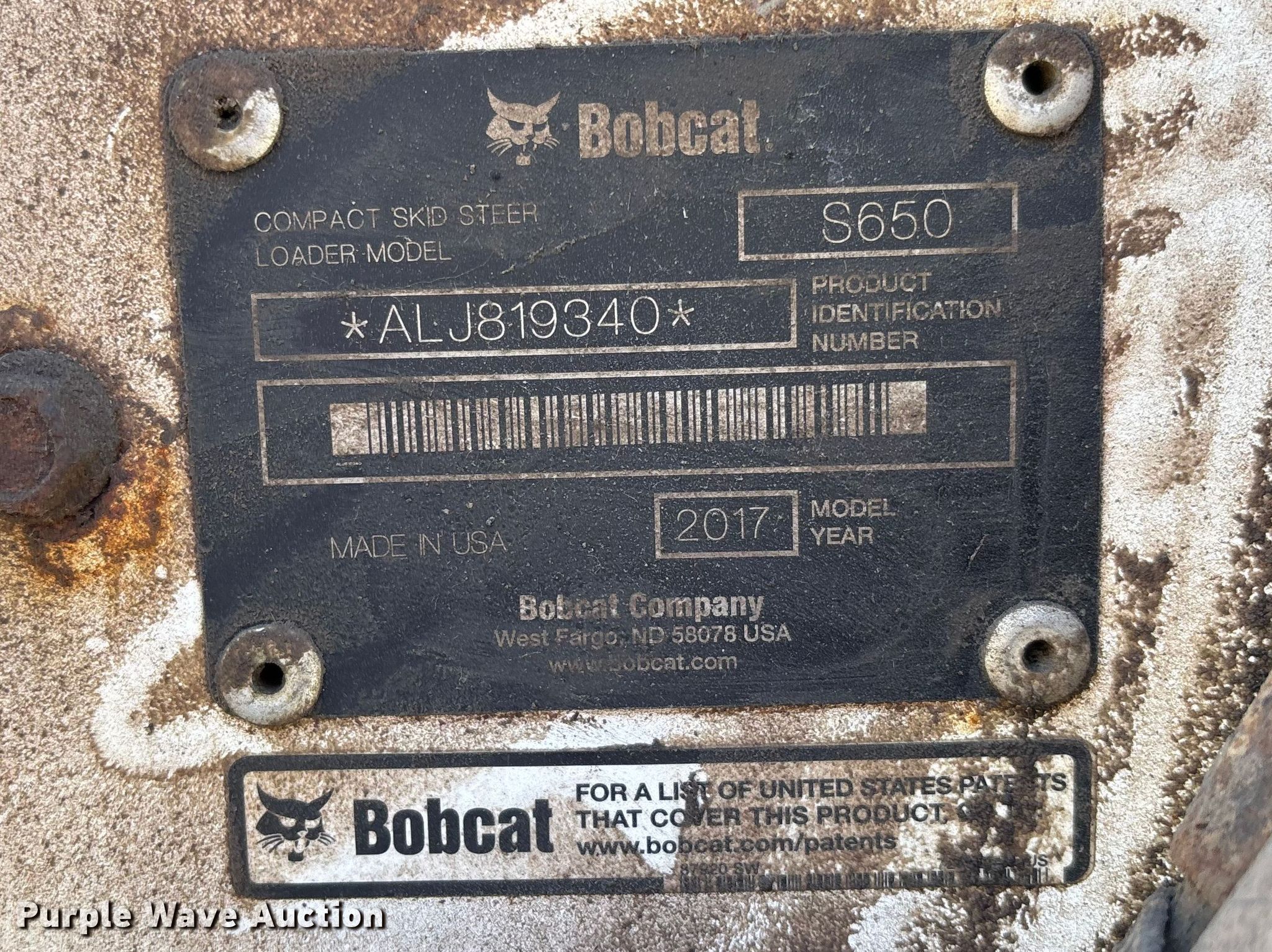 Purple Wave is selling a used Skid Steer Loader in Missouri. This item is a 2017 Bobcat S650 skid steer loader with the following: Hours: 1,365 on meter, Serial: ALJ819340