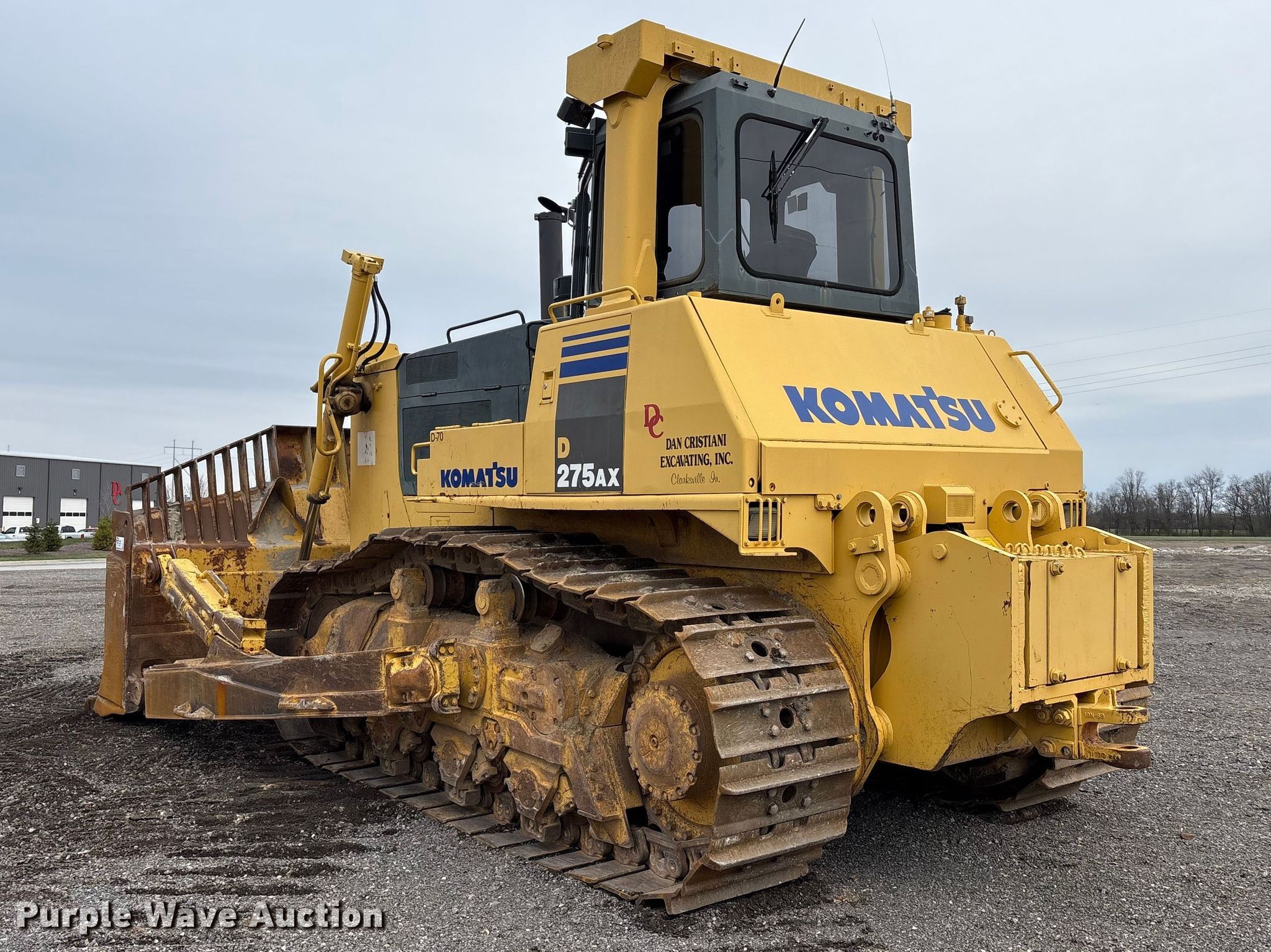 2008 Komatsu D275AX-5E0 dozer. Hours: 13,990 on meter, Serial: KMT0D076H02030092. Engine Cylinders: 6, Fuel type: Diesel. Operators station Enclosed cab, AC, Heat, Steering: Differential. Features Dozer blade Blade type: Dual-tilt, Blade shape: Semi-U, Width: 168". Tracks Width: 29.75", Grouser pads: Single, Bottom rollers: 7. Dan Cristiani Excavating Co. Inc.. Charlestown, IN 47111