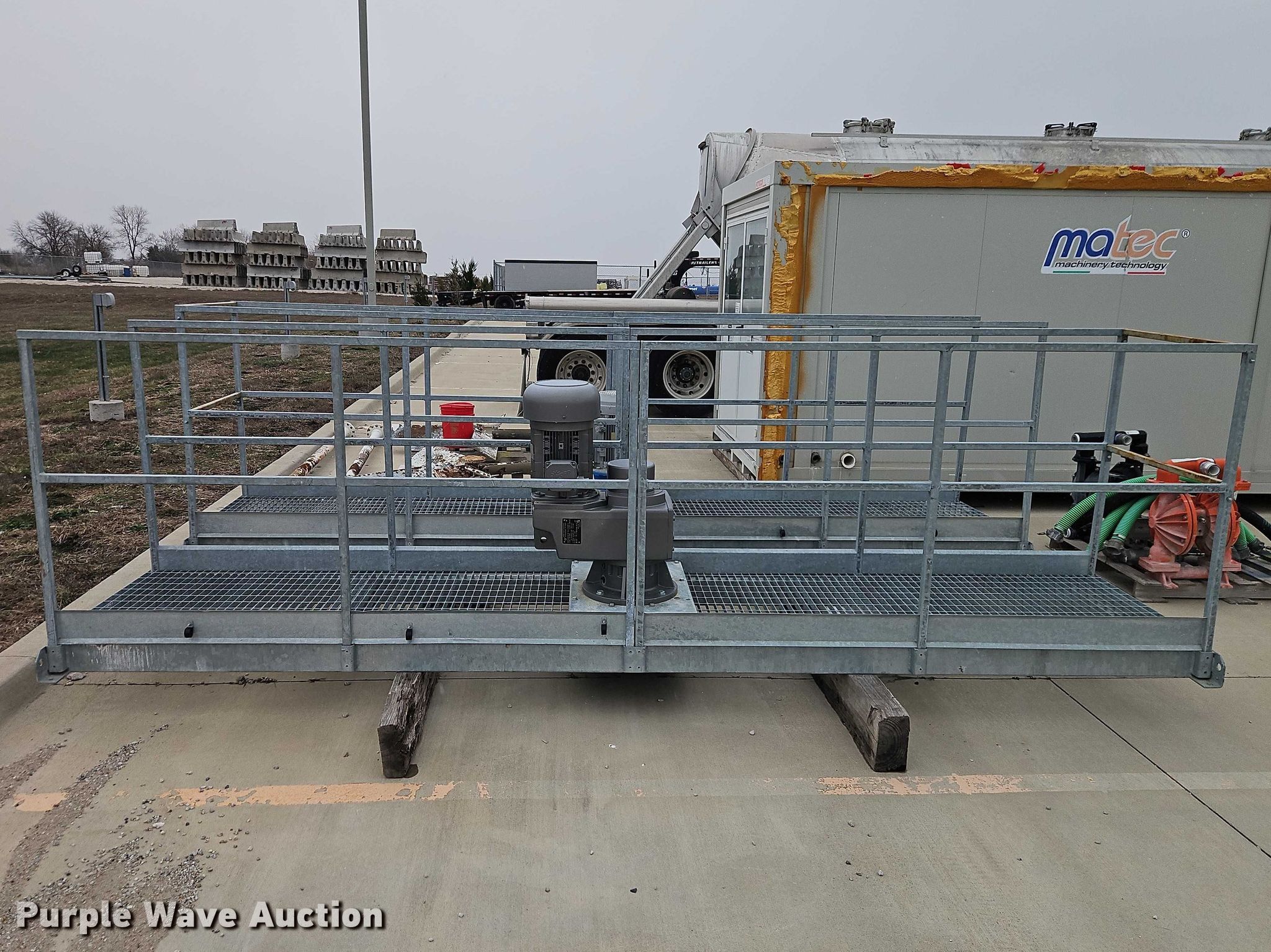 Matec ACQUAE FP500/20E25 filter press. Serial: A8050007. Dimensions Overall Length: 19', Width: 86", Height: 86". Features Storage unit, (2) pneumatic diaphragm pumps, (2) catwalks Dimensions: 14' x 34", Agitator motors, Gearboxes, Agitator paddles, Driveshafts. The Monarch Cement Company (Concrete Materials, Inc). Spring Hill, KS 66062