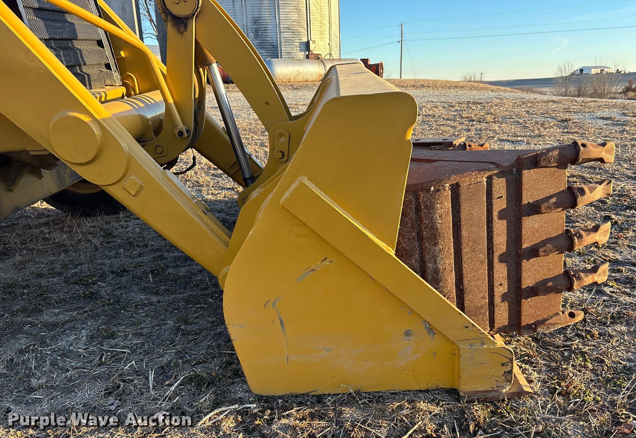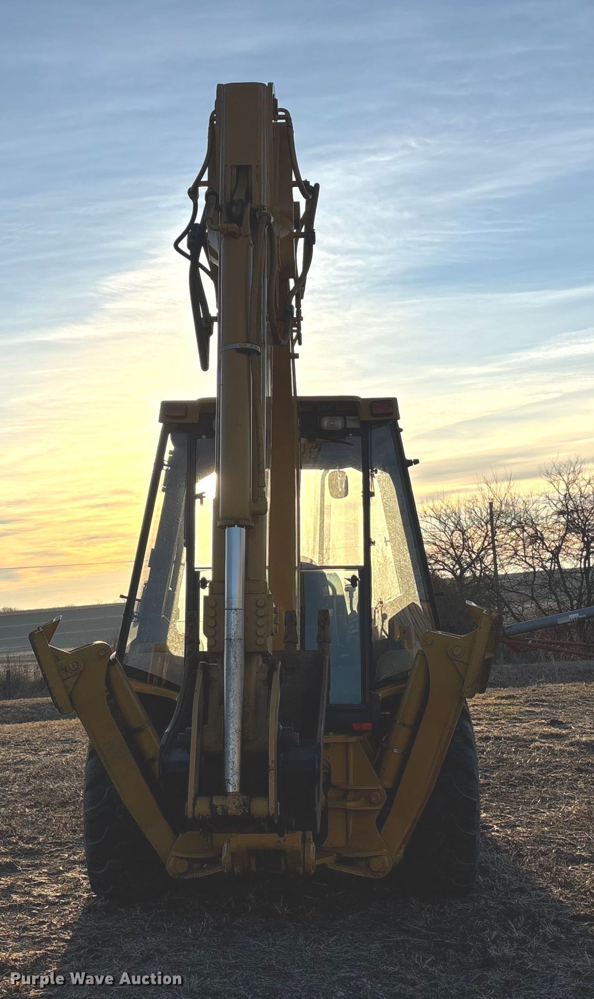 1998 Caterpillar 426C backhoe. Hours: 2,556 on meter, Serial: 6XN01845. Engine Caterpillar, Cylinders: 4, Fuel type: Diesel, HP: 85. Transmission Powershift, 4F - 4R. Chassis Differential lock. Operators station Enclosed cab, AC, Heat, Backhoe controls: Four stick. Features Loader Bucket Caterpillar, Width: 88", Cutting edge: Bolt-on, Backhoe Extendable stick, Bucket Caterpillar, Width: 20", Teeth: 5, Bucket Caterpillar, Width: 20", Teeth: 4.. Tires Front: 11-16, Rear: 16.9-24. Notes Glass cracked, Additional Caterpillar 20" W bucket. Casey Kelley. Faucett, MO 64448
