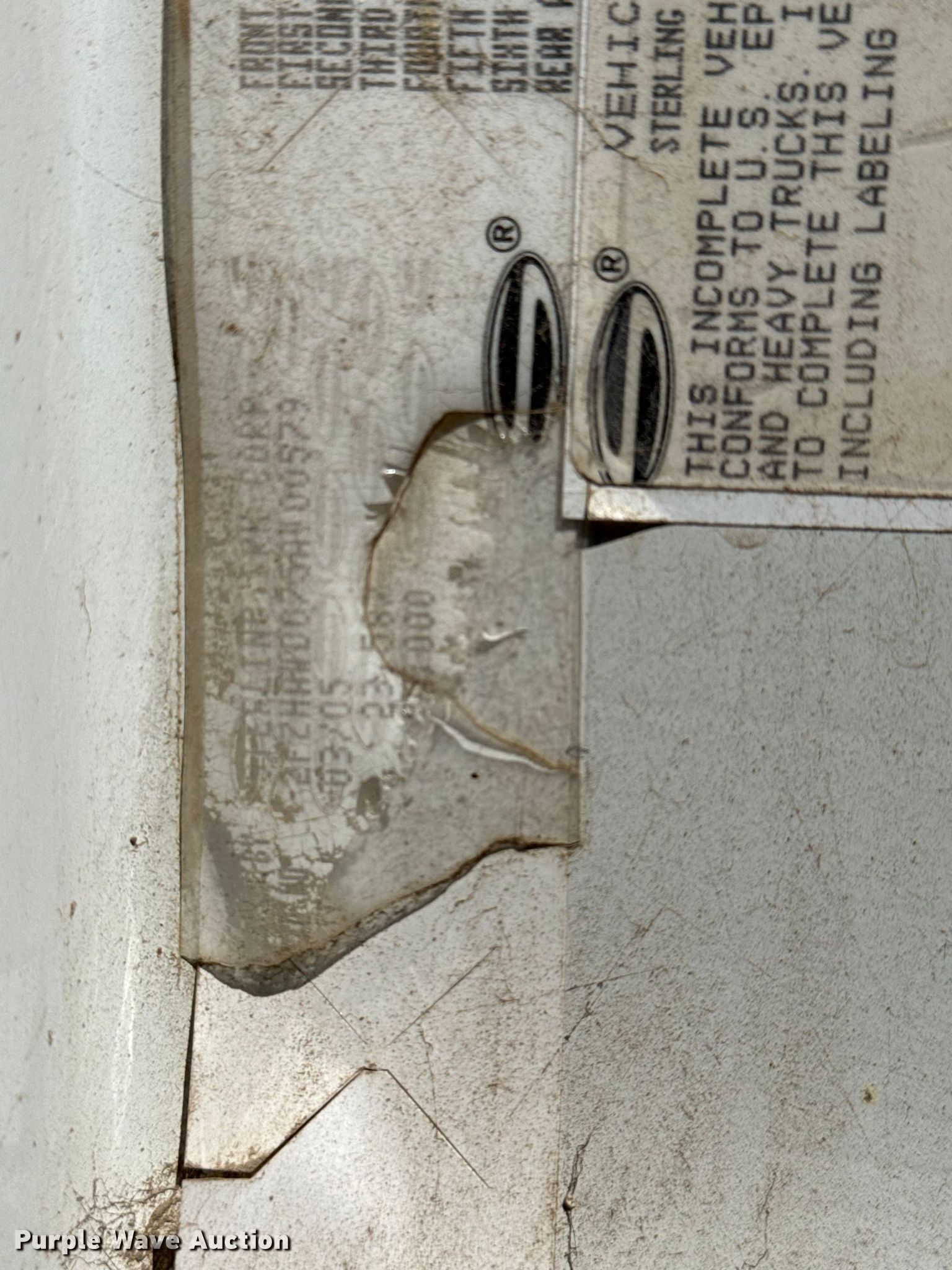 2005 Sterling L-Line dump truck. Miles: Unknown, VIN: 2FZHAWDC75AV00579. Engine Caterpillar C7, Displacement: 7.2L, Cylinders: 6, Fuel type: Diesel. Transmission Eaton Fuller RoadRanger, Manual, Speed: 9. Chassis Axles: Tandem, Suspension: Spring, Brakes: Air, PTO, GVWR: 52,000 lbs FAWR: 12,000 lbs, IAWR: 20,000 lbs, RAWR: 20,000 lbs. Interior AC, Heat, Heated mirrors, Cruise control. Features Bed Dump bed, Side height: 40", Side board height: 7", Bed type: Steel, Roll tarp, Ram: Single, End gate: Manual. Tires Size: 11R22.5. Notes Dead battery, Jump start required during on-site data collection, Passenger exhaust disconnected, Unit must be towed or hauled , Non-operational unit. Oklahoma title. Mileage has not been verified. Exempt will be written in the odometer disclosure on the title. Seller is an Oklahoma licensed motor vehicle dealer. Buyers may be required to provide identification to the licensed dealer to comply with state laws. Title will be assigned and distributed by the dealer. Please contact the seller for distribution questions. Title distribution may be delayed up to 30 days from verification of funds. Collinsville, OK 74021
