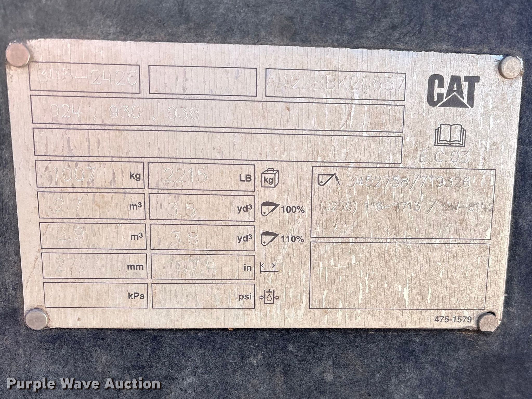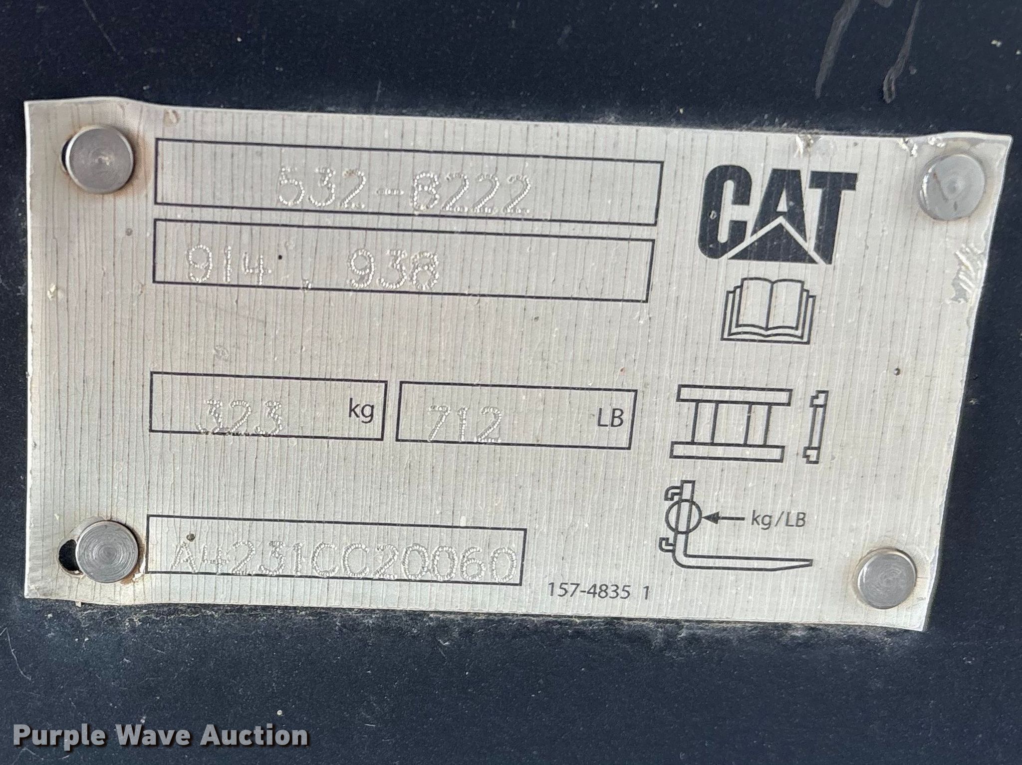 2023 Caterpillar 930M wheel loader. Hours: 7,513 on meter, Serial: CAT0930MCJ5K00581. Engine Caterpillar C7.1, Serial: J7A30312, Displacement: 7.01L, Cylinders: 6, Fuel type: Diesel. Transmission Powershift, 4F - 4R. Operators station Enclosed cab, AC, Heat, Bucket controls: Joystick, Ride control. Features Auxiliary hydraulics: Front, Quick coupler: Hydraulic, Counter weights, Self-leveling loader, Bucket Caterpillar, Capacity: 3.5 cu.yd., Width: 107", Cutting edge: Bolt-on, Forks Caterpillar, Length: 54". Tires Size: 20.5R25. Stratford, TX 79084