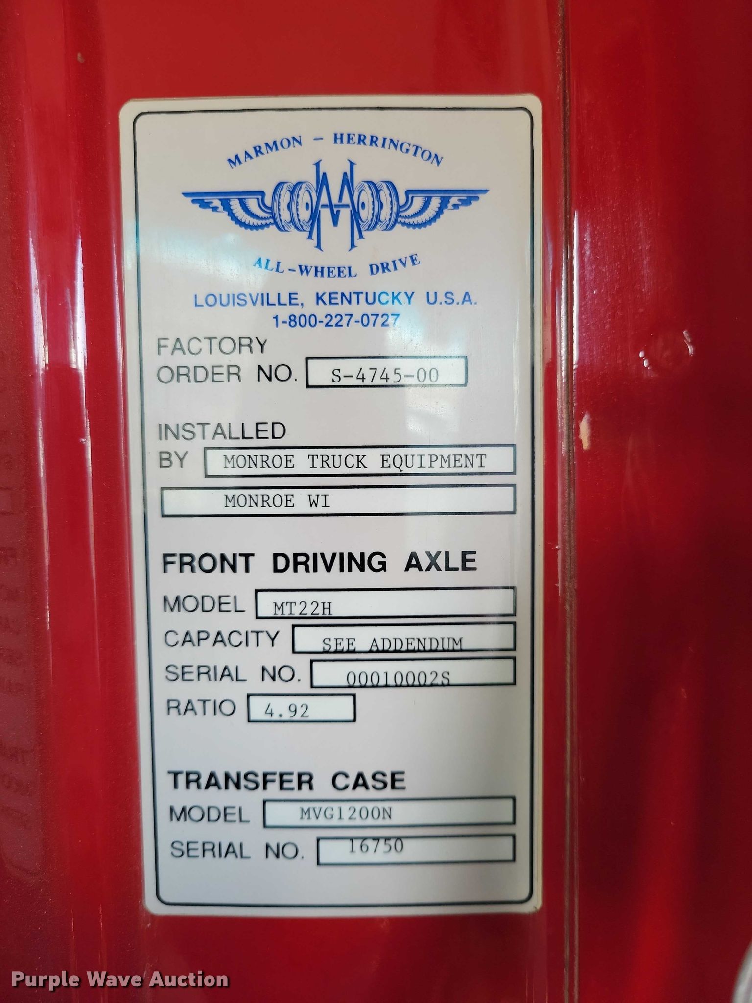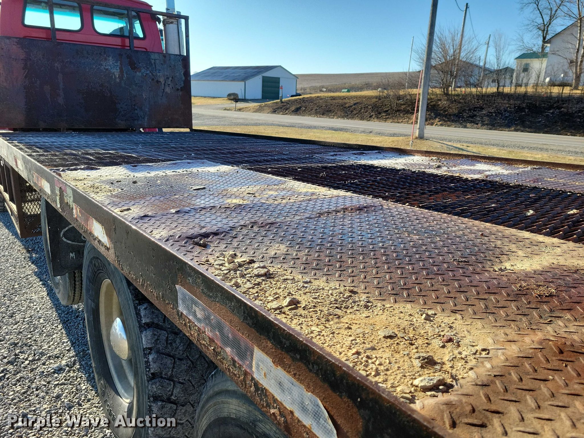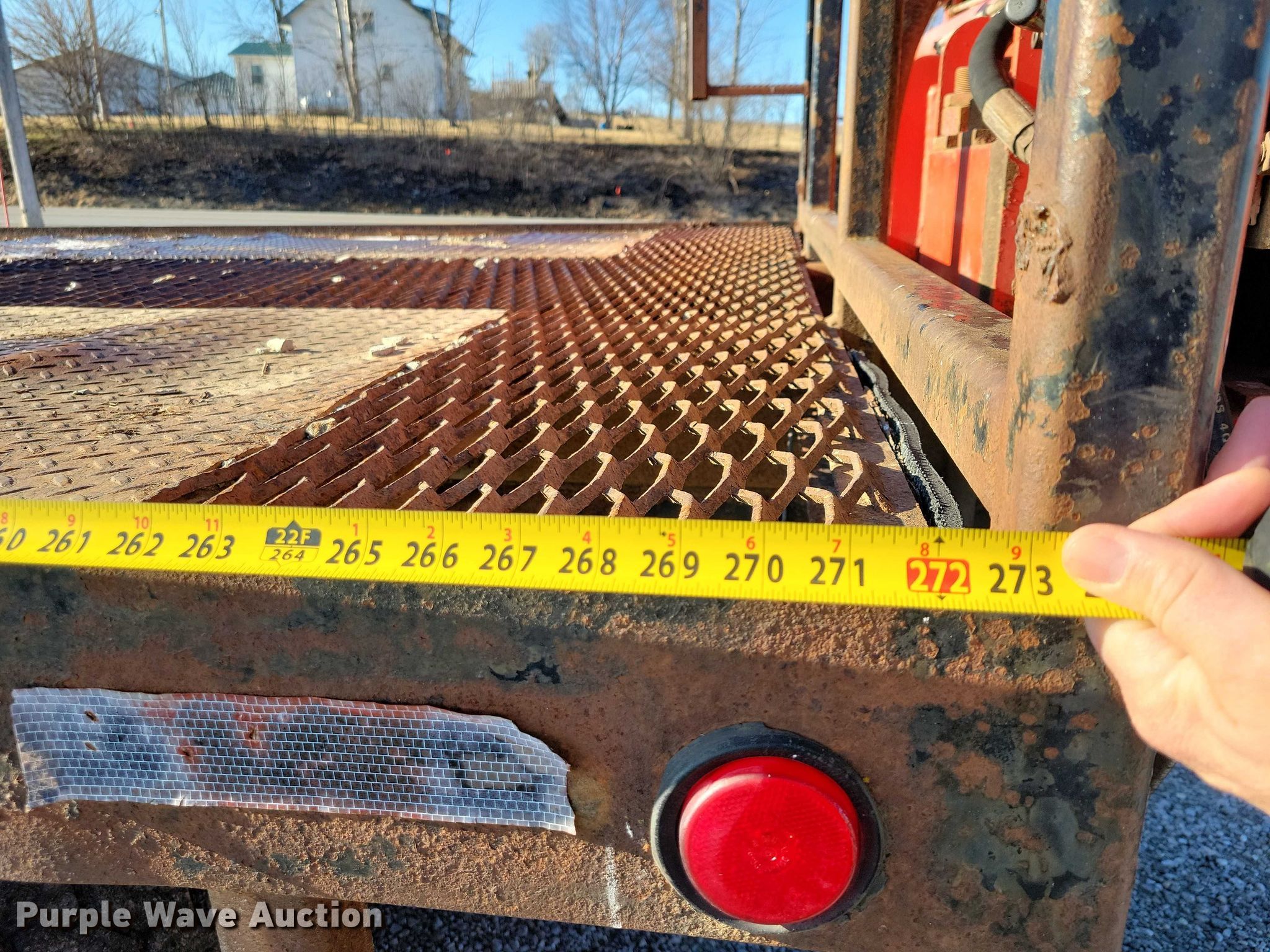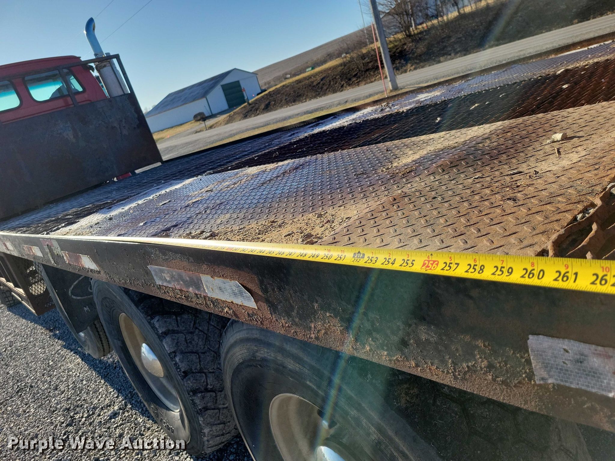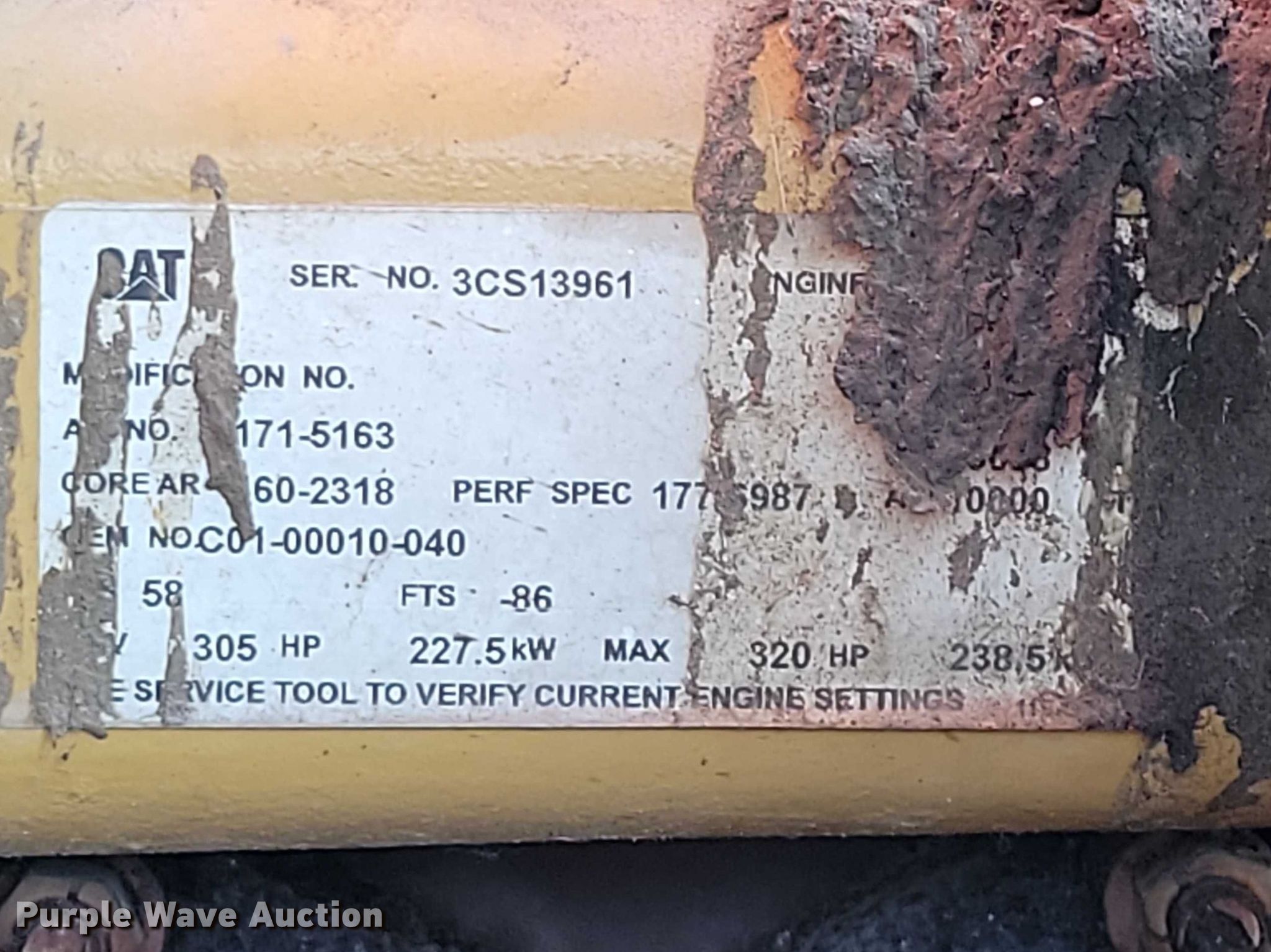 2000 Sterling LT 9500 crane truck. Miles: 66,620 on odometer, VIN: 2FZXEECB9YAF99514. Engine Caterpillar C-10, Serial: 3CS13961, Displacement: 10.3L, Cylinders: 6, Fuel type: Diesel, HP: 370. Transmission Eaton Fuller Roadranger, Manual, Speed: 9. Chassis Four wheel drive, Axles: Triple, Pusher axle, Differential lock: Full, Suspension: Spring over walking beam, Brakes: Air, PTO, GVWR: 64,740 lbs FAWR: 18,740 lbs, IAWR: 23,000 lbs, RAWR: 23,000 lbs. Interior Heat, Cruise control. Features Bed Flatbed, Length: 23', Width: 102", Crane Fassi F270, Boom Telescopic, Knuckle, Maximum boom length: 45' Sections: 5, Maximum lift capacity: 12,478 lbs, Boom controls, Lift chart. Tires Size: 445/65R22.5, Lift axle: 10R17.5. Notes Dash warning indicator: Stop engine, Engine warning, Contents not included, Unknown operating condition of crane. Iowa title. Title distribution may be delayed up to 14 days from verification of funds. Roberts Construction Inc. Victor, IA 52347