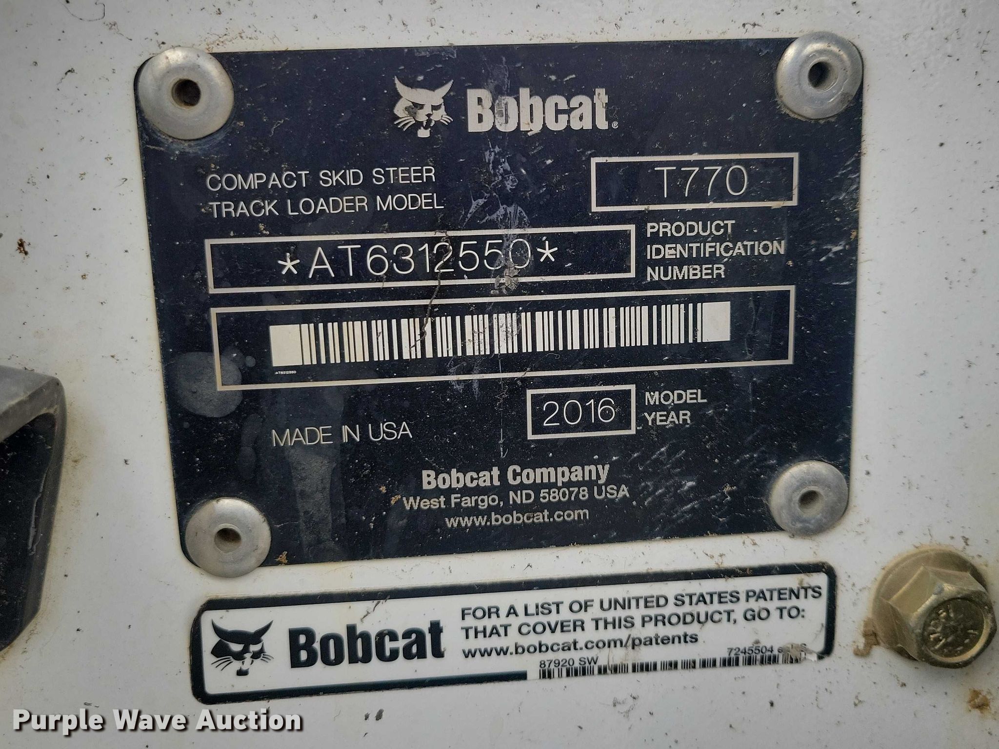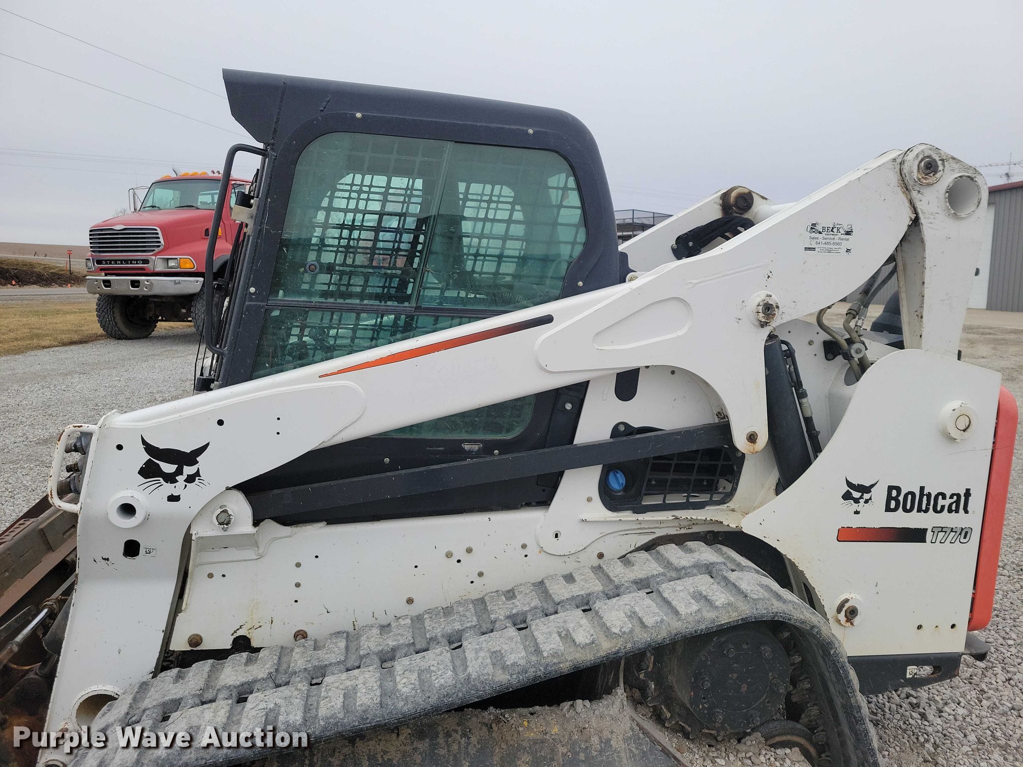 Purple Wave is selling a used Tracked Skid Steer Loader in Iowa. This item is a 2016 Bobcat T770 tracked skid steer loader with the following: Hours: 1,910 on meter, Serial: AT6312550