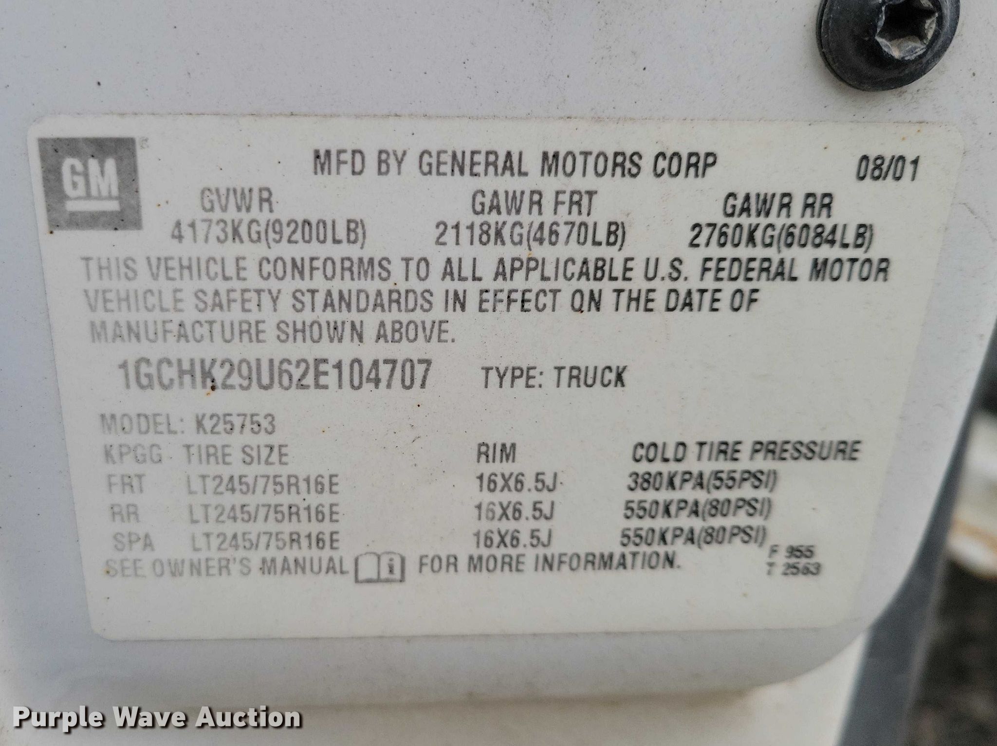 - VIN: 1GCHK29U62E104707